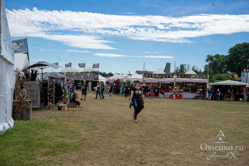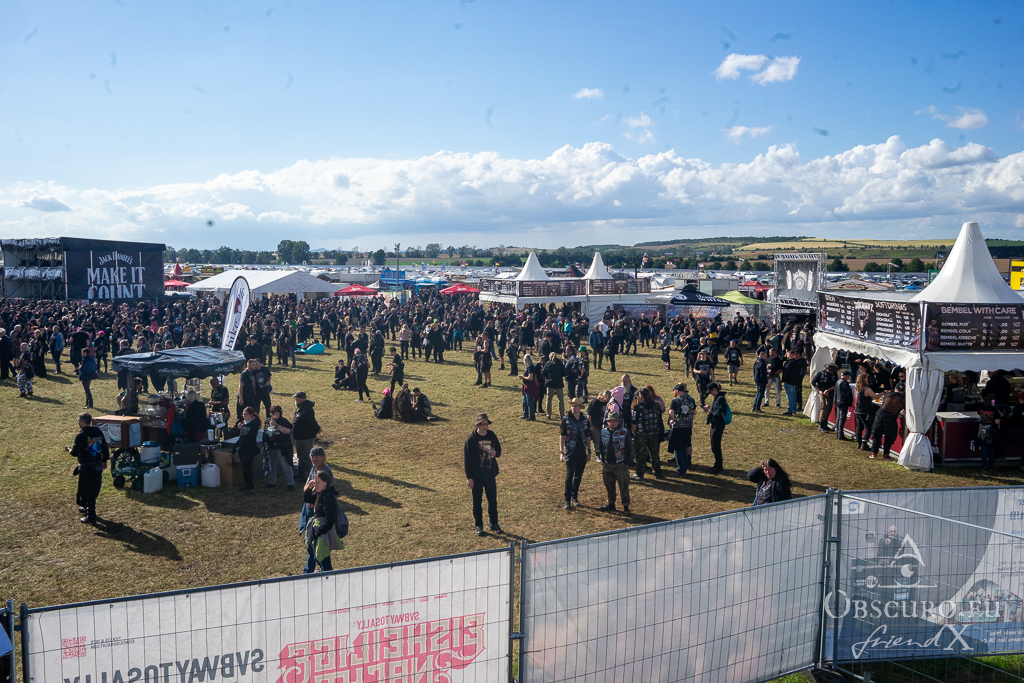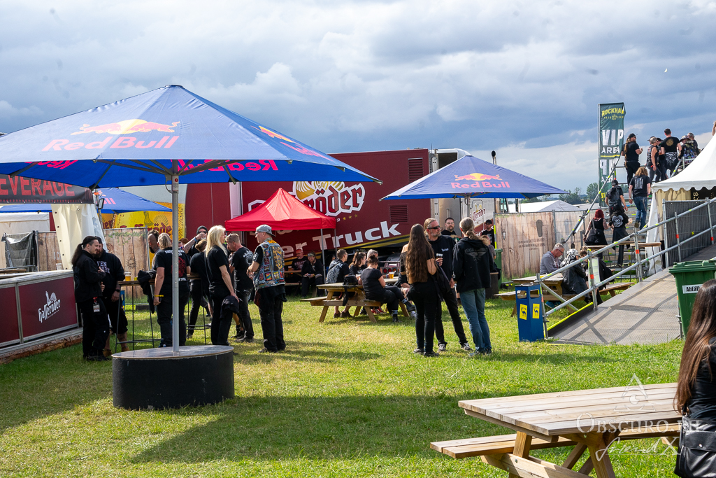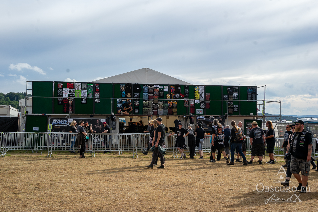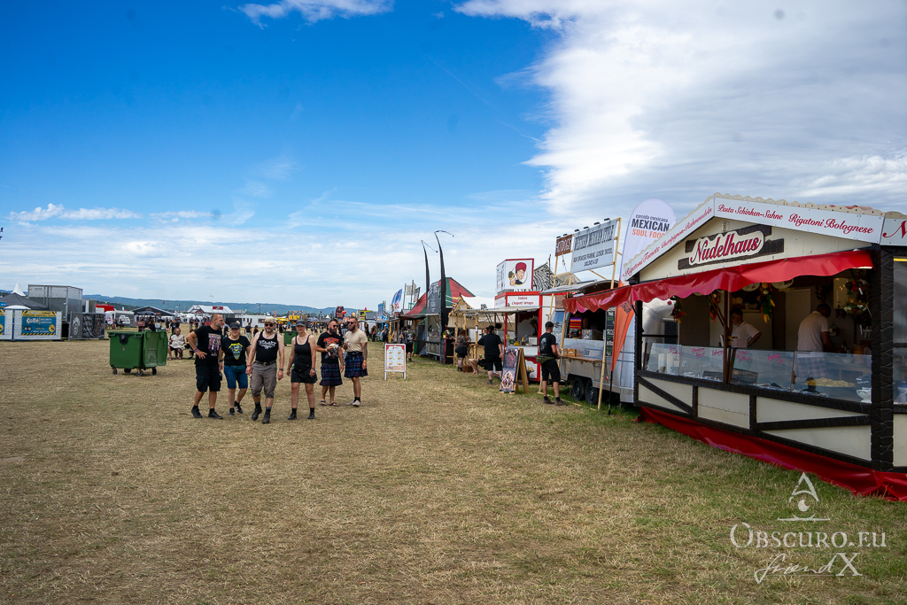 There was plenty of merch. Rockharz kept the prices on last year’s level. They had three stalls outside the infield, the regular festival merch, the click and collect pick up service which went on fantastic and a special stall for rarities of the past years. Inside was the additional merch stall for the daily bands. And there were plenty of stalls with everything a metal head can think of. The selection of food stalls was perfect for everybody, and the prices were very fair. Beverage stalls hosted Hasseröder Pils, cider and soft drinks for the same prices as last year. Mutantenstadl offered some additional specialities and a cocktail bar. And of course, there were the stalls of several charity associations, most remarkable Germany’s leg of DKMS, stem cell donation. Check out the website. It is a pity, I seem to have lost the pics of these important stalls due to a camera failure.