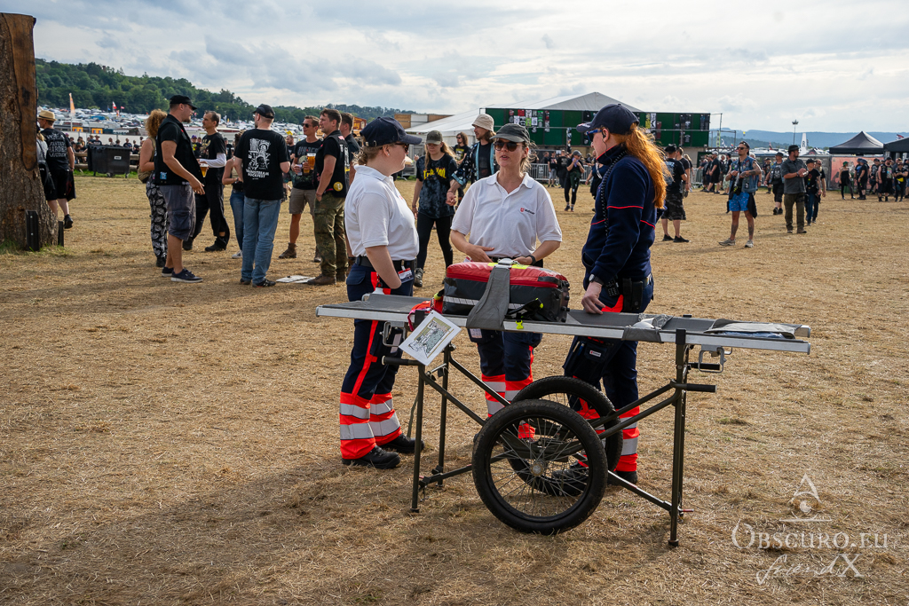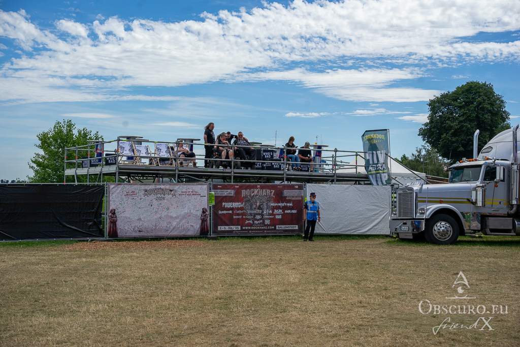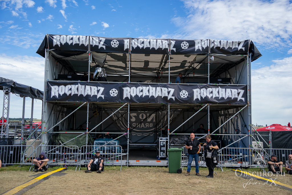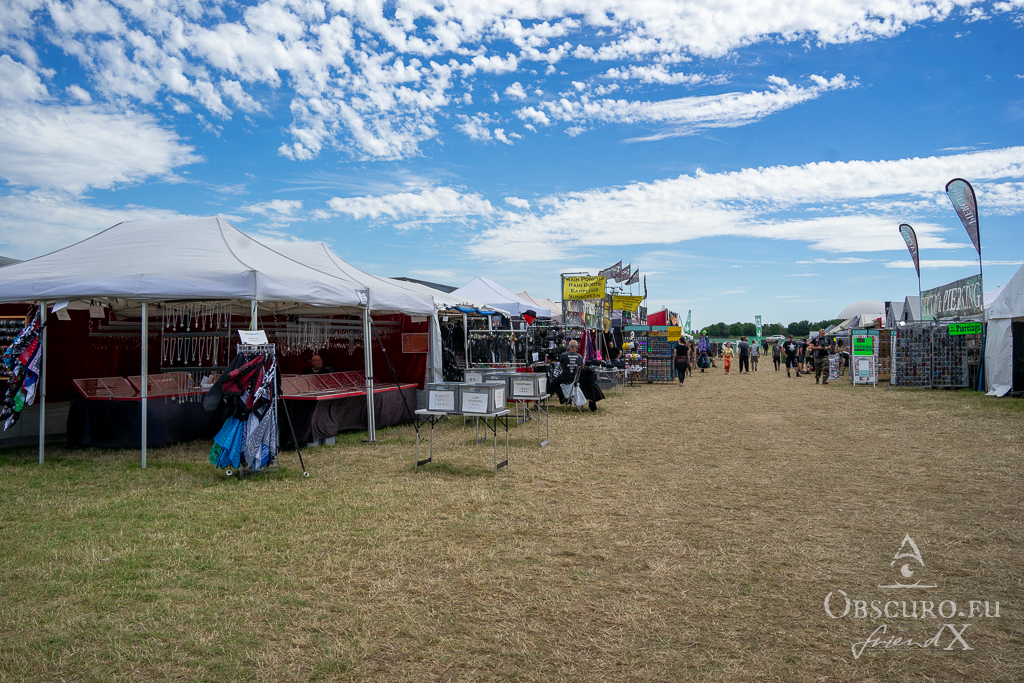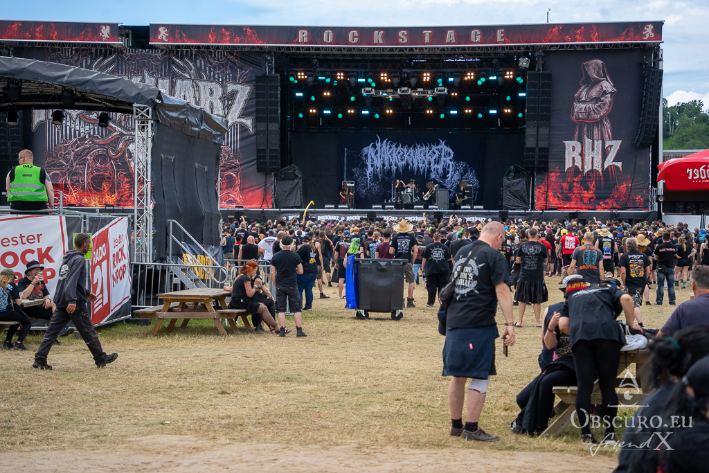 There was plenty of merch. Rockharz kept the prices on last year’s level. They had three stalls outside the infield, the regular festival merch, the click and collect pick up service which went on fantastic and a special stall for rarities of the past years. Inside was the additional merch stall for the daily bands. And there were plenty of stalls with everything a metal head can think of. The selection of food stalls was perfect for everybody, and the prices were very fair. Beverage stalls hosted Hasseröder Pils, cider and soft drinks for the same prices as last year. Mutantenstadl offered some additional specialities and a cocktail bar. And of course, there were the stalls of several charity associations, most remarkable Germany’s leg of DKMS, stem cell donation. Check out the website. It is a pity, I seem to have lost the pics of these important stalls due to a camera failure.