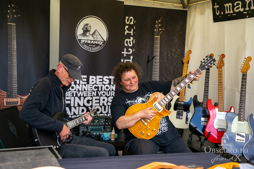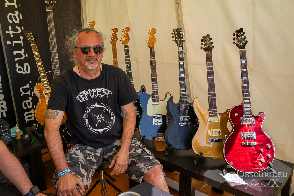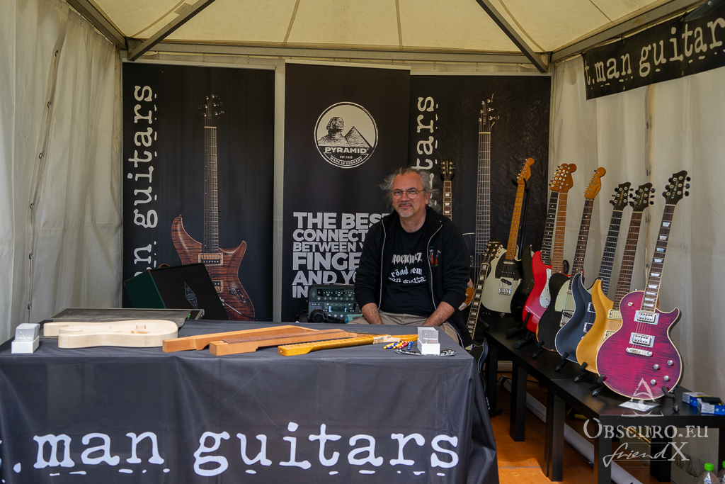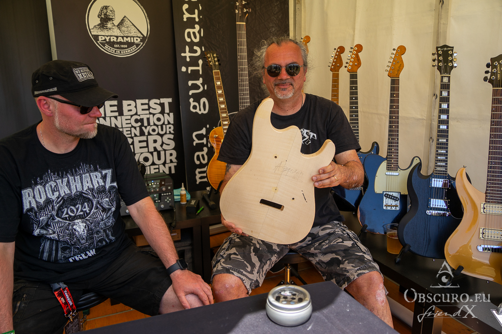 Heavy Metal is mainly based on the sound of electric guitars. I had the pleasure to talk with Andreas Thiemann about his guitars at his stall in the VIP-area. He explained all the details I wanted to know, how he builds his guitars, what his actual favourite is. Andreas has a nice selection of purely handmade gems beside a kind of “standard products”. He builds around a dozen of these gems and 40 of the standards which are kind of replicas of well-known guitars. Take a look at his website, not only if you are a guitar freak!