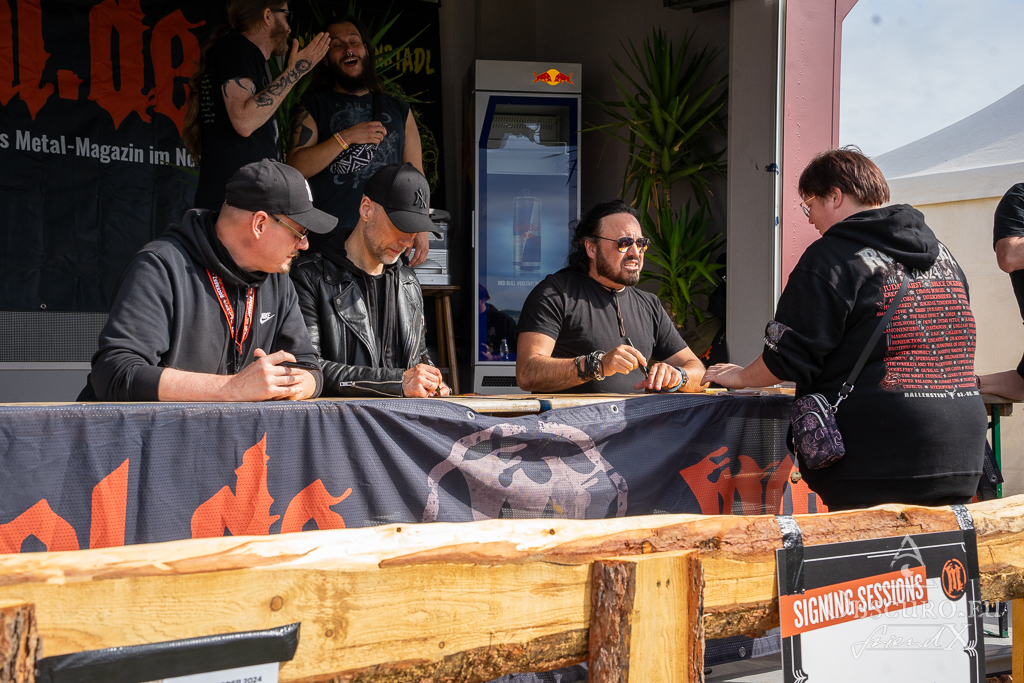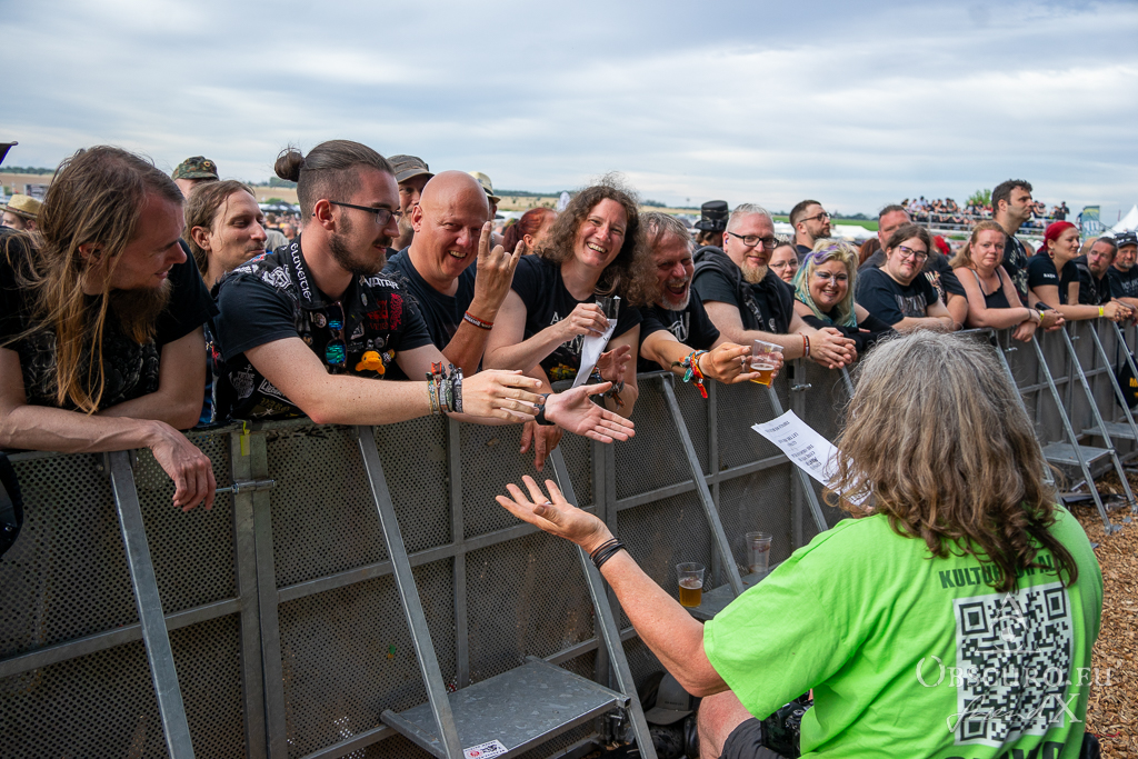 And of course, there is you, the guests and audience of Rockharz. Thank you for your discipline and understanding during the evacuation. Thank you for every Wall of Death or Love, Circle Pit, Mosh Pit and crowd surfer. The next and closing pics are for you. You will notice, there were plenty of band members in the audience, maybe one of the was your neighbour. And we added some pics of signing sessions. Do you recognize yourself on one of these pics? Let us know. Who of you detects the Easter egg? Falk from Powerwolf heard the confession and granted absolution, do you find the pic?