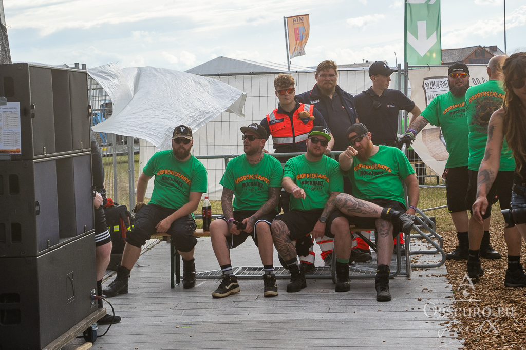 The basis for every successful festival is a functionary team. They did a very good job. There was a large and fully equipped First Aid centre next to the infield. Fire department was present and took care during each show. The stewards at the entrance answered the same old questions again and again with an almost inhuman calmness. No, cans are not allowed and so aren’t mugs with open drinks. The stewards and pivots on the campground helped everybody as good as they could and were allowed to. Keep in mind, a different colour of the vest means a different responsibility and job. The Grabenschlampen were the best crew in the pit as always, and even though they also had a lot of fun, they always had an eye on the audience. Looking out for dangerous situations before they even occur is a major issue. Well done, great job everybody.