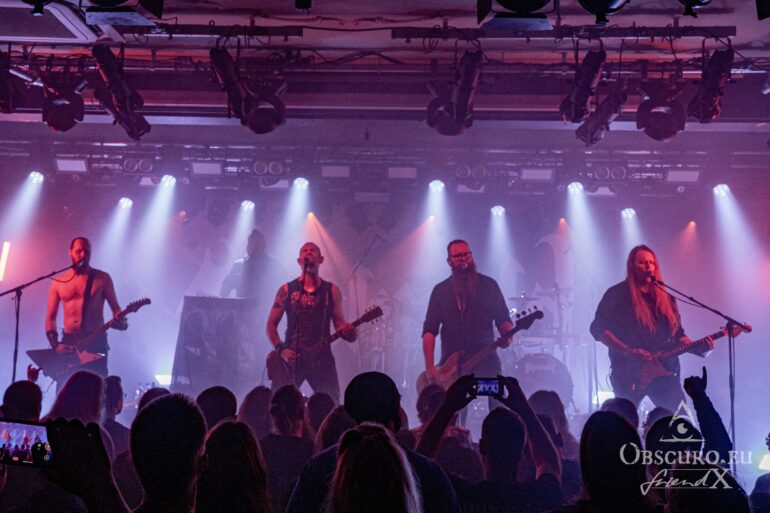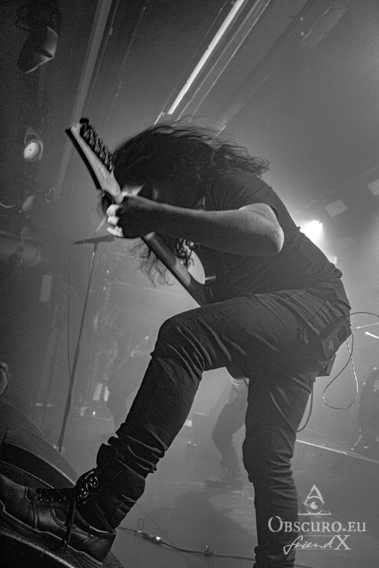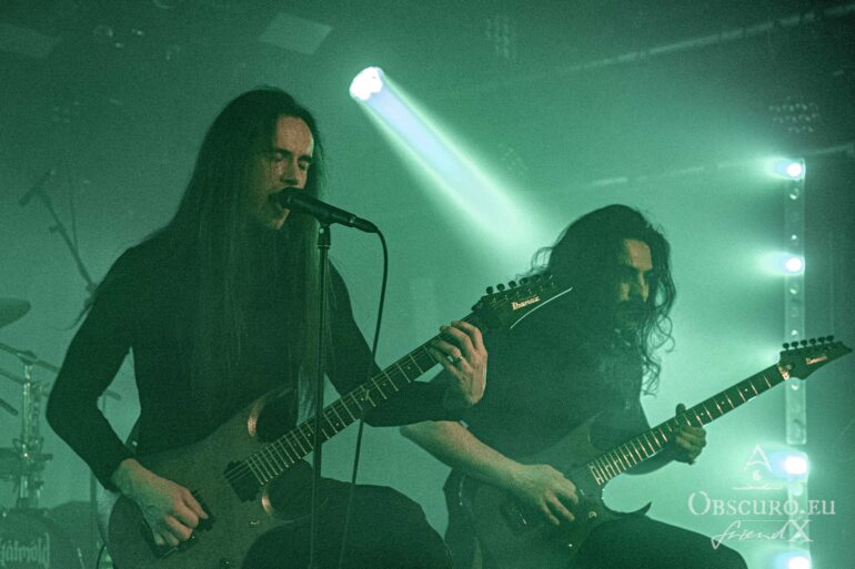 Just like during the tour’s first leg in 2023, tonight’s openers are the Canadians of Atavistia. Again, their set is rather short. Their powerful Melodic Death Metal and growls rule the stage for about 30 minutes only. Sound and light could be slightly better, but as so often, that’s the fate of the opener. The billowing dry ice fog does the rest, making it difficult to recognise the four musicians. Here are a few impressions though.