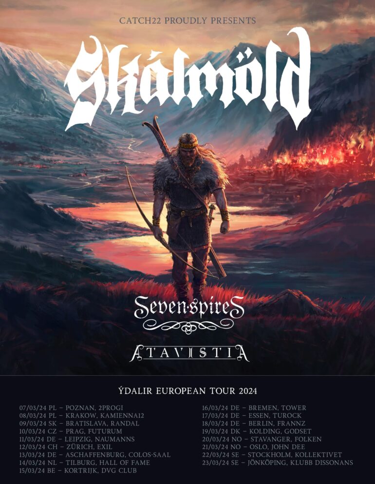 It is time for some Icelandic metal again presented by Catch22. Skálmöld are supported by Atavistia and Seven Spires during their 2024 leg of the Ýdalir tour. Before I join the queue in front of Colos-Saal in Aschaffenburg, I meet with my buddy Bugo Hoss from Nuremburg in front of it for dinner. While we are on the go, a long-haired man leaves the venue, joins in, and asks if we know where he can buy cigarettes. Well, a tobacco shop is on our way anyway, so we share way with Peter de Reyna, bass-wizard of Seven Spires as if it is the most normal thing of the world.