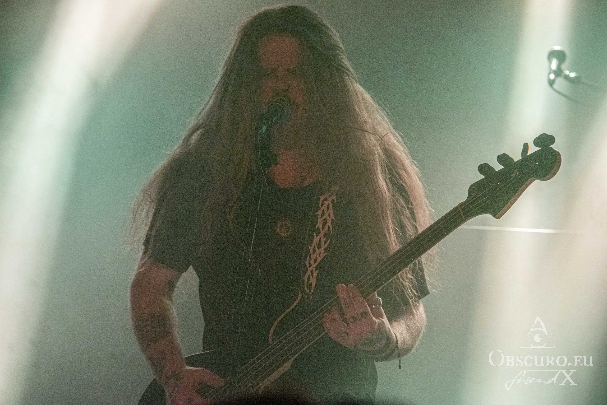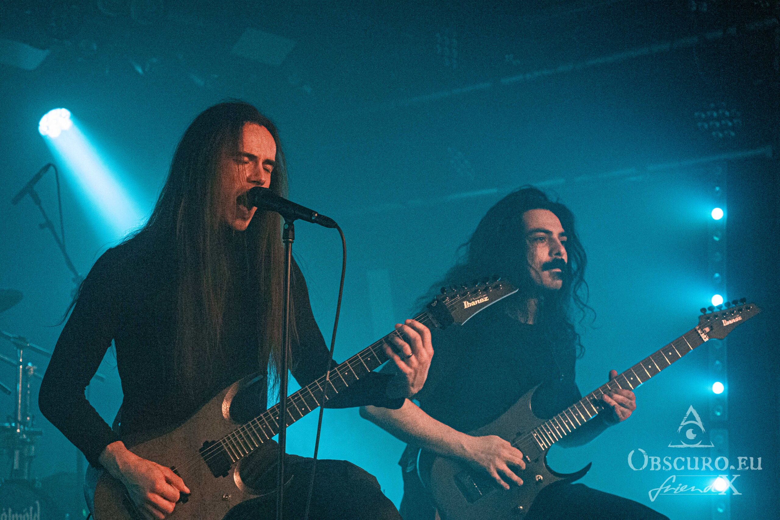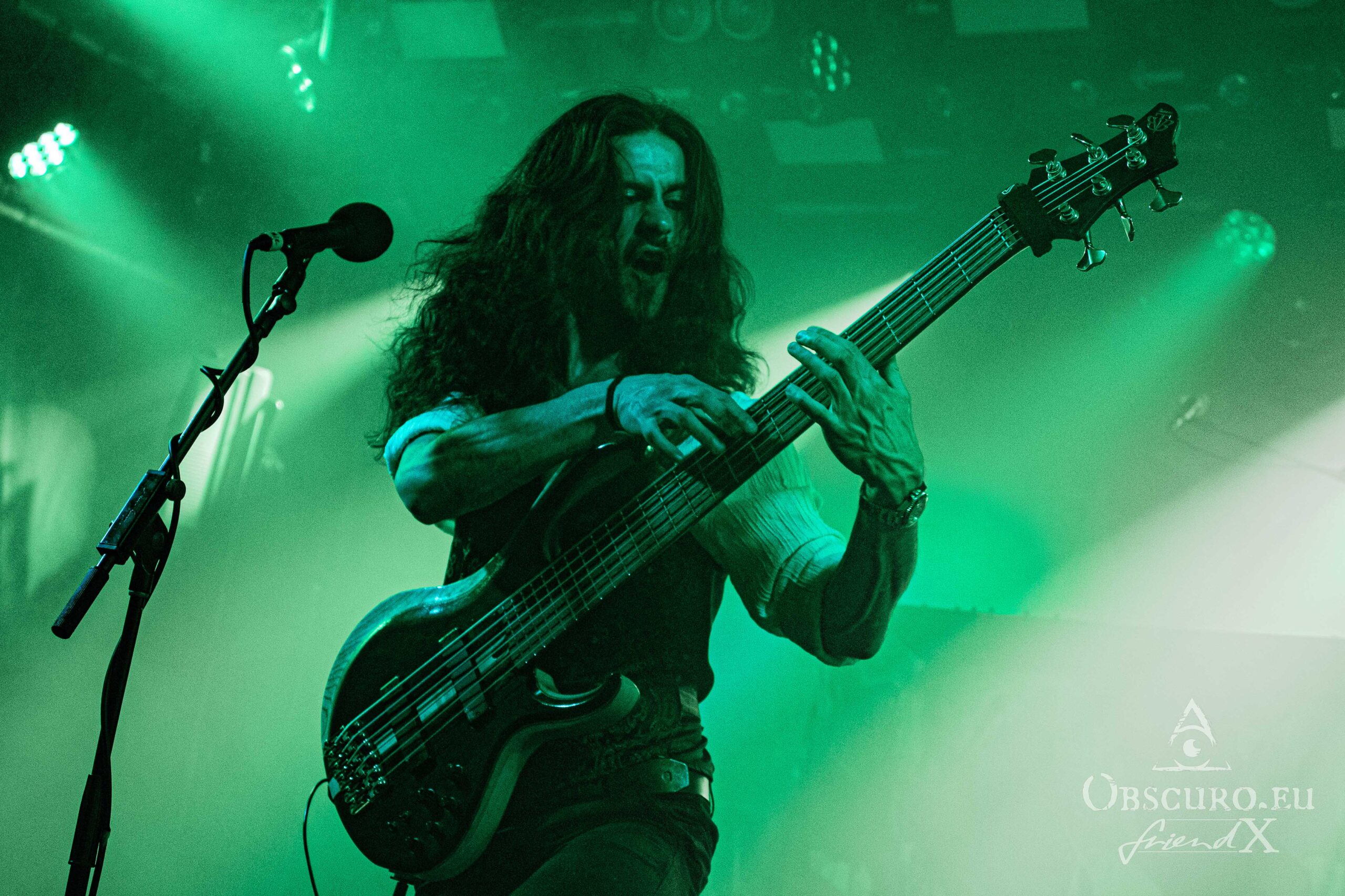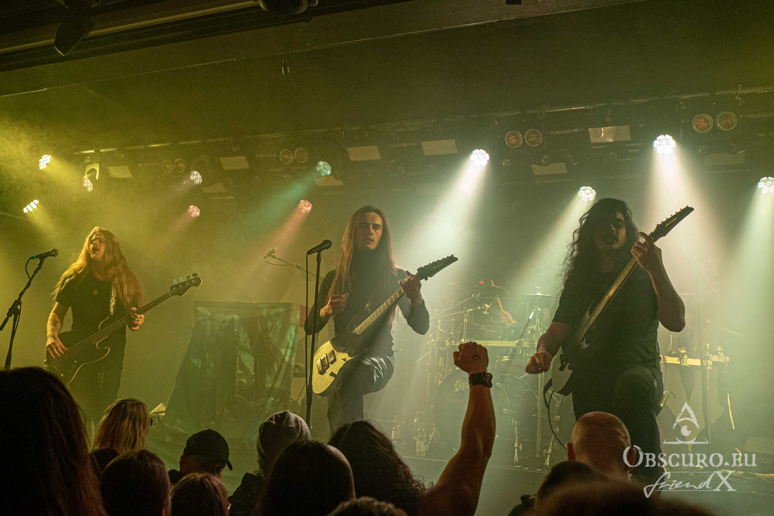 Just like during the tour’s first leg in 2023, tonight’s openers are the Canadians of Atavistia. Again, their set is rather short. Their powerful Melodic Death Metal and growls rule the stage for about 30 minutes only. Sound and light could be slightly better, but as so often, that’s the fate of the opener. The billowing dry ice fog does the rest, making it difficult to recognise the four musicians. Here are a few impressions though.