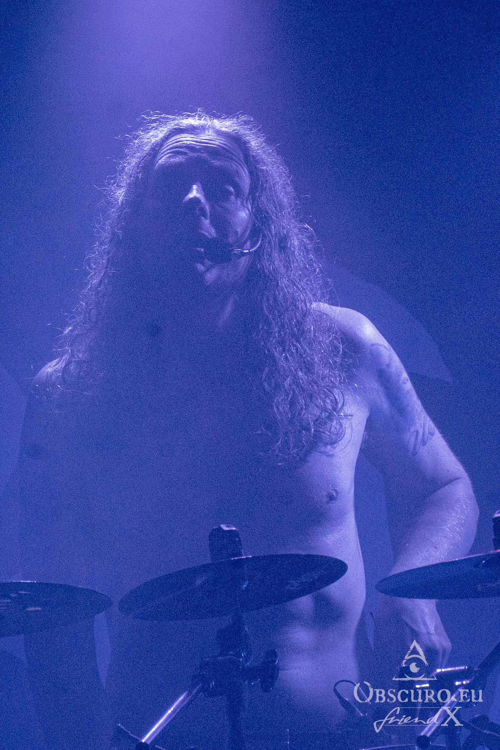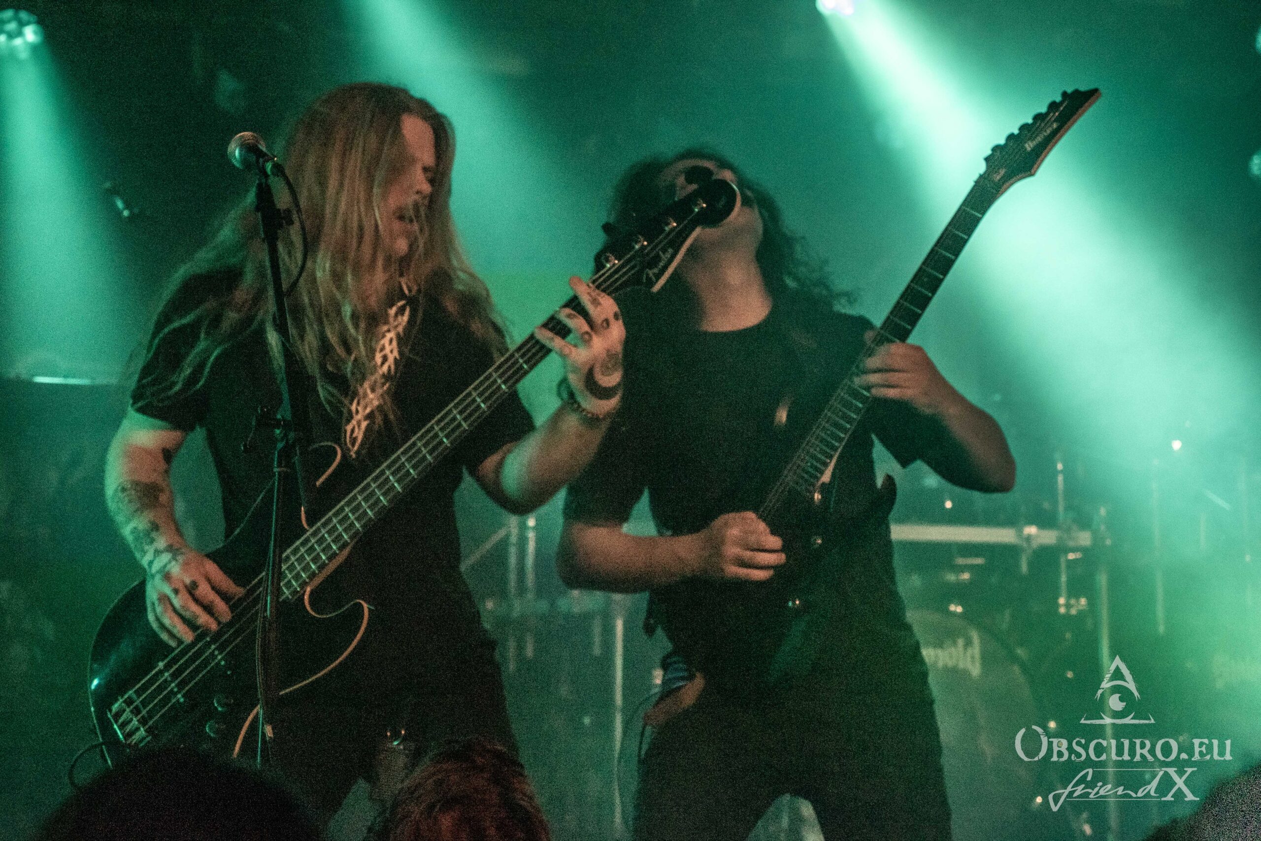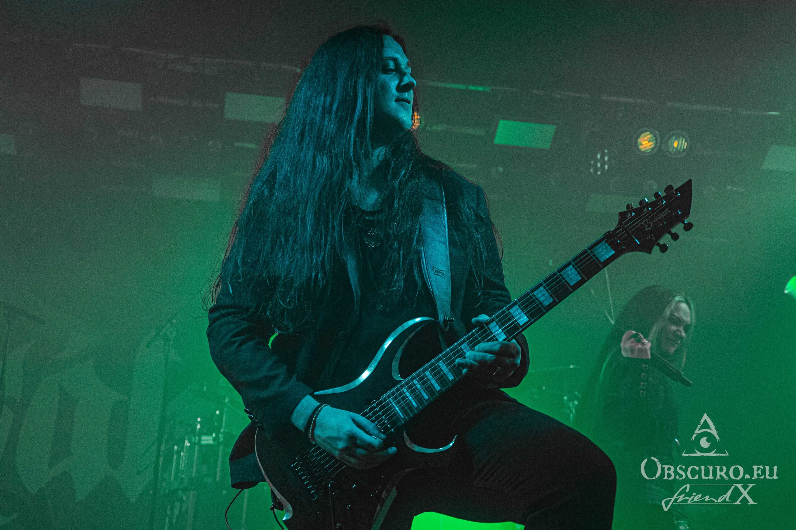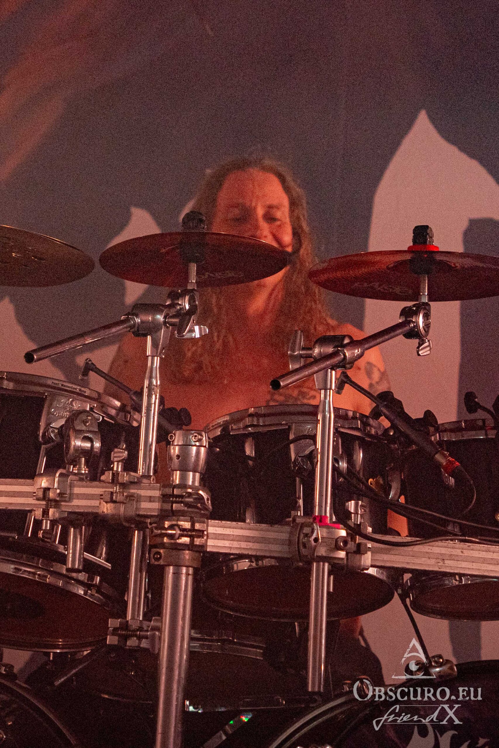 Just like during the tour’s first leg in 2023, tonight’s openers are the Canadians of Atavistia. Again, their set is rather short. Their powerful Melodic Death Metal and growls rule the stage for about 30 minutes only. Sound and light could be slightly better, but as so often, that’s the fate of the opener. The billowing dry ice fog does the rest, making it difficult to recognise the four musicians. Here are a few impressions though.