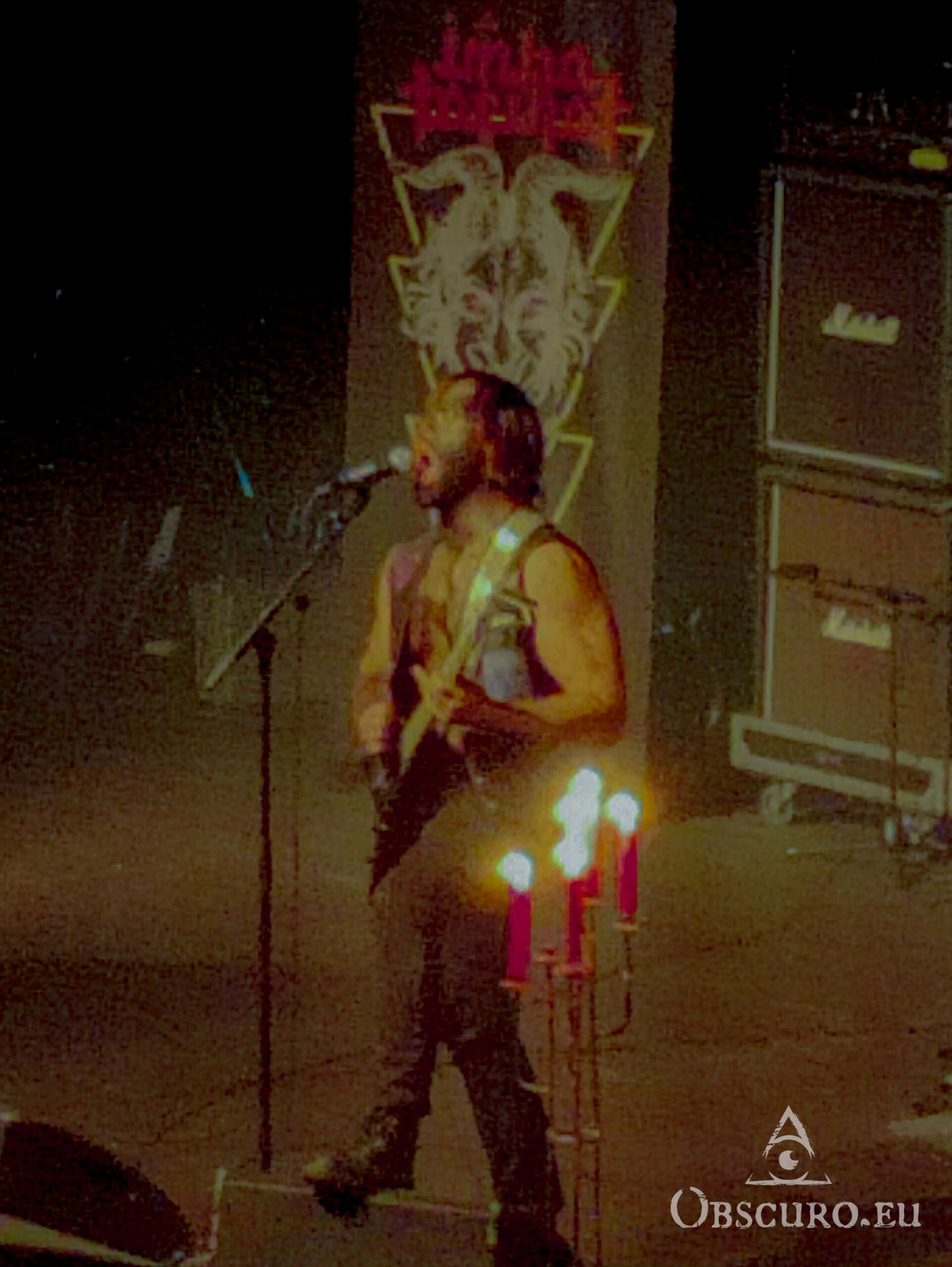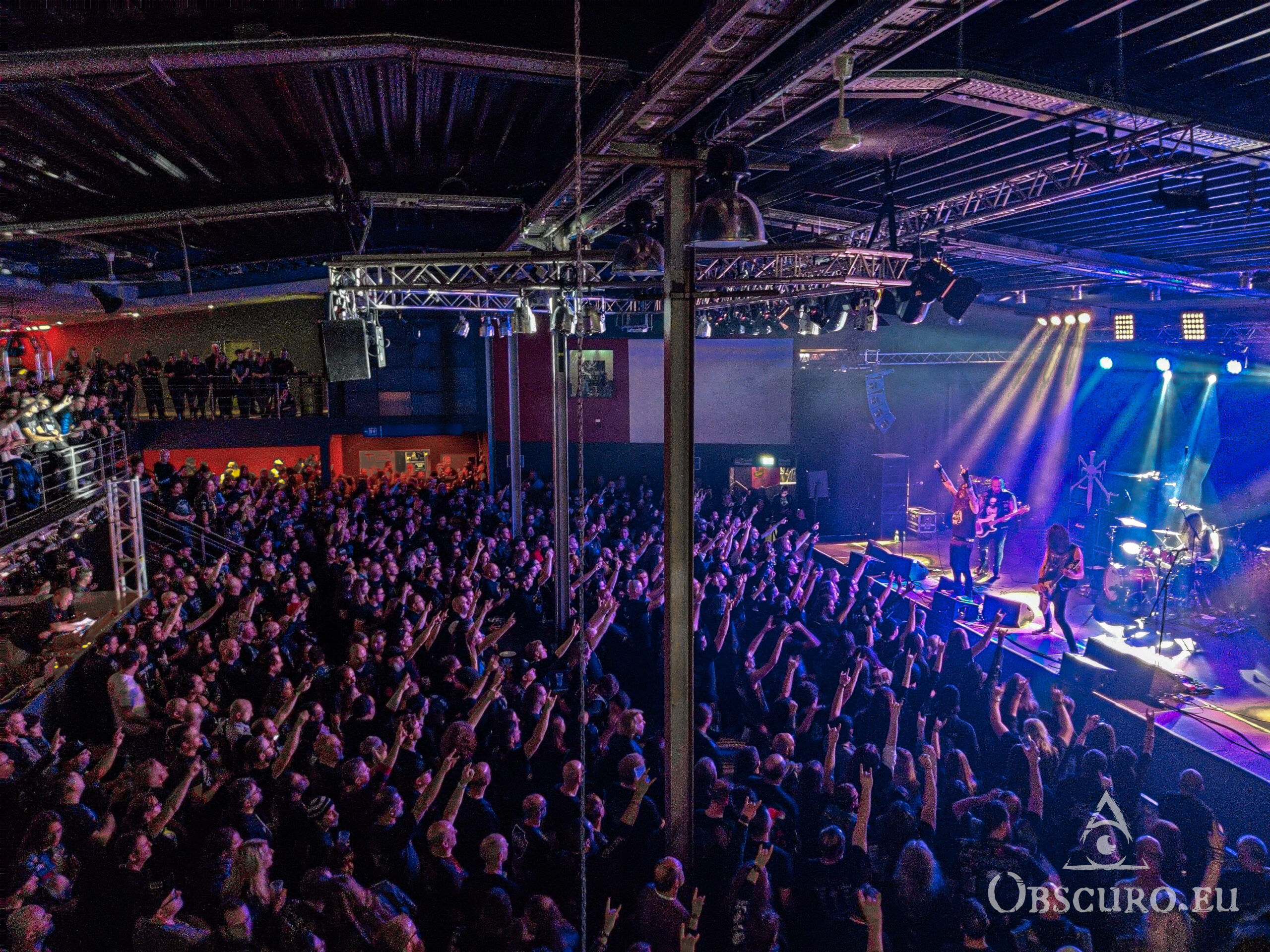 Again there was only time for a cigarette, a fresh beer and a bathroom visit before Knife started their show. The quite young band (founded in 2019) from Marburg, Germany needed no warming-up and went full speed. And so did the crowd who now started to freak out. Very fast Speed Metal, sounding like fresh from the 90s, was the ultimate tool to get the crowd started for Sodom, who most people probably had come for, at least according to the many t-shirts in the audience. Knife had an awesome gig and I’m still amazed about their live performance considering that they only had about two years of touring so far. If I hadn’t known, I would have thought they had been around since the 90s.