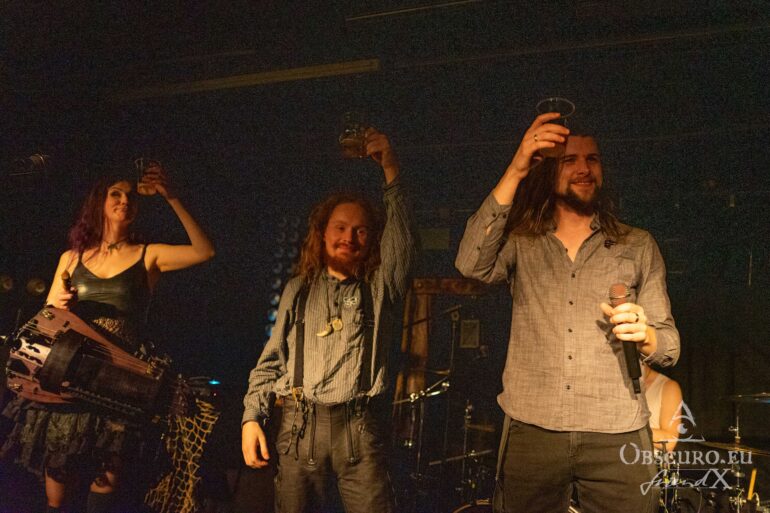 Then it is time for Captain “Timothy” Bornfleth on lead vocals and his crew, “Olaf” Bornfleth on percussion and drums, “Ughar der schrecklich Durstige” Braatz on beer barrel, keys and accordion, “Fabi” Kirschke on hurdy-gurdy and “Paulie” Martens on guitar. No bass player on board of their pirate ship, Well, a sixth and guest musician would have to fit into Storm Seeker’s brotherhood. AND he or she would need to squeeze in on stage. And this particular stage is smaller than most people’s bathroom…