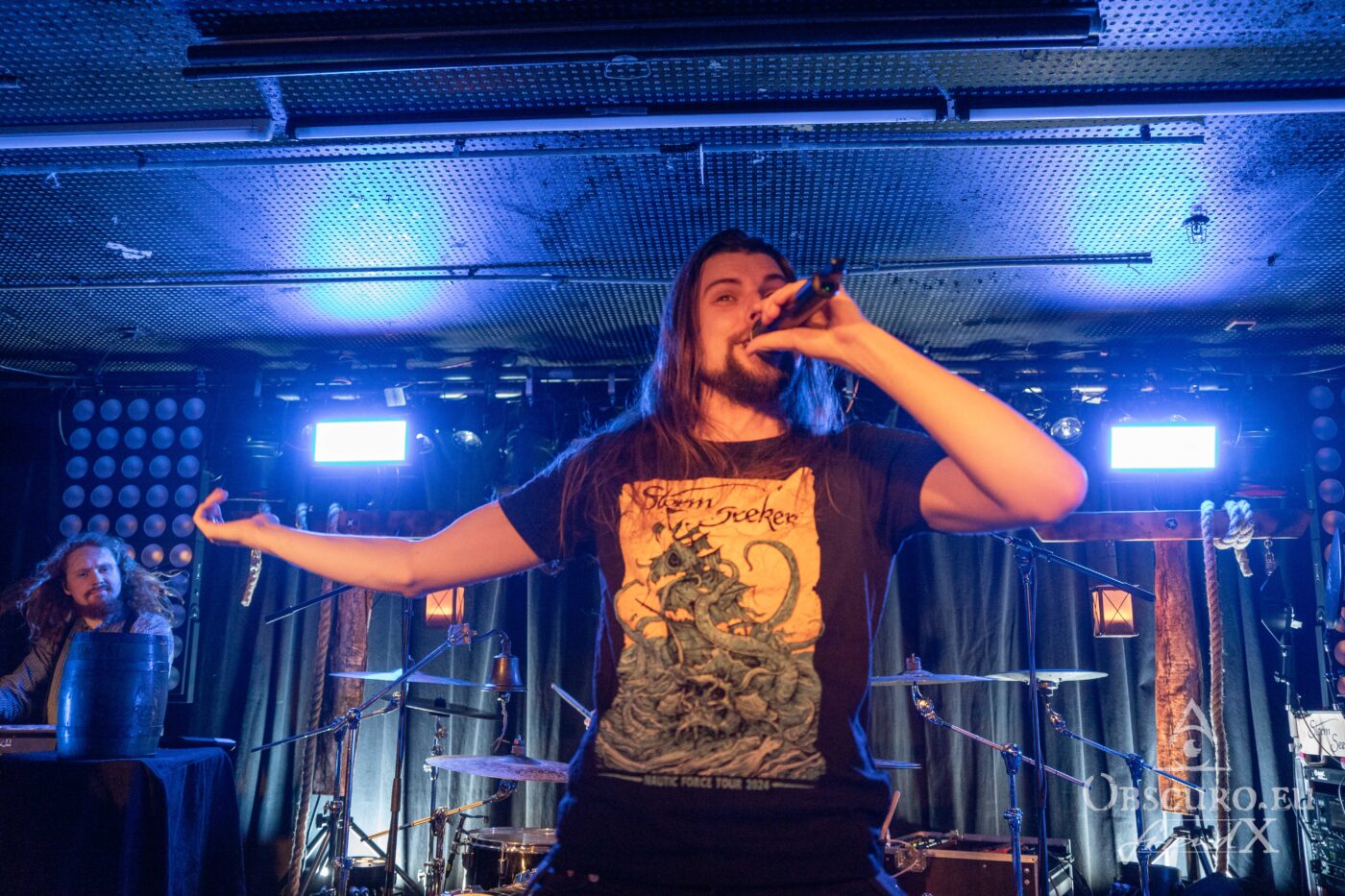 Of course, Storm Seeker don’t come alone, the opener of the tour is duo Tír Saor which enters the stage with their fine folk and celtic music but only half of the band today. Manuel comes alone because his bandmate Christian had an injury but he is already on the way of recovery. At least, for the first time ever, I see the tiny stage of Nachtleben not crowded or even overcrowded with musicians who must find their place.