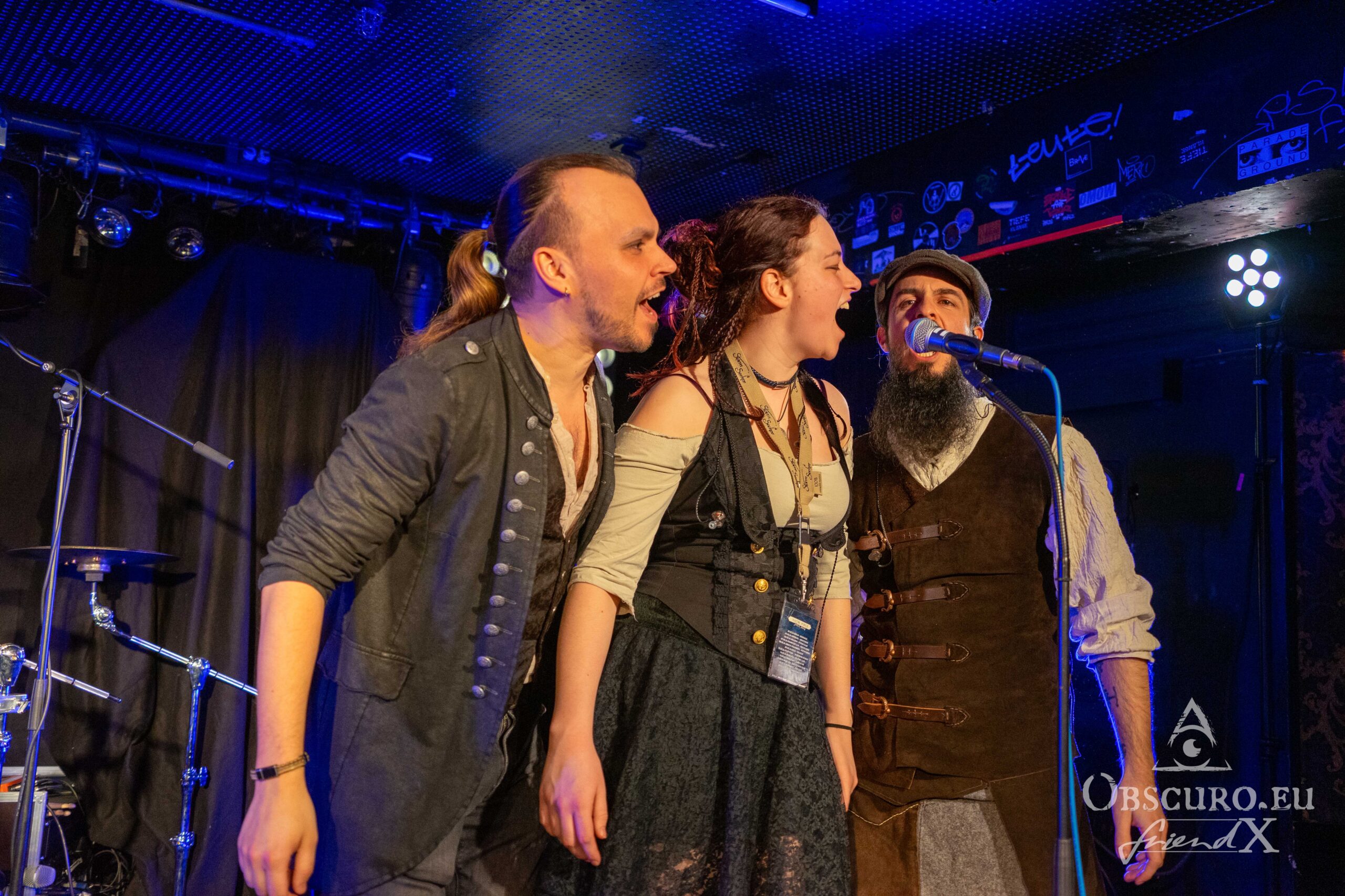 For the next 90 minutes we enjoy a festival of piracy in the best terms of its golden age. And we meet Manuel again, he joins in for a singalong in the middle of crowd. Paulie and Olaf swap instruments, Fabi swaps them with herself anyway, from hurdy-gurdy to flute to vocals and to an unidentified instrument which I thought is part of a torture procedure.