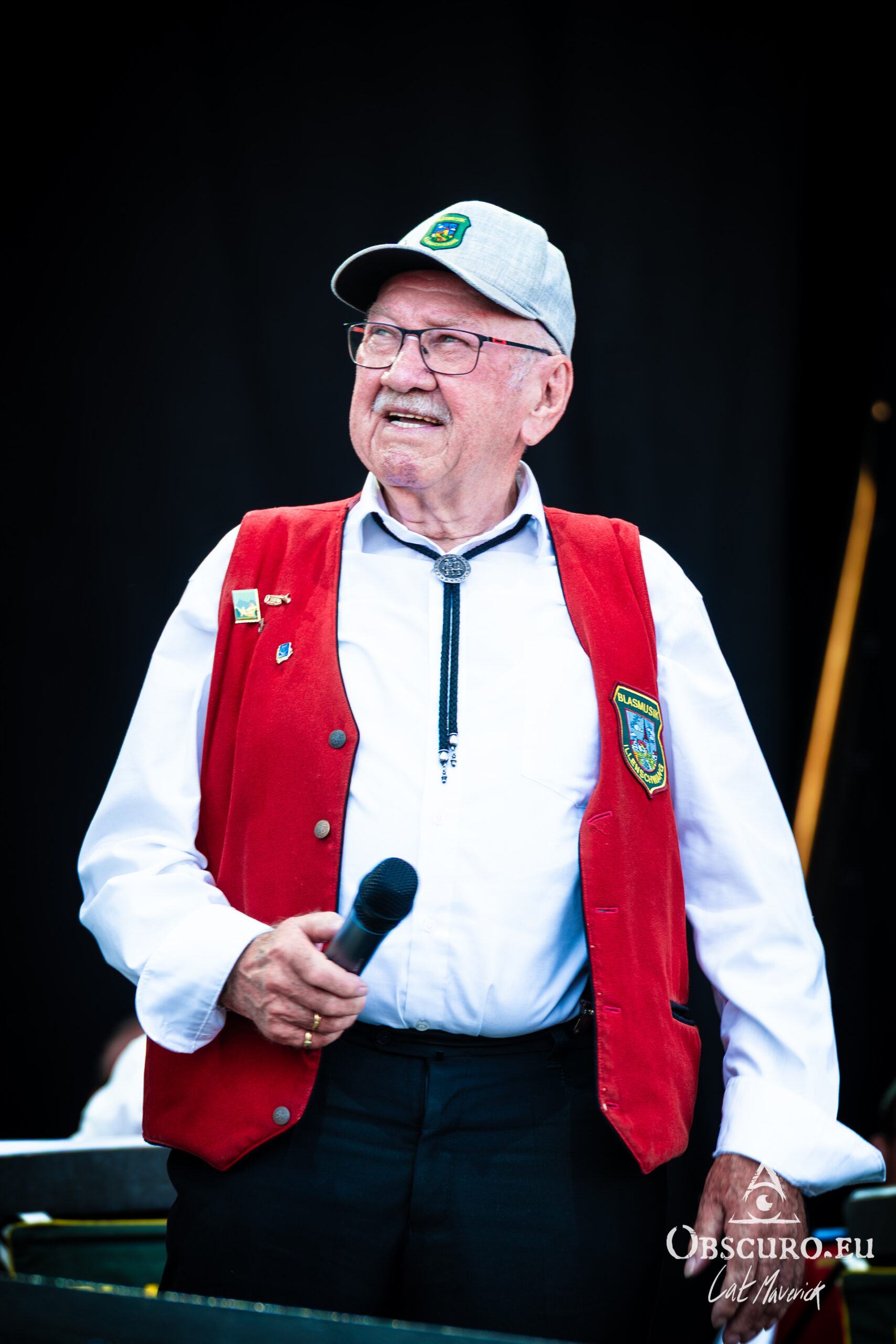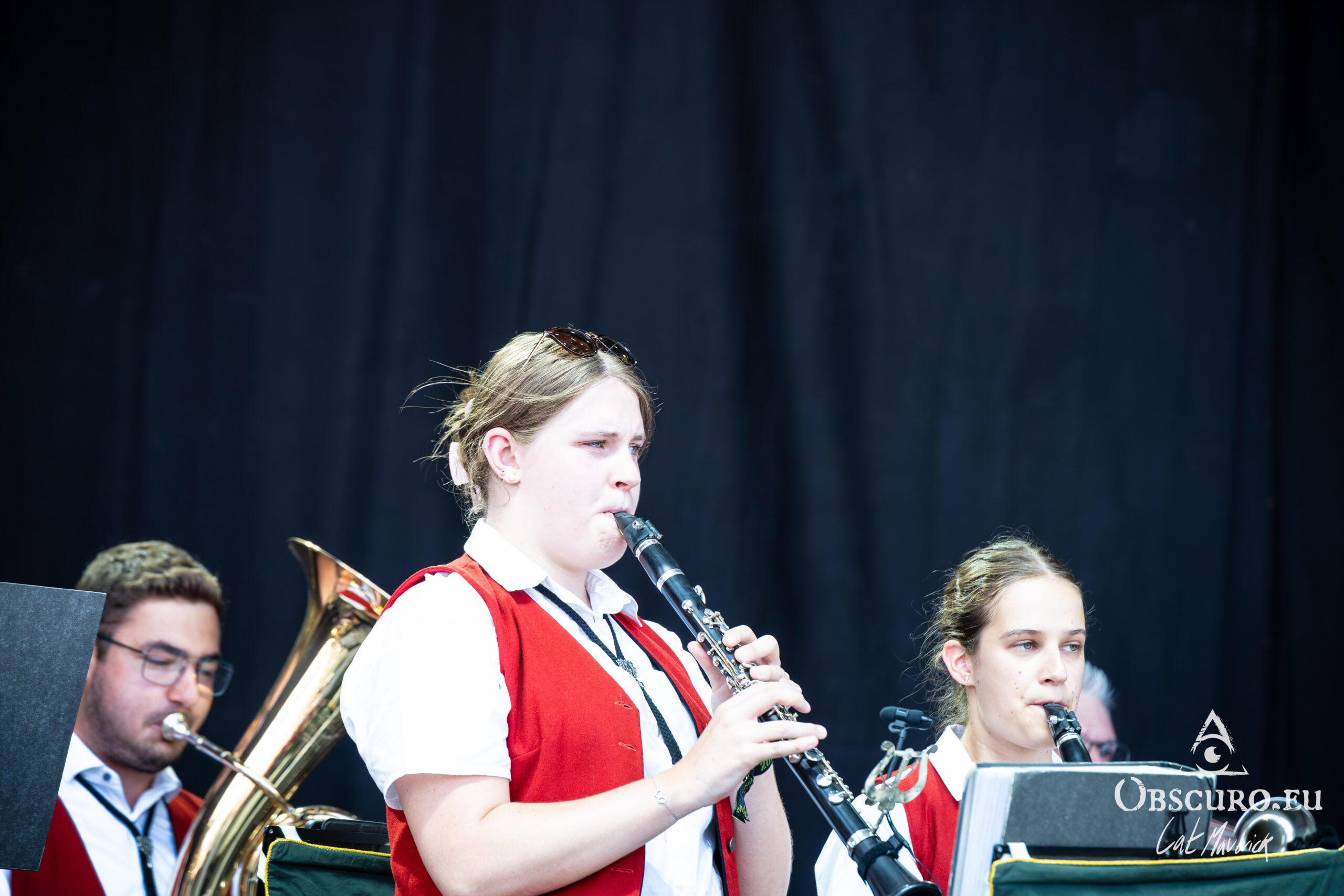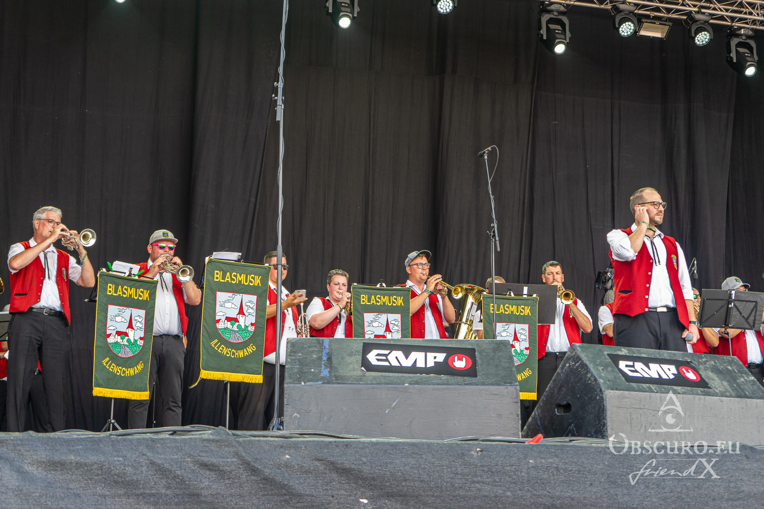 The festival’s main program starts, and the honor of kicking things off as always falls to the Blasmusik Illenschwang. The traditional brass and woodwind ensemble, hailing from a nearby village, has become a quirky but beloved fixture of Summer Breeze, a delightful and openly welcomed anomaly in a sea of extreme sound.
