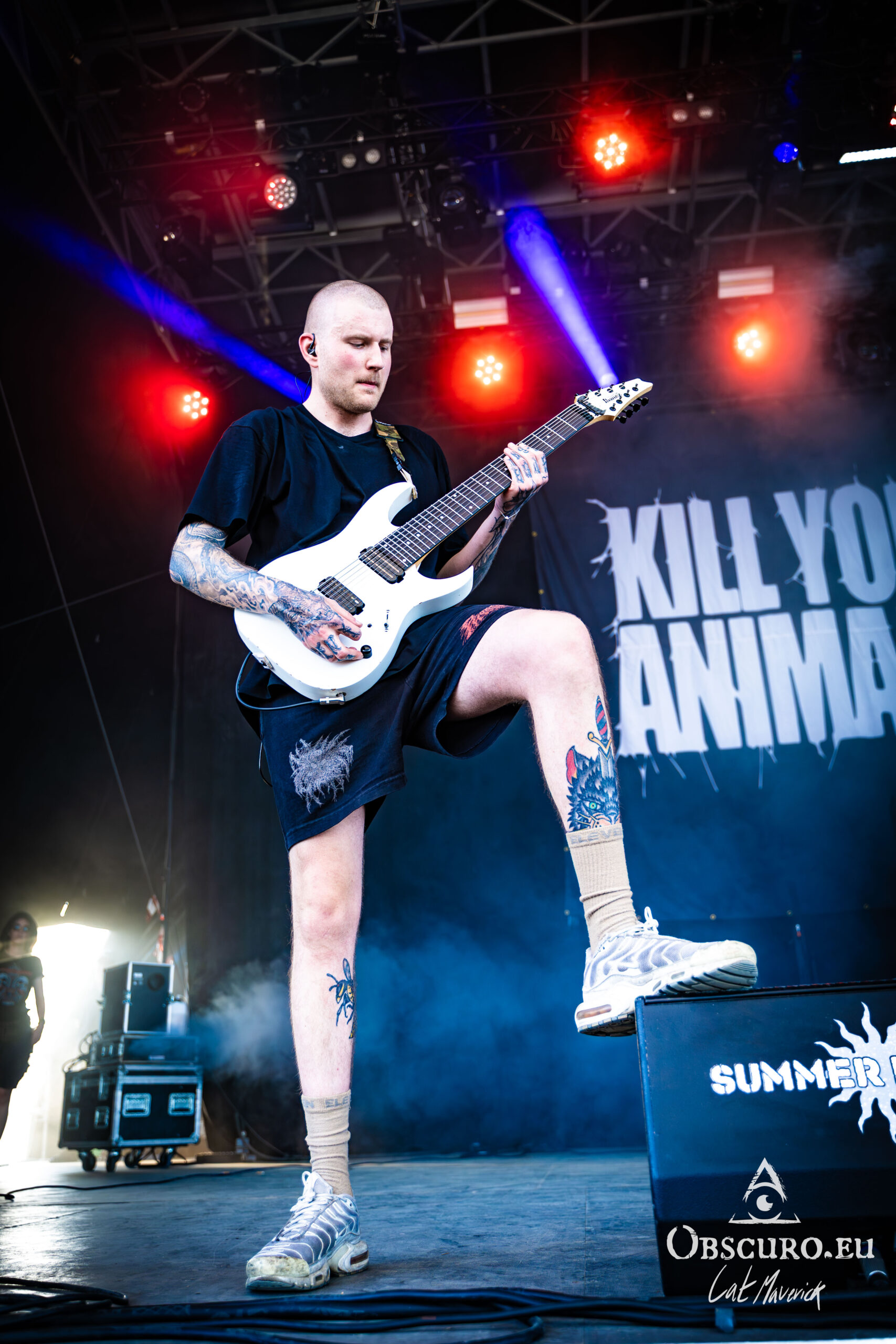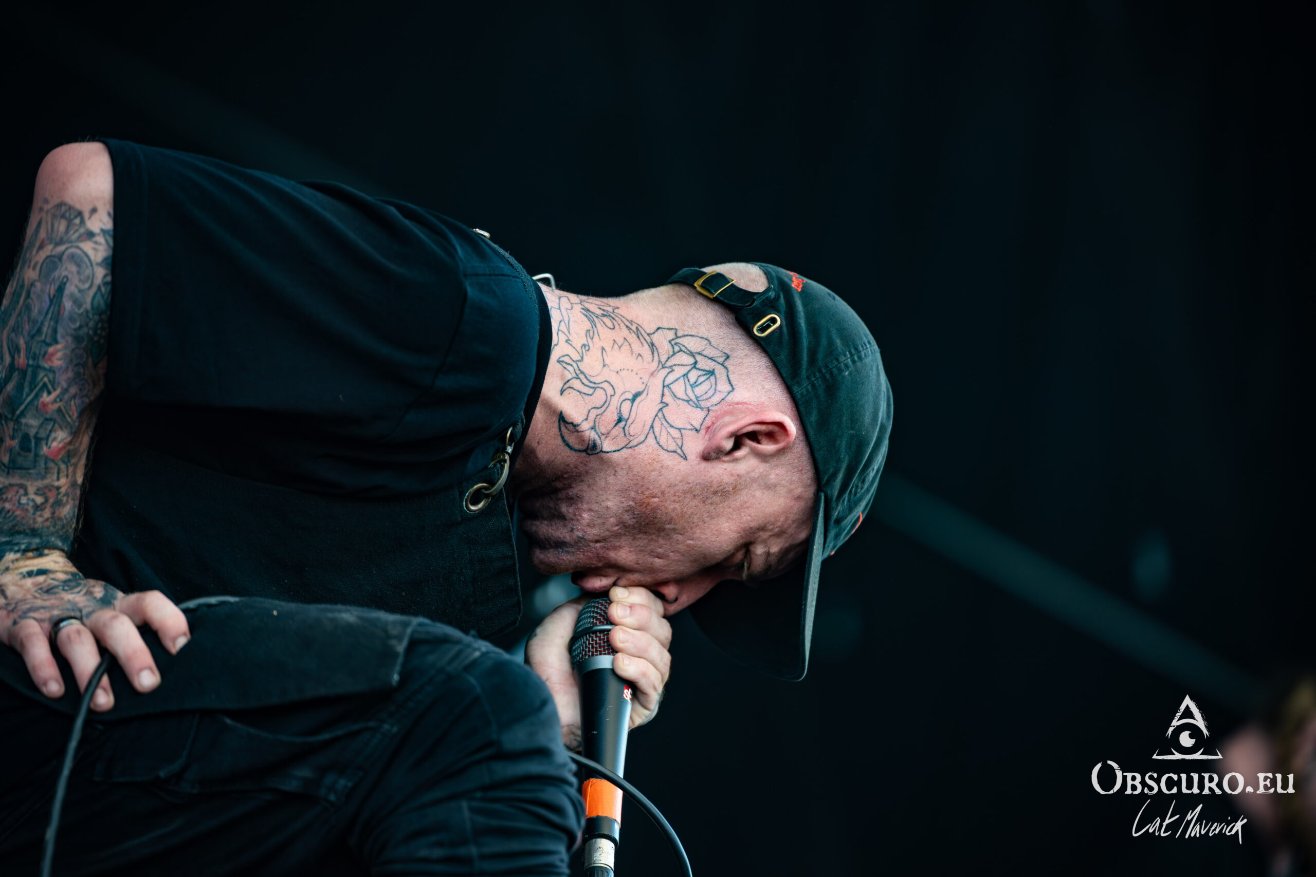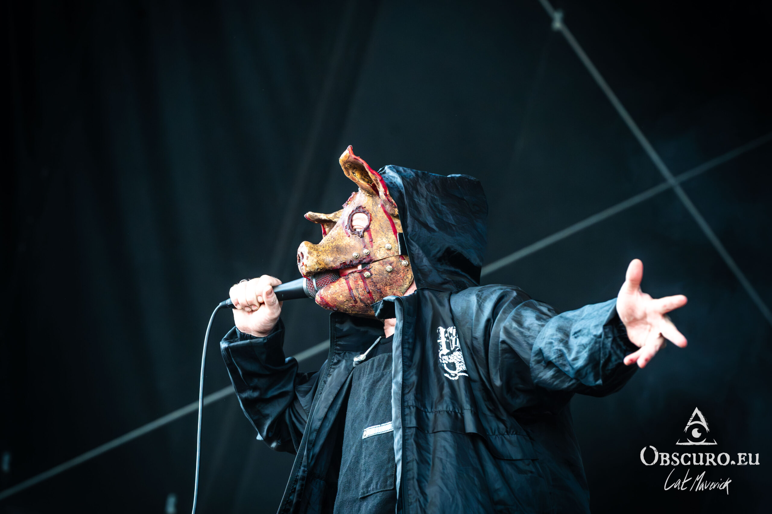 Following the anarchic fun of Gutalax, a different kind of intensity takes over at the Wera Tool Rebel stage. While melodic death metal stars The Halo Effect take the main stage, the deathcore faithful make their way to To The Grave, seeking refuge from the relentless sun in the stage’s shadow. The Australian band delivers a crushing set of brutal deathcore, and the stage is set with a striking visual statement. The backdrop, a stark canvas of defiance, reads only, “Kill your local animal abuser.” The frontman, clad in a butcher’s apron and an ornate, gory pig mask, delivers his guttural vocals, securing their reputation for both musical ferocity and a stark, uncompromising message.