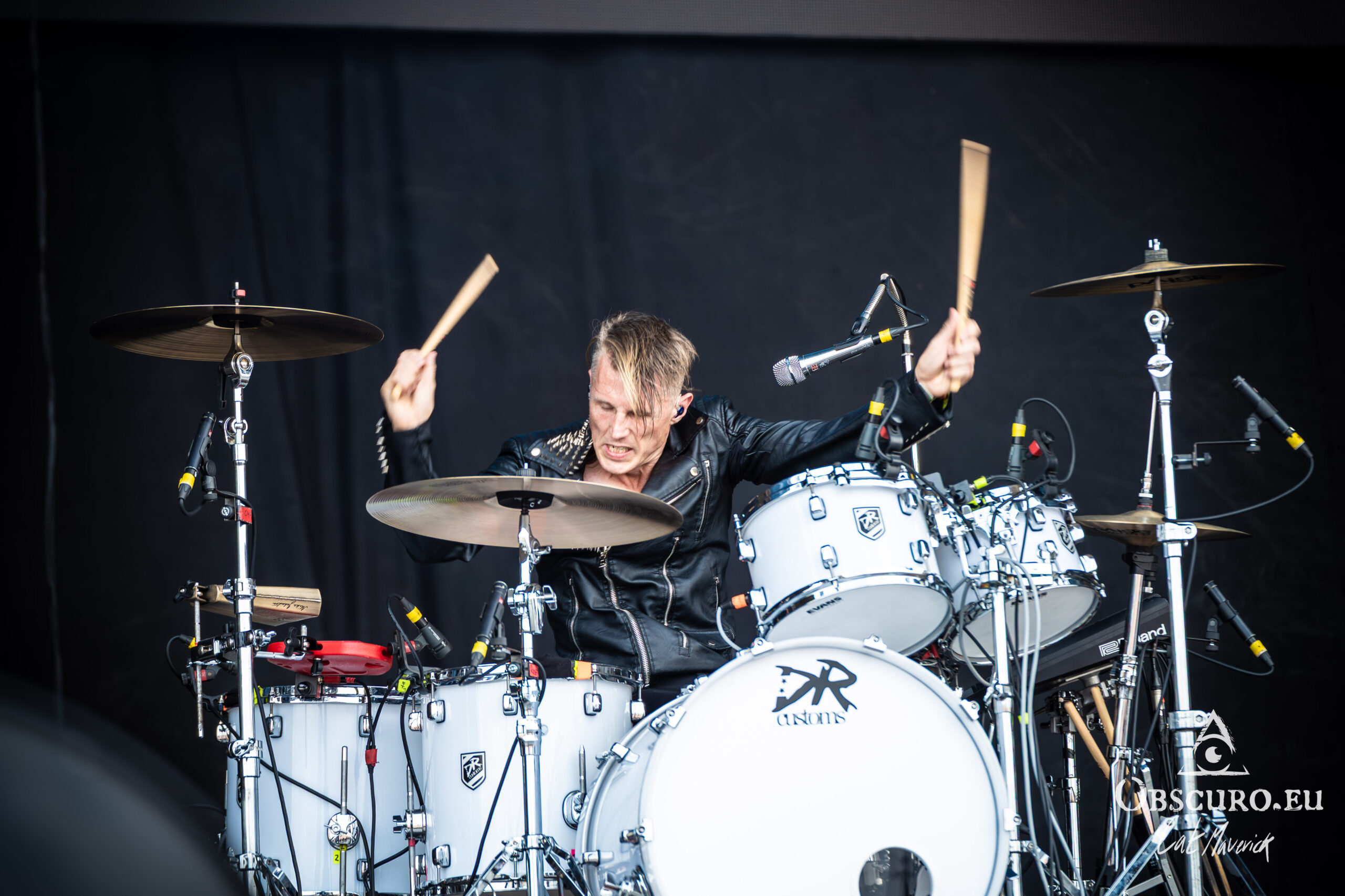 Fortunately, the storm passes as quickly as it came, allowing us to make it just in time for Adept. The Swedish post-hardcore band is an absolute highlight, and the show is a stunning display of raw emotion and power. The set has an added layer of intimacy, as the frontman confesses to the crowd that he is extremely nervous, given the band’s limited number of performances in recent years. This vulnerability, however, only seems to fuel the fans’ excitement and energy. To which Adept respond with delivering a flawless show, their heavy, melodic sound and passionate delivery proving that despite their time away, they are as formidable as ever.