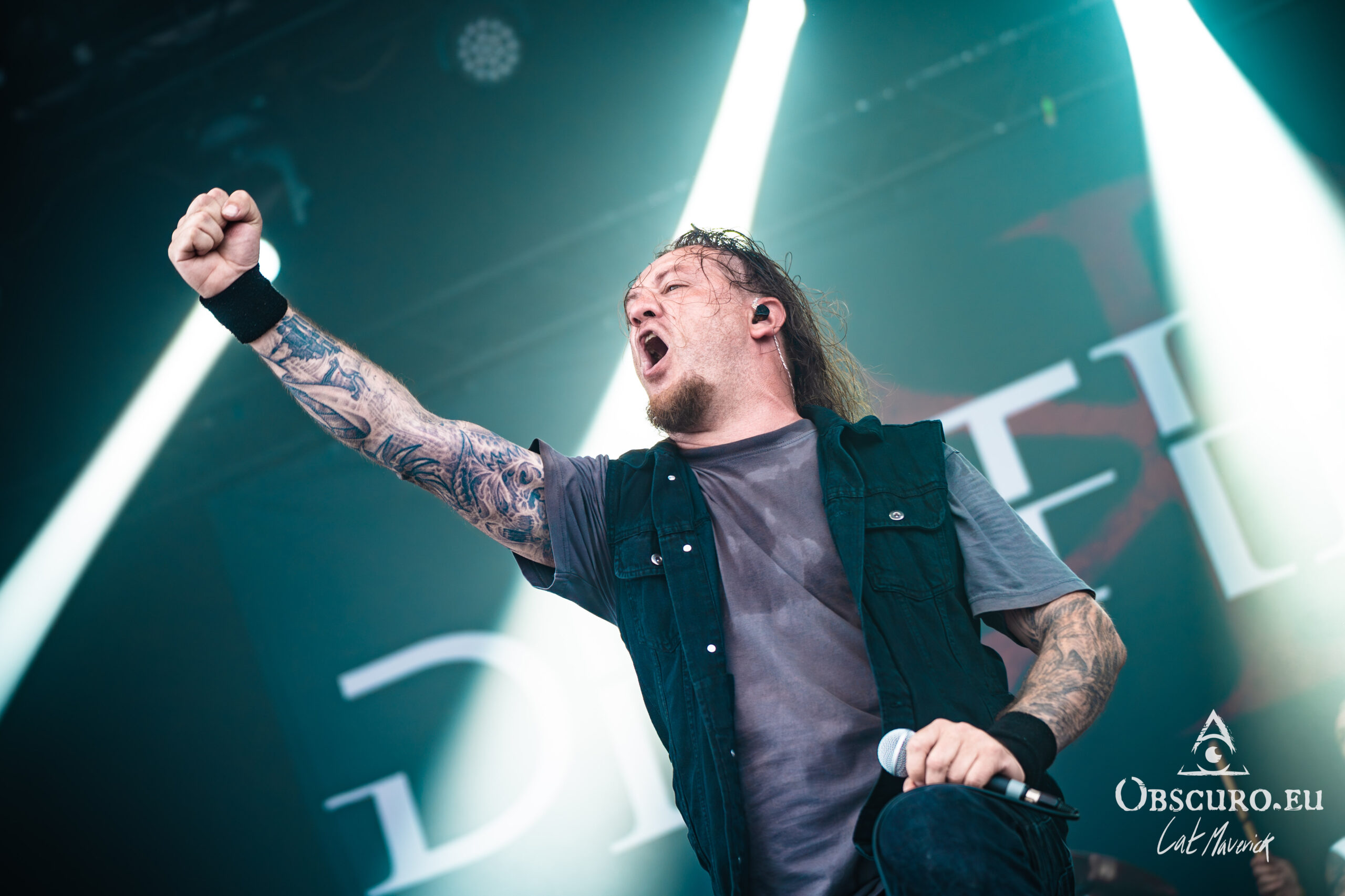 As much as the relentless sun is a defining feature of the week, the weather has other plans for the late afternoon. Just as Fit For A King are set to take the stage, a sudden and heavy downpour erupts, sending many festival-goers – including ourselves- scrambling for cover. A brief but intense storm replaces the heat with gallons of rain, and takes our opportunity to enjoy this awesome set from us and many other fans.