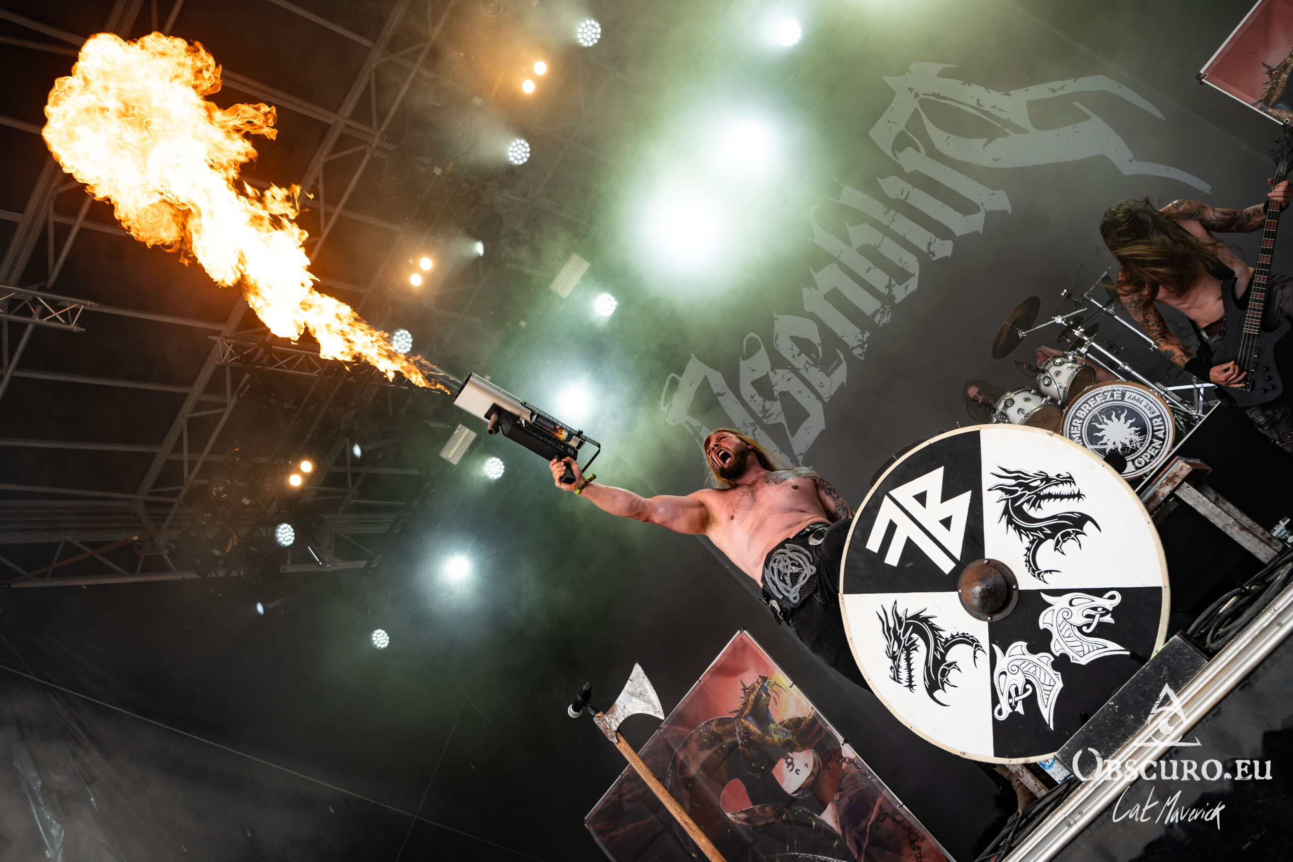 While some are still captivated by the magical soundscape of Charlotte Wessels, the energy shifts abruptly with the arrival of Asenblut on the Wera Tool Rebel Stage. The German melodic death metal band, with their unique blend of Viking and Pagan influences, delivers a powerful and aggressive set. Their music is a thunderous call to arms, filled with blistering riffs and furious drumming that instantly grabs the attention of the crowd. On top of all that, singer Tim „Tetzel“ Schmidt‘s unique deep voice and “a mountain of a man”-like physique really lock people in on their performance.