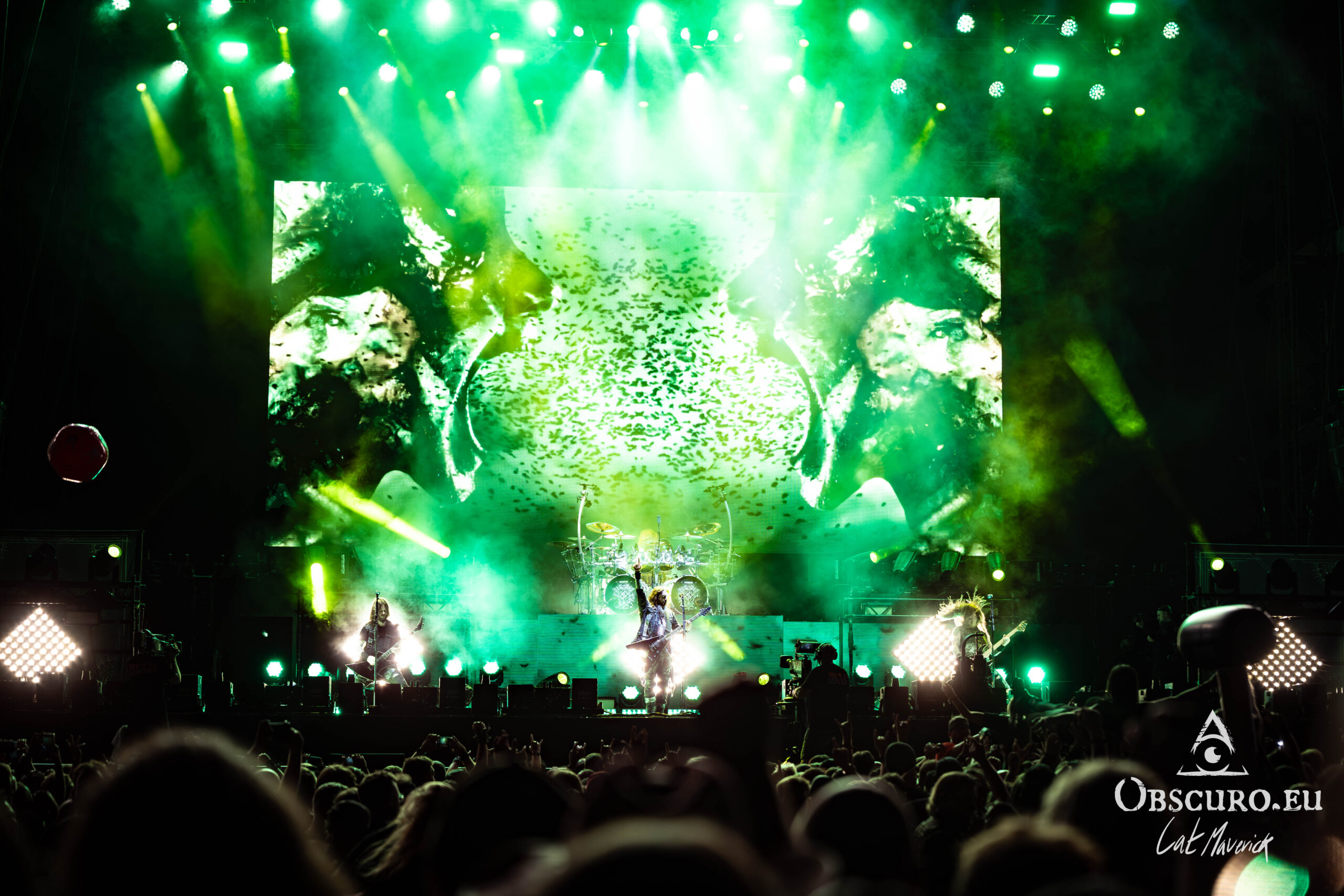 As the first headliner of the day, we have Beast in Black with a powerful, high-energy performance. Their music, defined by super-high vocals and soaring, “singing” guitar melodies, has a unique blend of heavy metal and 80s synth-pop. This distinct sound has propelled them to a headlining slot in just a few short years, a testament to their massive appeal and consistently great live shows. Their performance is a wall of sound and energy that has the entire crowd in a frenzy.
