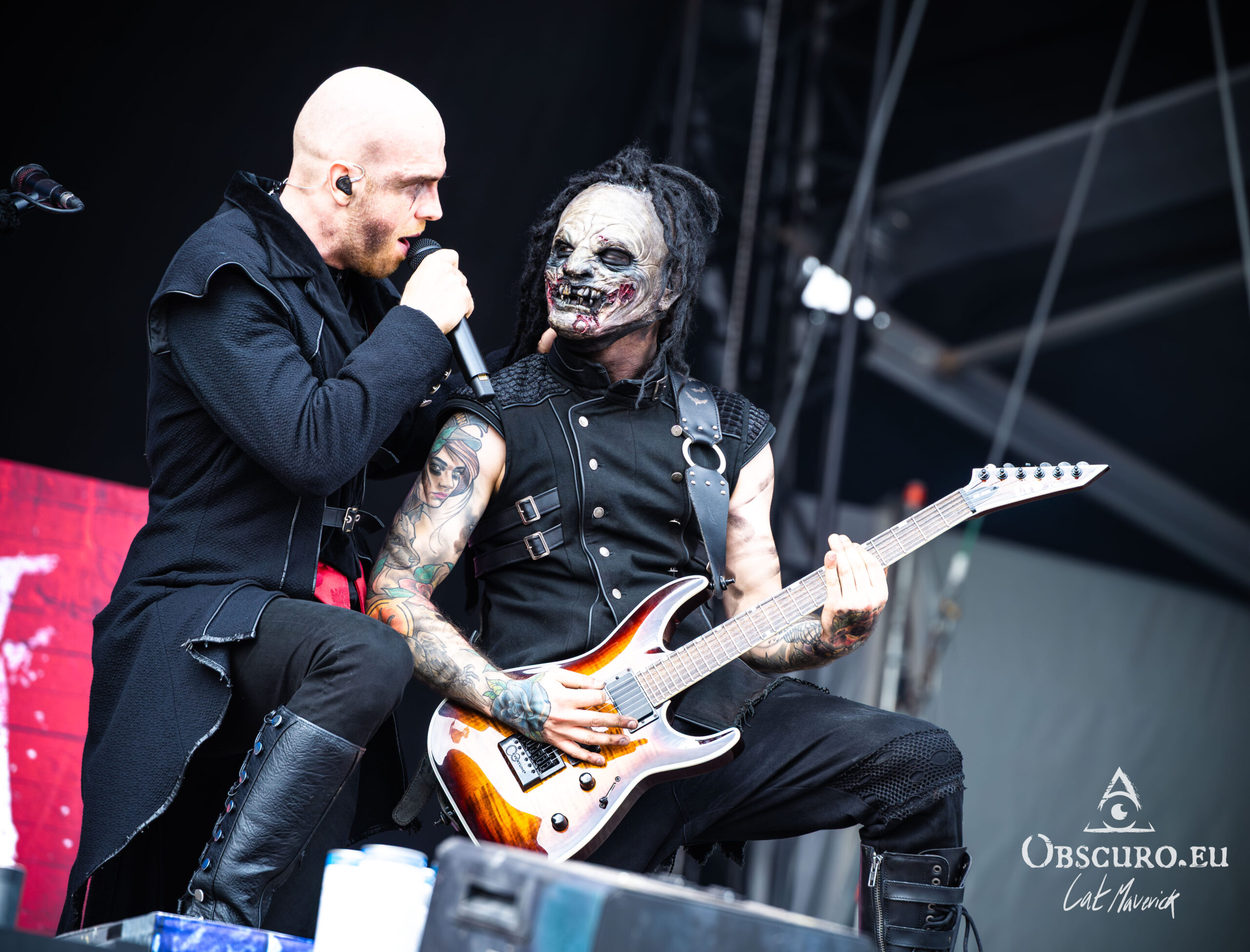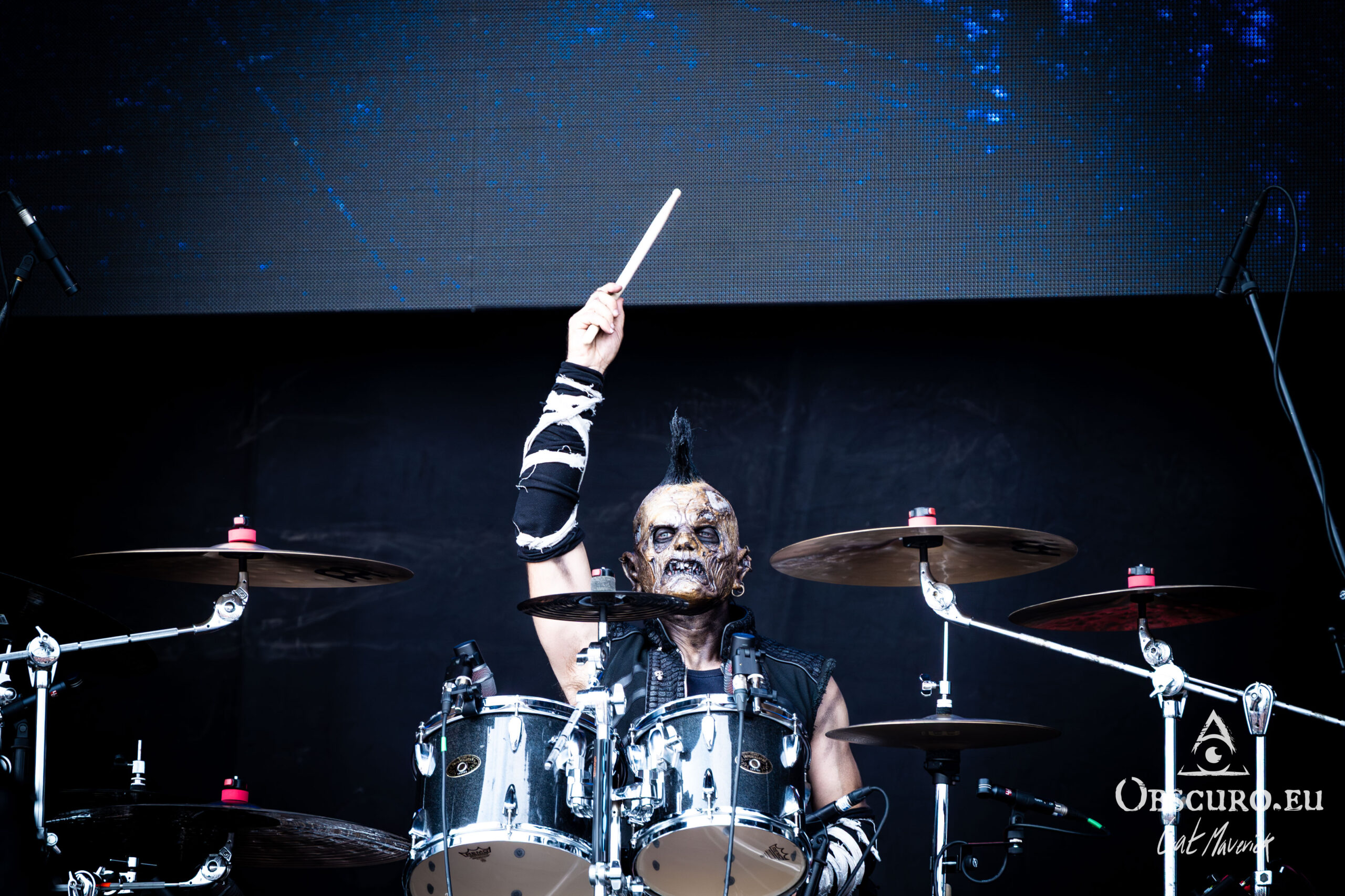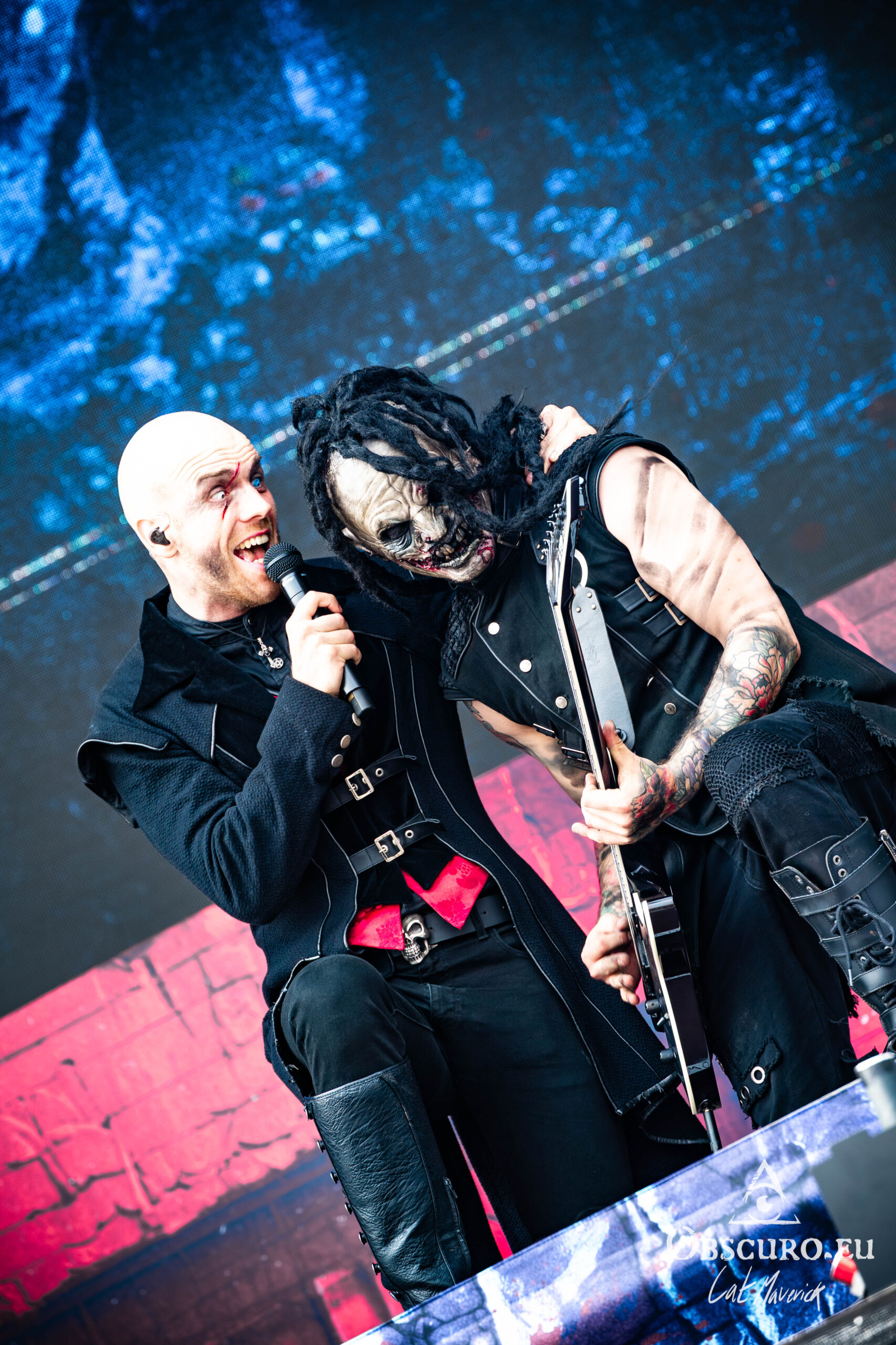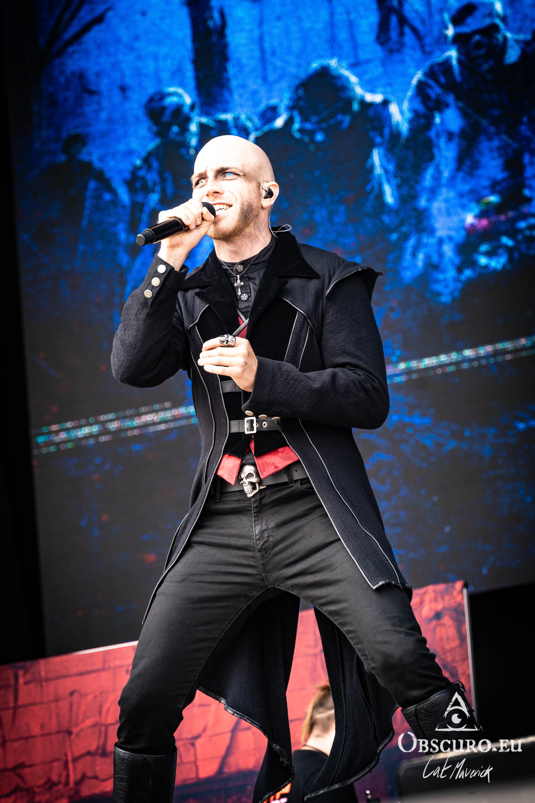 The mood takes a turn for the theatrical with Dominum, a band that fully embraces undead, zombie-themed personas. Their costumes are a highlight, both visually stunning and slightly terrifying, a perfect fit for their high-powered metal. The singer’s appearance is particularly captivating; even without a mask, his scarred makeup and eerie contact lenses create an unsettling presence. His stage presence and powerful voice draw everyone in, solidifying their place as one of the most compelling visual and aural experiences of the day.