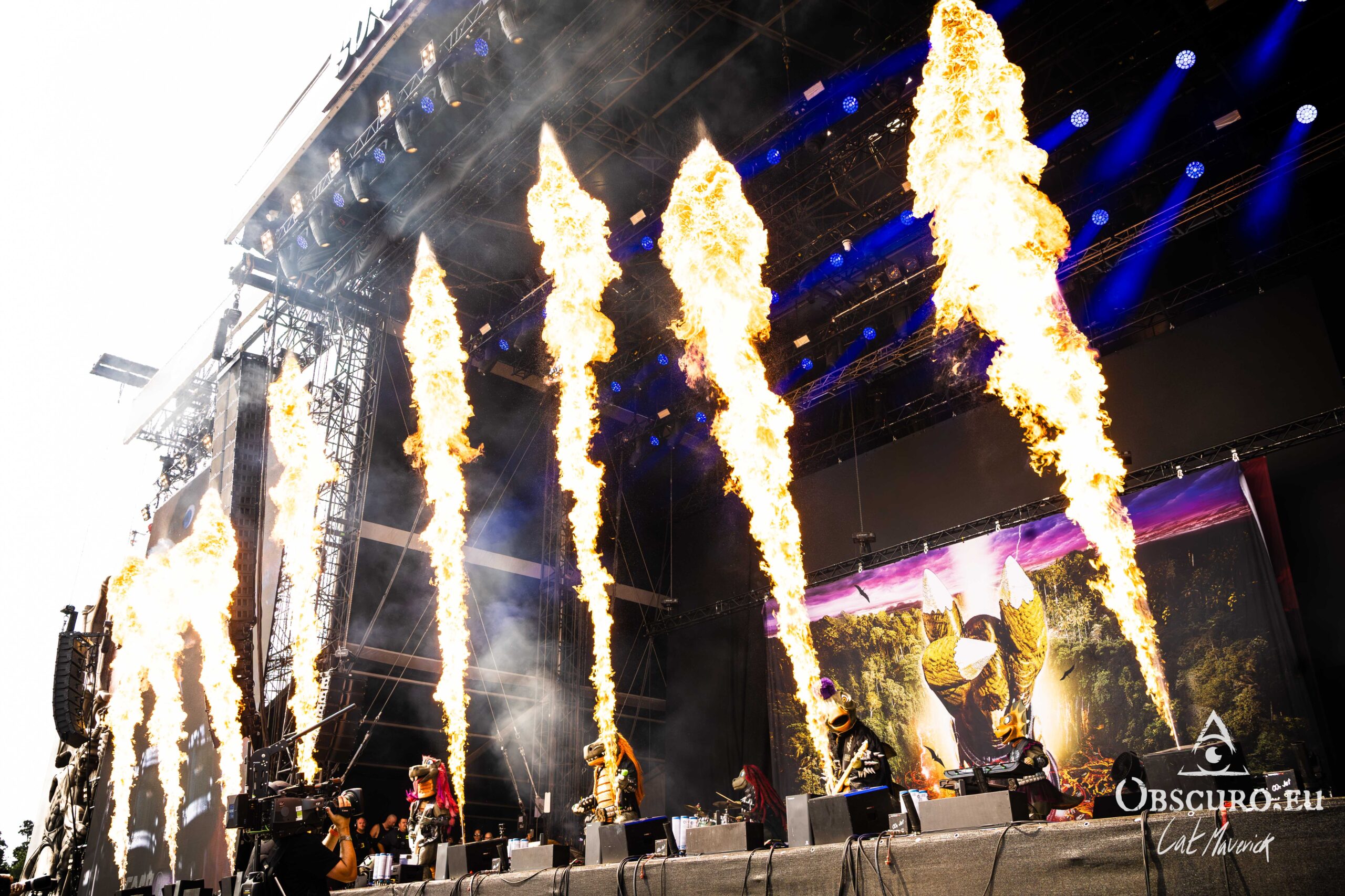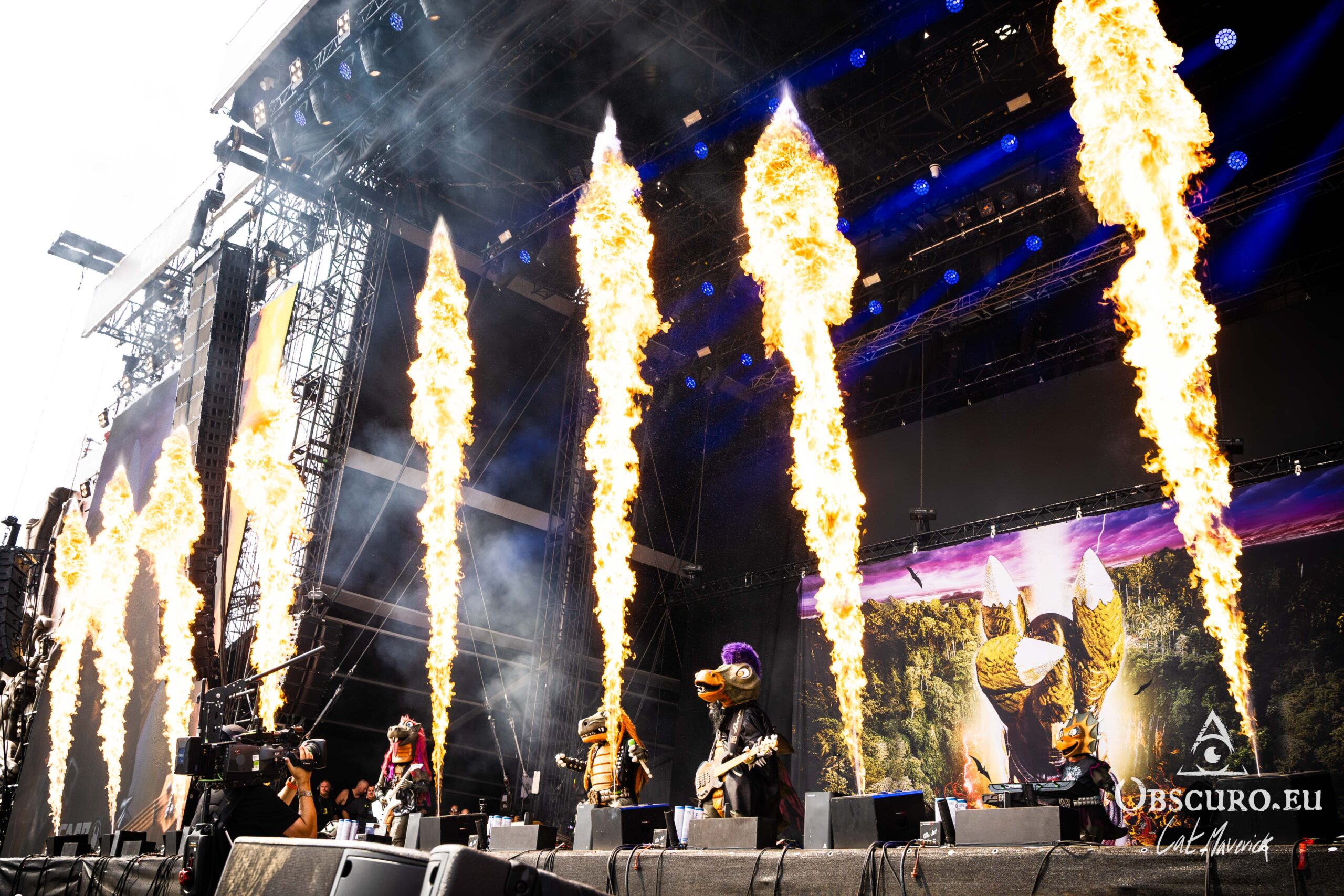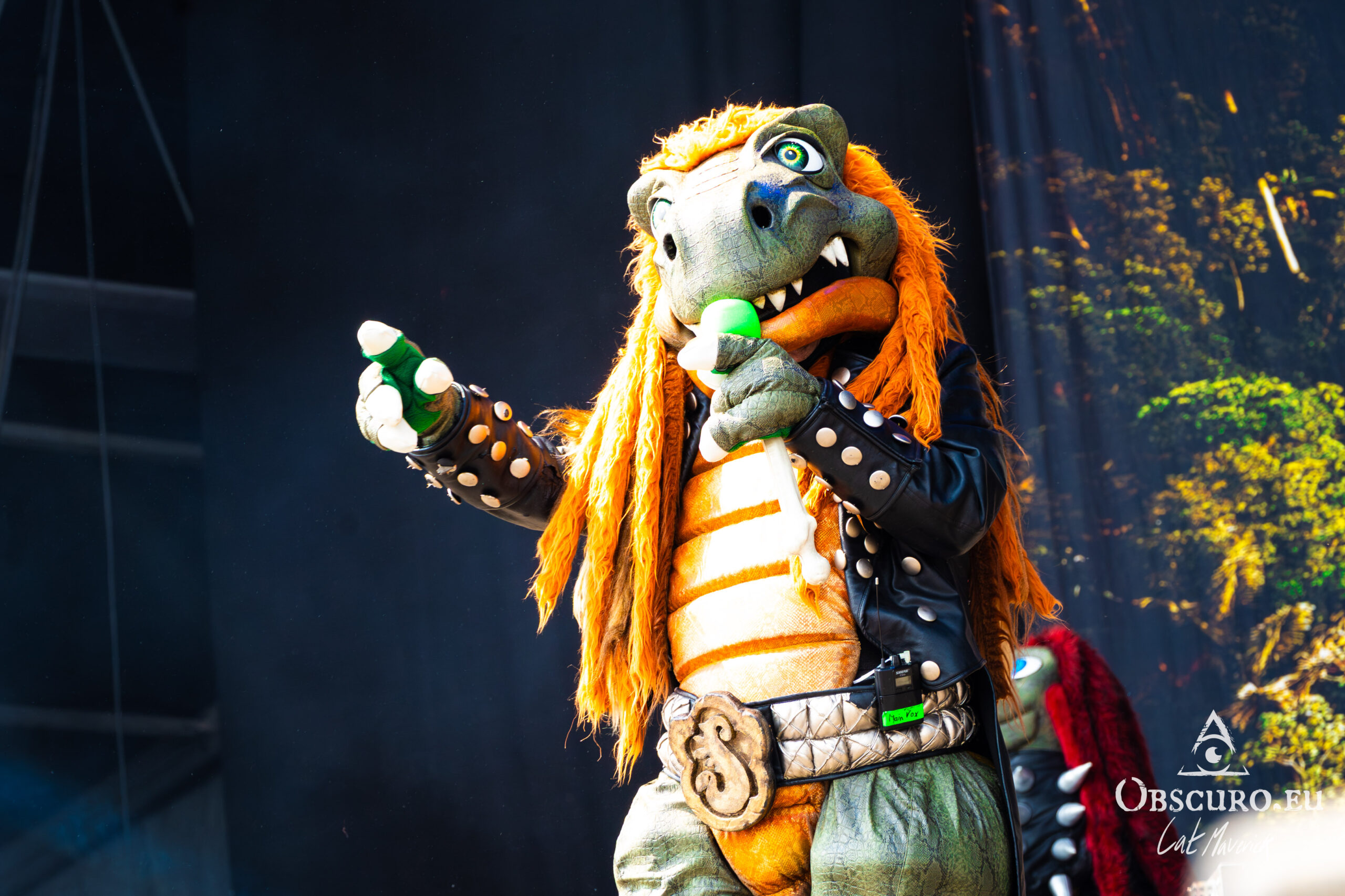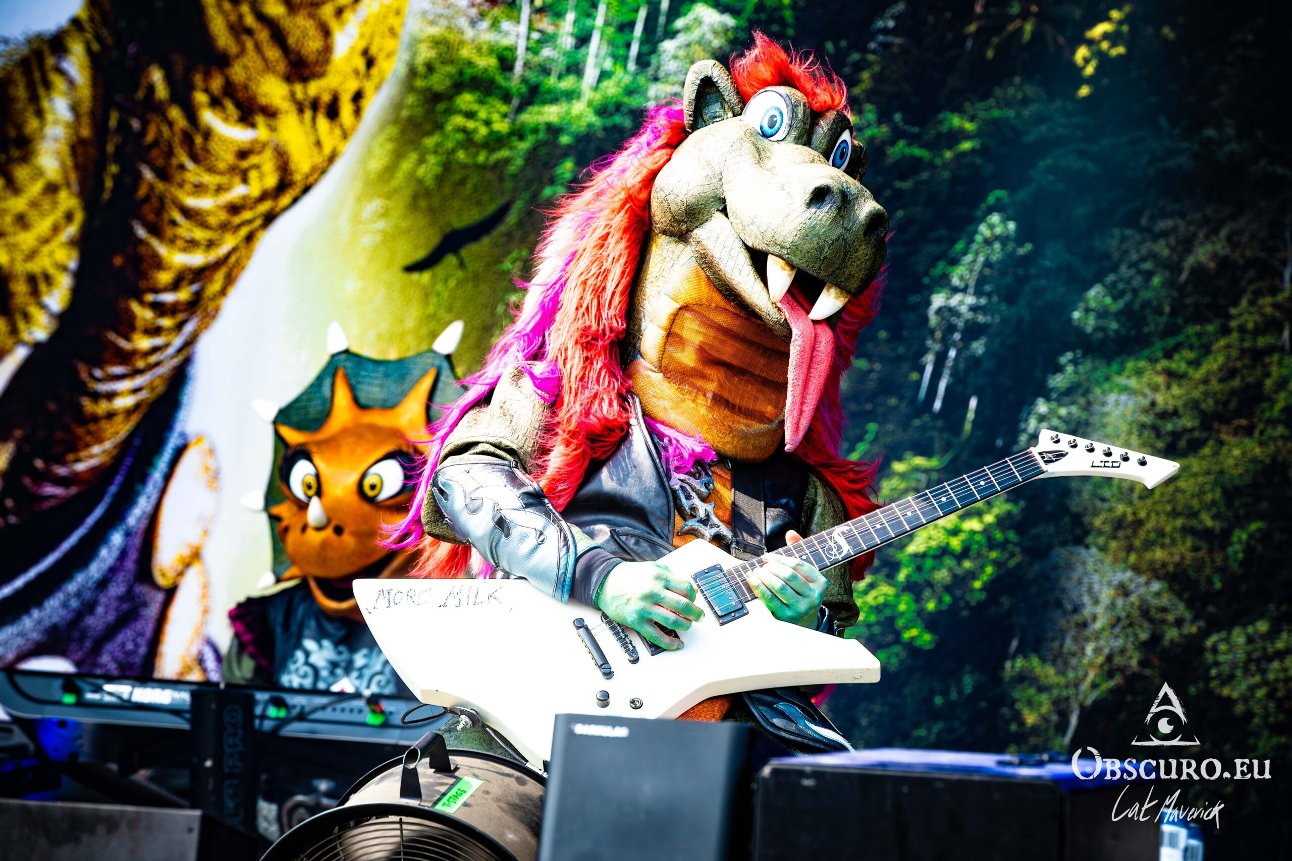 The day’s first major draw is a sight to behold: the German band Heavysaurus, with their full-body dinosaur costumes. It is a uniquely family-friendly spectacle at a festival known for its intensity. The band delivers a set of fun, heavy metal covers of famous songs, but with alternative, kid-friendly lyrics. The sight of a dinosaur band on stage singing about milk and school is pure joy, and the crowd – a mix of parents and their headbanging children – is completely captivated.