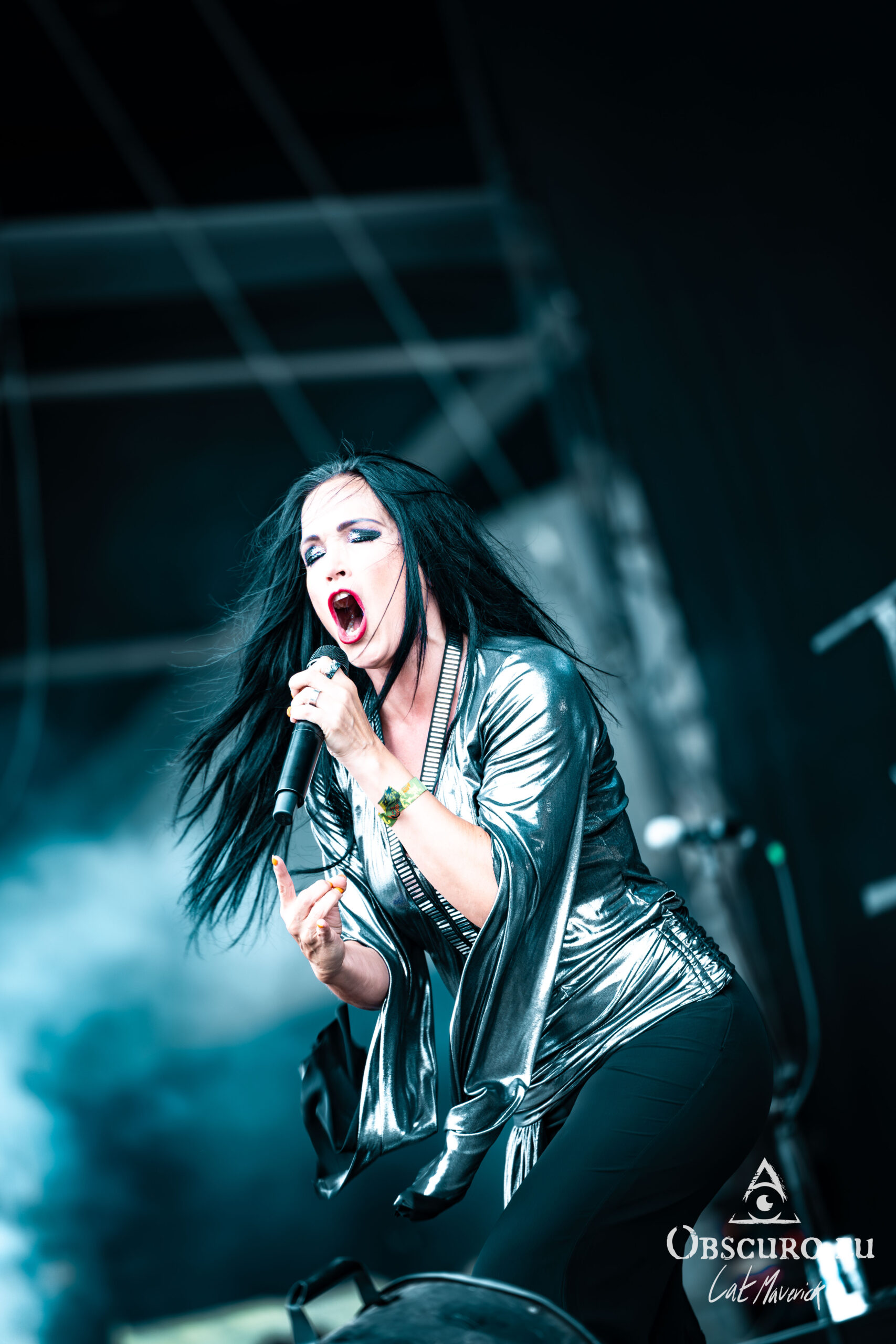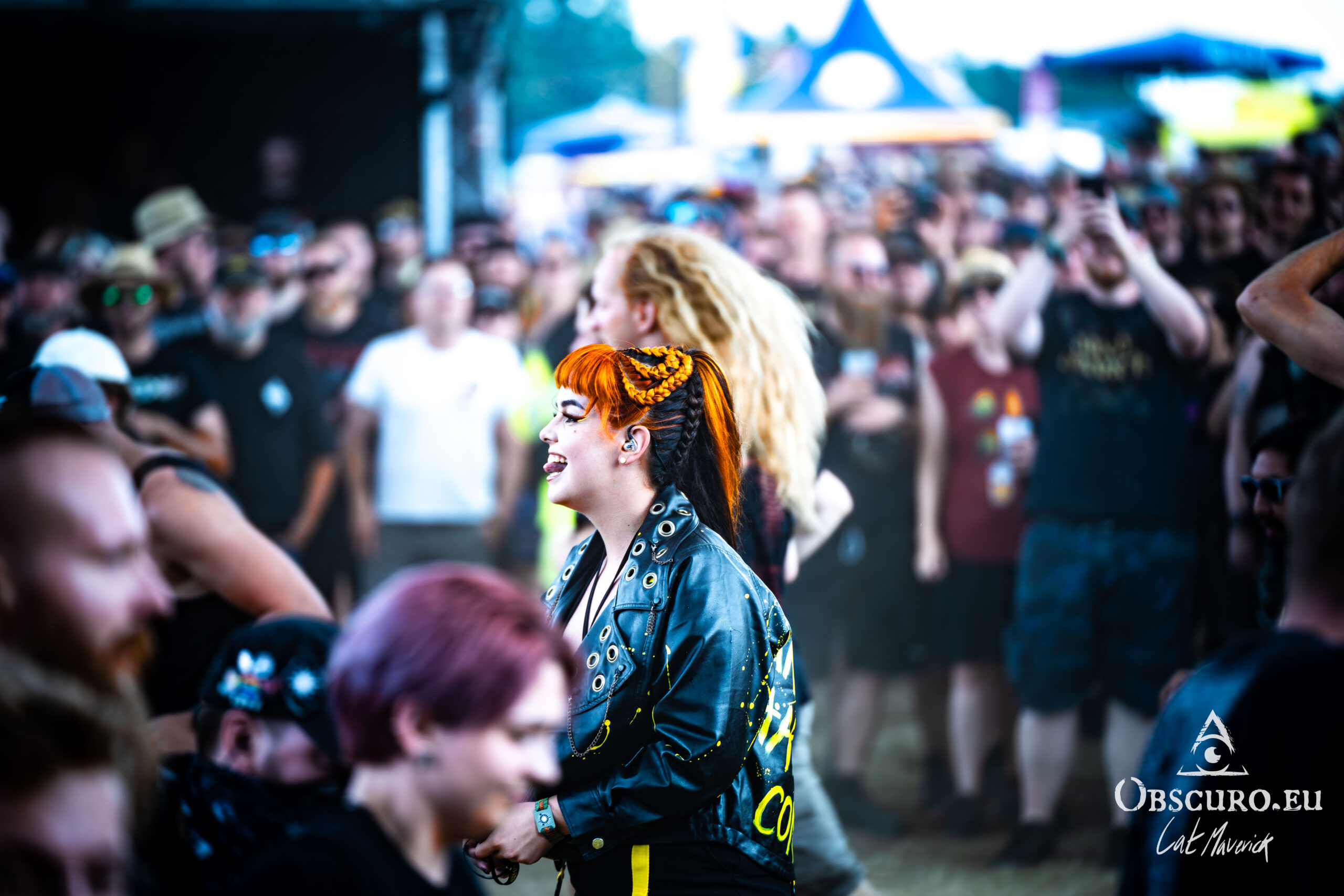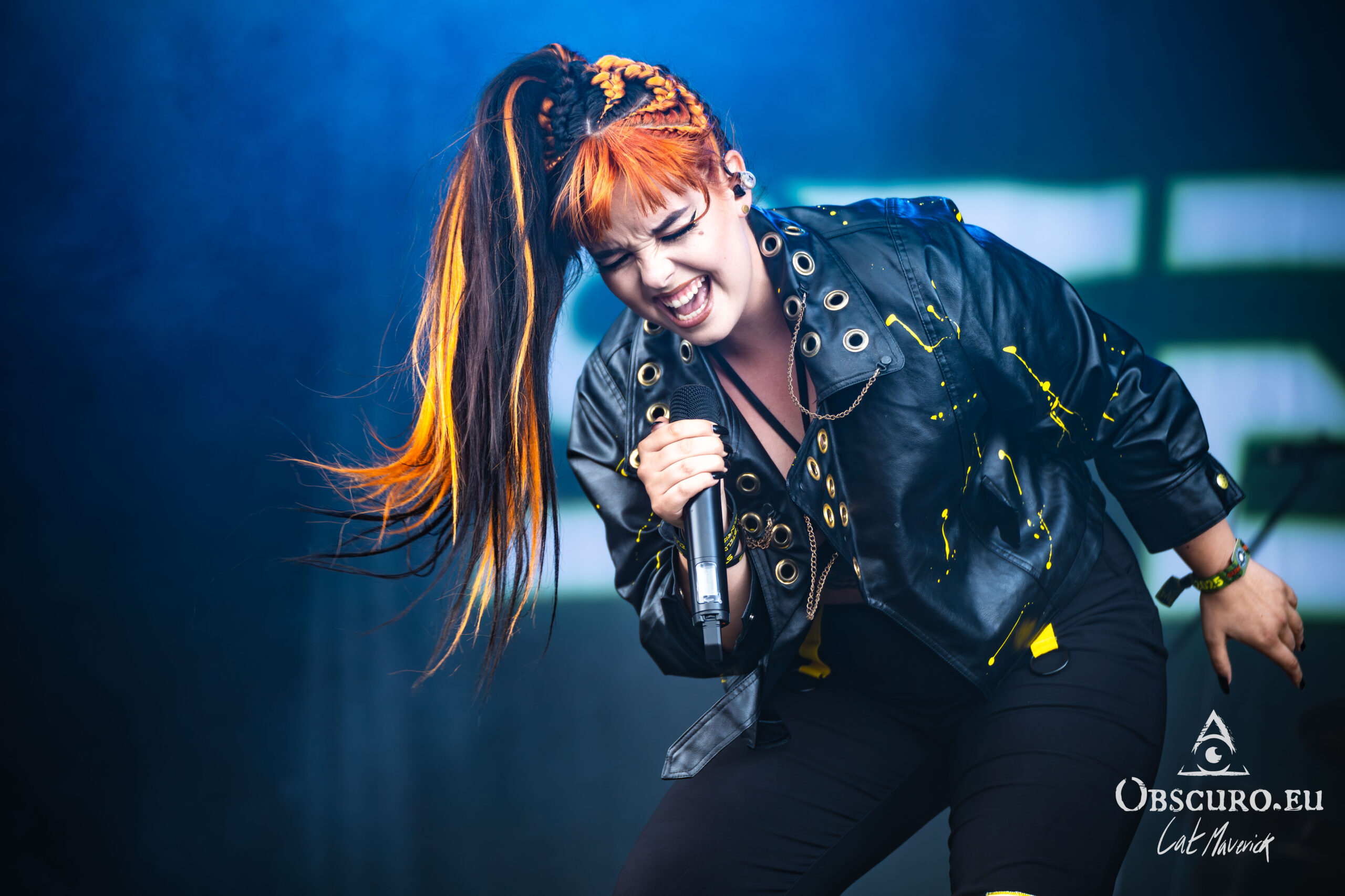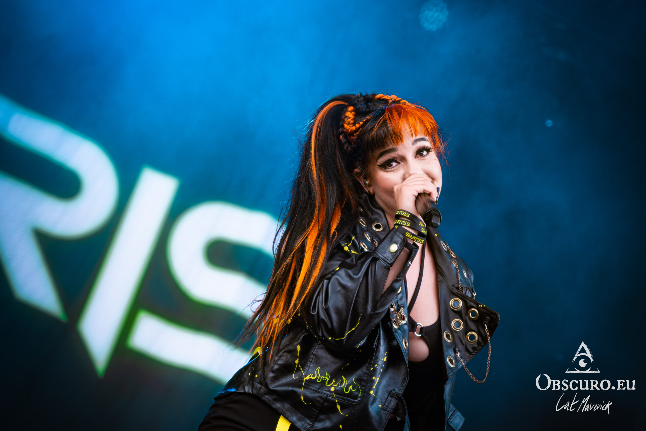 Next up is Stellvris, a band that radiates a fantastically positive energy from the moment they step on stage. Their black and yellow costumes, contrasting with the singer’s bright red hair, make for a striking visual. The frontwoman’s incredible crowd interaction is the highlight of the set. She excitedly jumps into a circle pit and commands a wall of death, creating an electric connection with the audience. The chemistry on stage is undeniable, and their powerful music, combined with their engaging performance, makes them a definite standout.