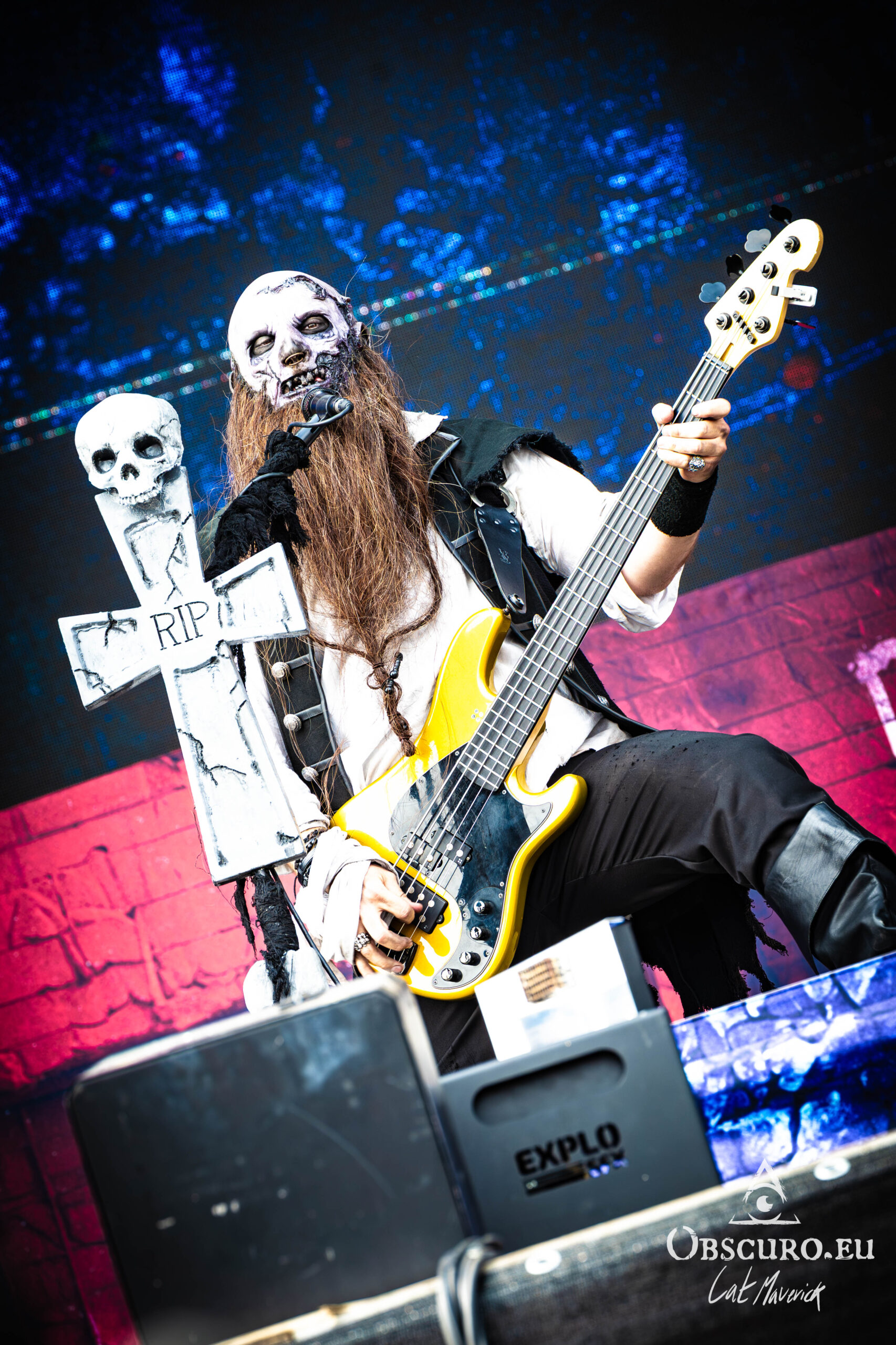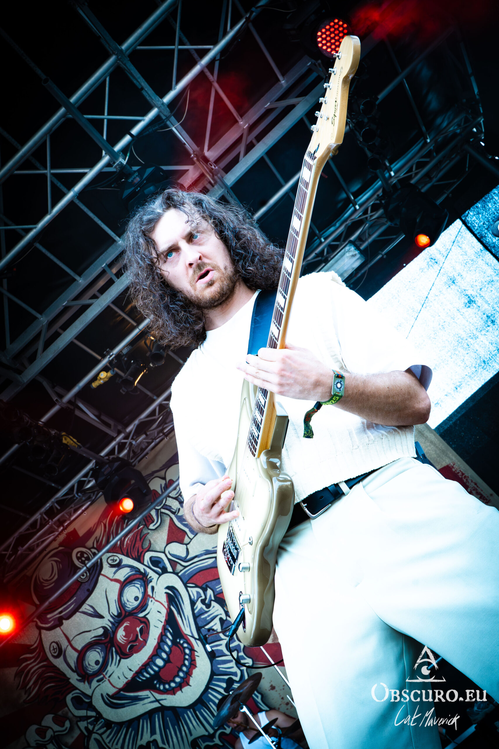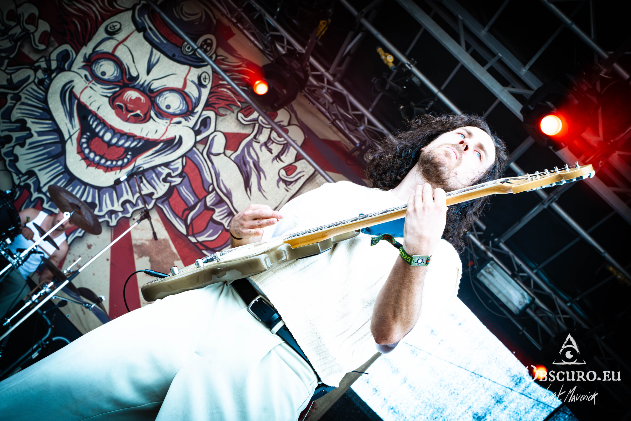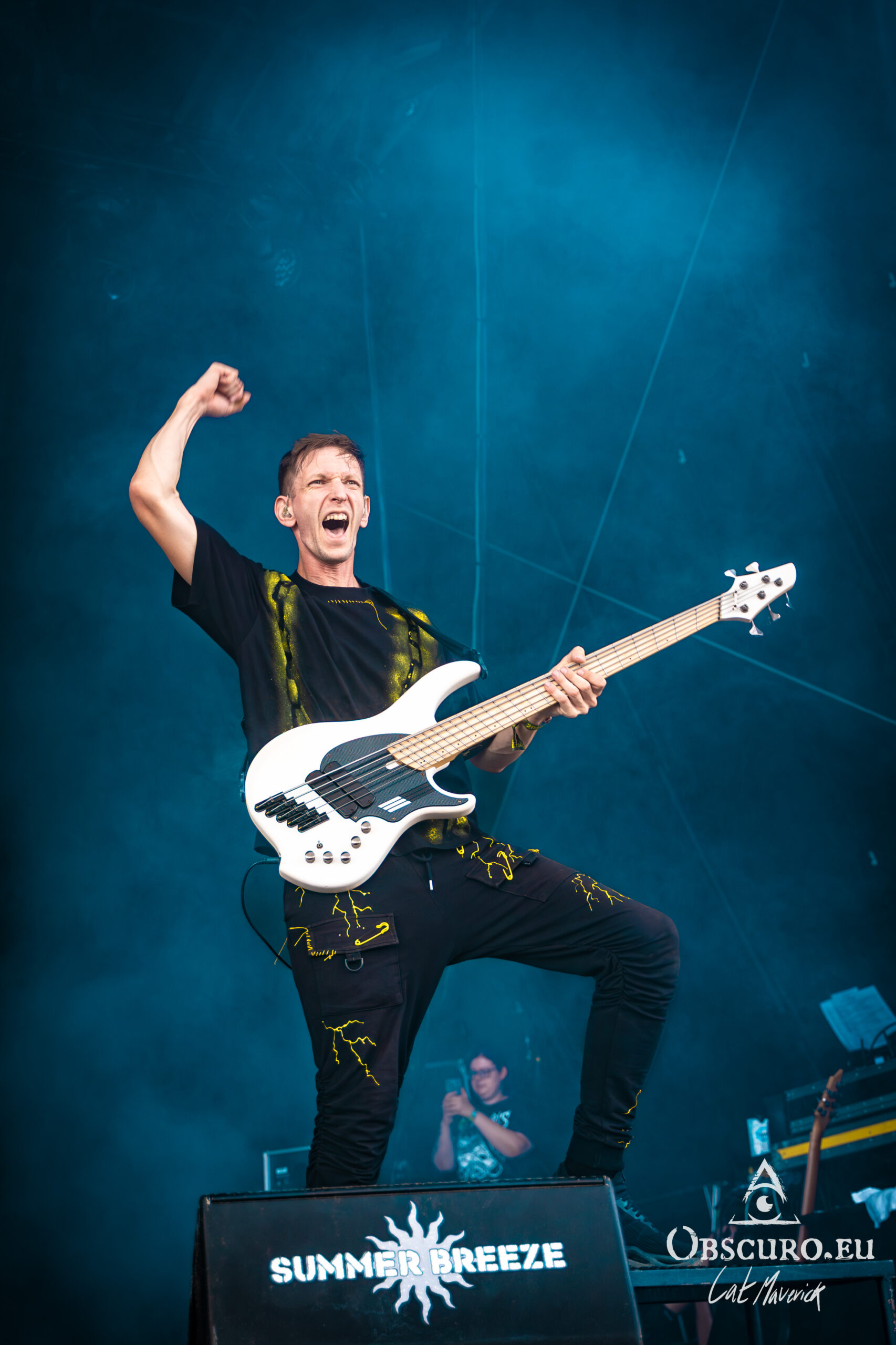 Next up is Stellvris, a band that radiates a fantastically positive energy from the moment they step on stage. Their black and yellow costumes, contrasting with the singer’s bright red hair, make for a striking visual. The frontwoman’s incredible crowd interaction is the highlight of the set. She excitedly jumps into a circle pit and commands a wall of death, creating an electric connection with the audience. The chemistry on stage is undeniable, and their powerful music, combined with their engaging performance, makes them a definite standout.