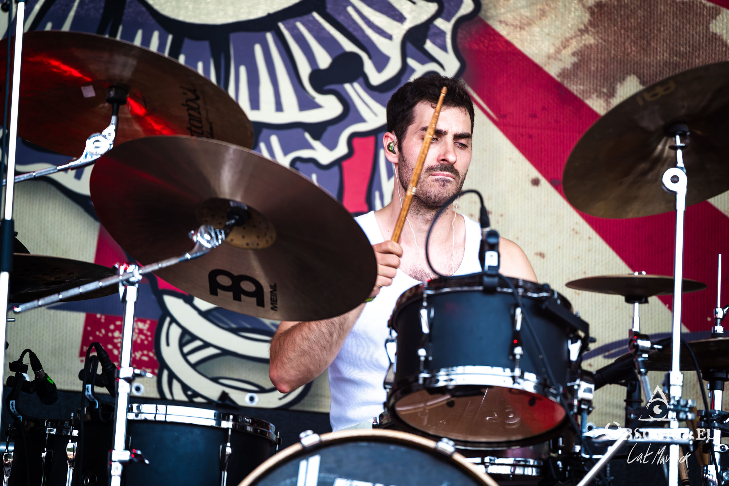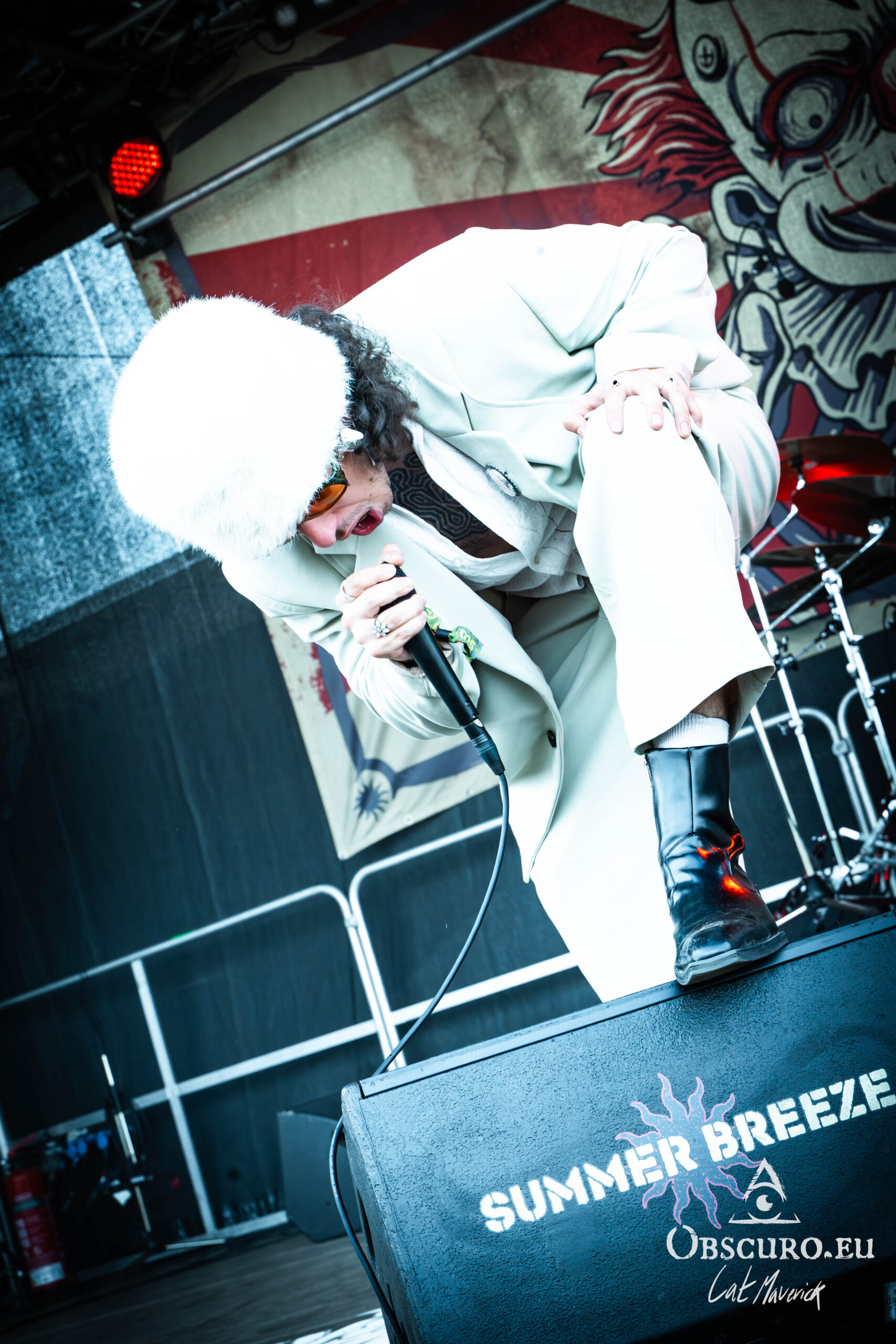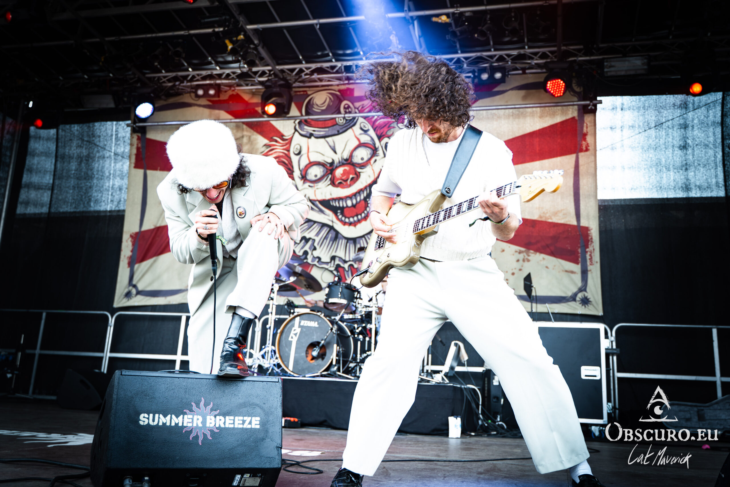 A true hidden gem of the day was Vianova, a rising star from Berlin with a unique and stylish look. Dressed in white with the singer wearing a fur cap, their retro aesthetic is both unique and captivating. The singer is a vocal powerhouse, capable of an insanely broad stylistic range with high precision and quality. But the same goes for the entire band’s musical landscape. One moment, they deliver the harshest deathcore, the next, they perform over groovy, danceable beats. Their genre-bending sound is a testament to their talent and is a band worth keeping an eye on.