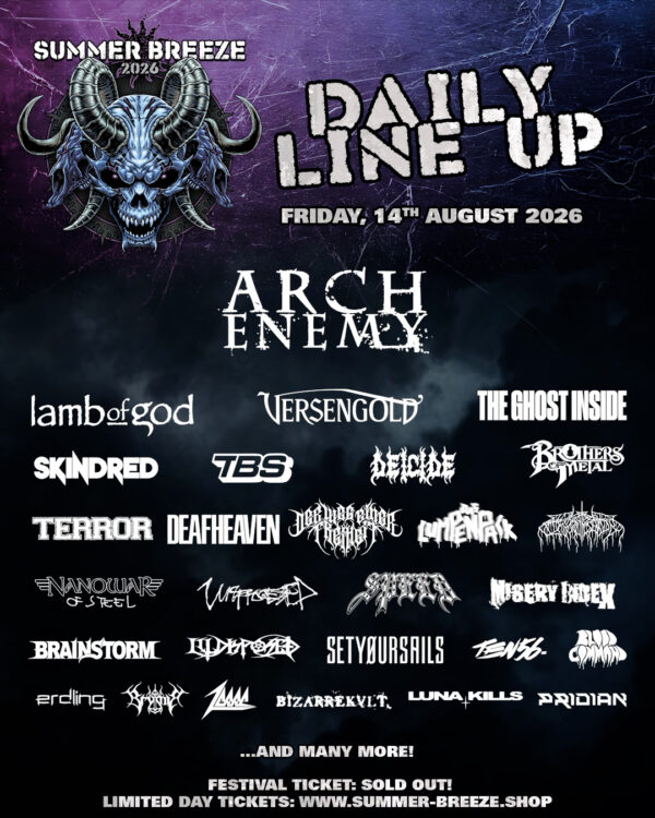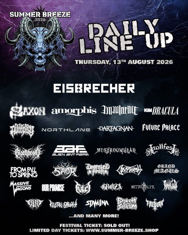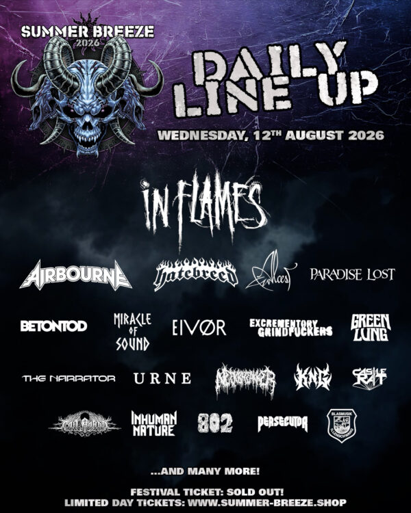 They say, all good things come in threes. And with the Summer Breeze Open Air 2026 sold out for the third consecutive year, great things are on the horizon from 12. – 15. August 2026. Its position as one of the reliably sold-out peaks in the European festival landscapes is cemented only few weeks after the latest band announcement. Fittingly, the most recently announced wave of bands adds another 33 names to an already stellar lineup: