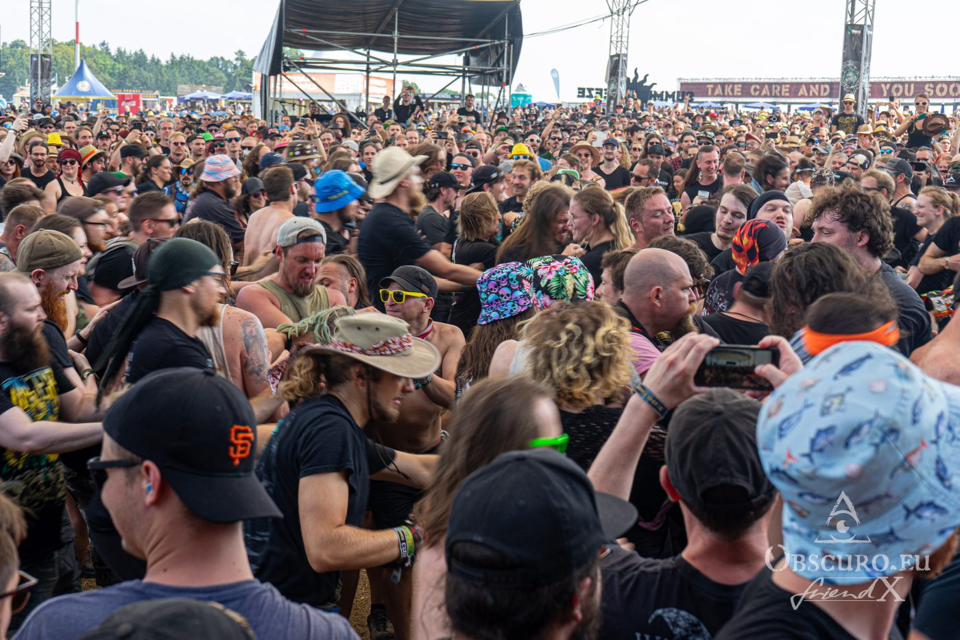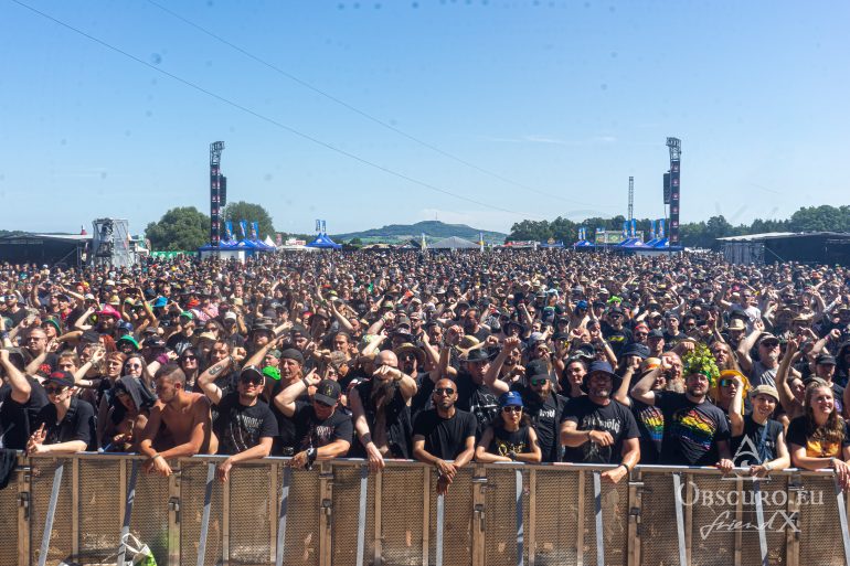 It was hot, hotter than hell, with very little rain. The air was so humid you could barely breathe. Still better than cold, rain, thunderstormsand interruptions as at Metalacker only one week later. While the weather cannot be helped, the infrastructure at the festival needs improvement. There is an urgent need for more shade on the infield at the very least. The two tiny beer gardens are too small and not enough for 50,000 spectators. Several taps for drinking water have to be set up and highlighted on the infield, the number on the camps need to be in reasonable proportion to the number of users. The hygienic situation with the toilets and water stations was okay, but there were too many queues as their number was too small. The showers should stay open until the campsite closes at 14:00 on Sunday. It is no fun to drive home in your own car or on public transport soaked in sweat after dismantling the campsite. Both topics discussed here are not luxury but in the responsibility of the Breeze organisers as much as the local authorities as they concern public health matters.