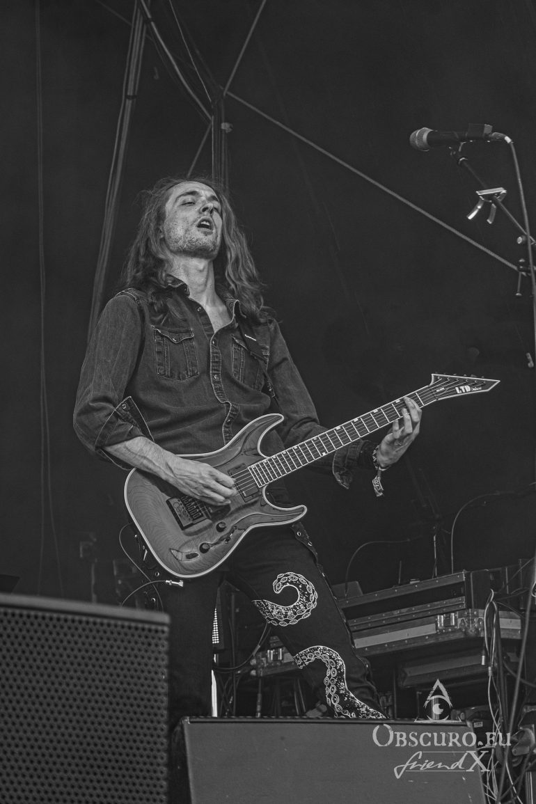 Around midday on Friday, we made our way to the main stage. It was time for Skálmölð, the Viking bards from Iceland. Unfortunately, some technical problems during their sound checkresulted in their setlist shortened by one song. Nevertheless, Skálmölð presented not only songs from their past albums, but also songs from their brand new release “Ydalir”. Brand new is literal as it was the release day and thus their release show at SBOA [read our review of Ydalir here]. The music was very tight, very intellectual and very challenging. The lyrics are in Icelandic though we never missed English hard. It was a great show by six great musicians with a great audience, many more people than the band expected this early the day! Skálmölð will be headlining in October, stay tuned for the full show and for our interview with guitarist Þráinn Árni Baldvinsson.