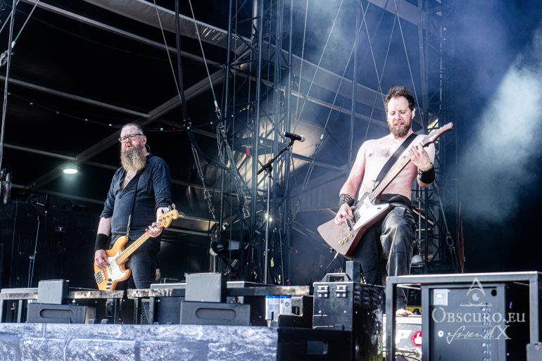 After a short break, we returned to the battlefield to see Mono Inc. A lot of bands just play their ’usual festival set‘ over the festival season without any changes. Surprisingly, Mono Inc. did not. Their show differed from their gig at the Rockharz Festival in some small and big details. One of the obvious differences was the presence of Storm Seeker during some songs. They are friends and whenever the opportunity arises…