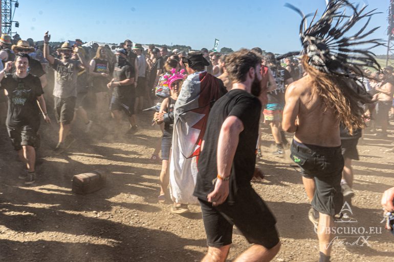 SBOA infield consists of three stages, the Ficken Stage as the fourth one is outside and surrounded by the campsite, while the slightly larger Wera-Tool Stage is placed right after the infield entrance on the T-Square. This is the only area with shade due to the roof over the spectator area. These two are the smaller stages for newcomers and smaller bands. The medium sized T-Stage is located about 200m to the left of the Wera-Tool-Stage. Bands would play either one or the other without overlap. Main Stage, located on the so called Battlefield is unsurprisingly the largest stage. In pre-Corona years, it used to be a turntable stage so that there were only a few minutes break between bands. Back in the day, the Battlefield hosted two stages, Pain and Main, with an even shorter break. But it seems that these days are over and the waiting time can be half an hour or more. In general, there is an alternative of longer breaks so basic needs can be taken care without missing the shows at least in parts which on the other hand’s side means: longer schedule or fewer bands. Tricky thing to balance that.