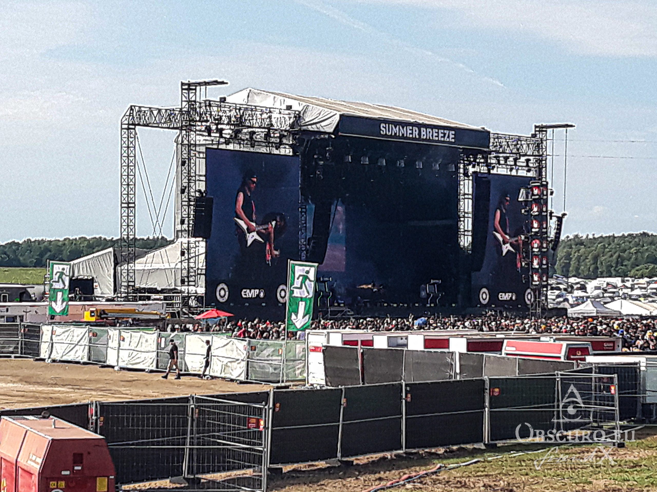 It was hot, hotter than hell, with very little rain. The air was so humid you could barely breathe. Still better than cold, rain, thunderstormsand interruptions as at Metalacker only one week later. While the weather cannot be helped, the infrastructure at the festival needs improvement. There is an urgent need for more shade on the infield at the very least. The two tiny beer gardens are too small and not enough for 50,000 spectators. Several taps for drinking water have to be set up and highlighted on the infield, the number on the camps need to be in reasonable proportion to the number of users. The hygienic situation with the toilets and water stations was okay, but there were too many queues as their number was too small. The showers should stay open until the campsite closes at 14:00 on Sunday. It is no fun to drive home in your own car or on public transport soaked in sweat after dismantling the campsite. Both topics discussed here are not luxury but in the responsibility of the Breeze organisers as much as the local authorities as they concern public health matters.