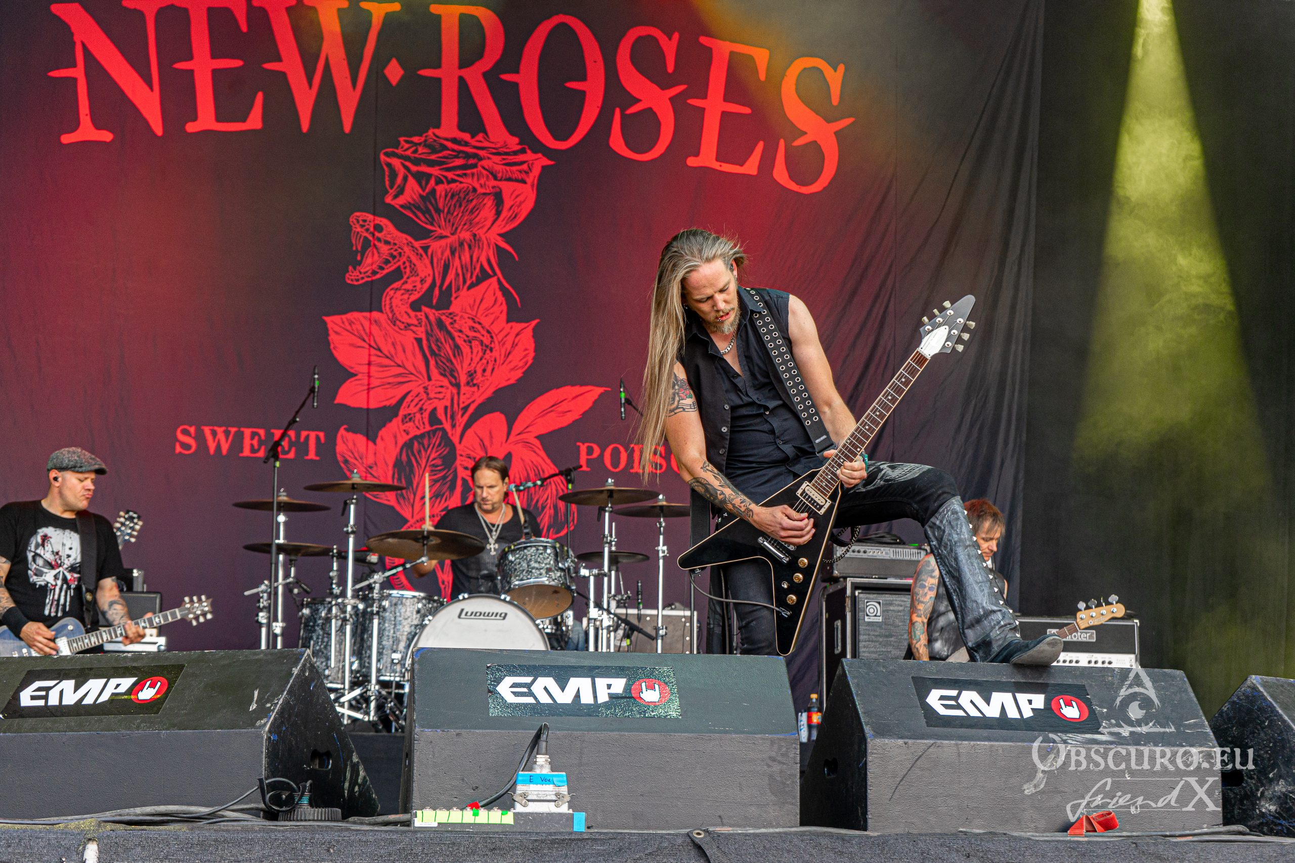 The New Roses were the band we saw on the T Stage. Comment by Friend.X: “They are my local band, coming from the same town and region as me. So whenever they play at a festival it is a must-see for me. The last time I saw them was at their home gig in Wiesbaden.” The New Roses stand for pure Rock ‘n’ Roll, no big intro, no special effects, but five musicians getting on stage and playing their music. No time wasted on endless speeches, a pure firework of one song after another. With Norman Bites back on guitar, Timmy Rough can concentrate much more on his role as front man. It was a bit strange to see him without his Les Paul, though he was very convincing. Only, we wish there were more bands with their attitude!