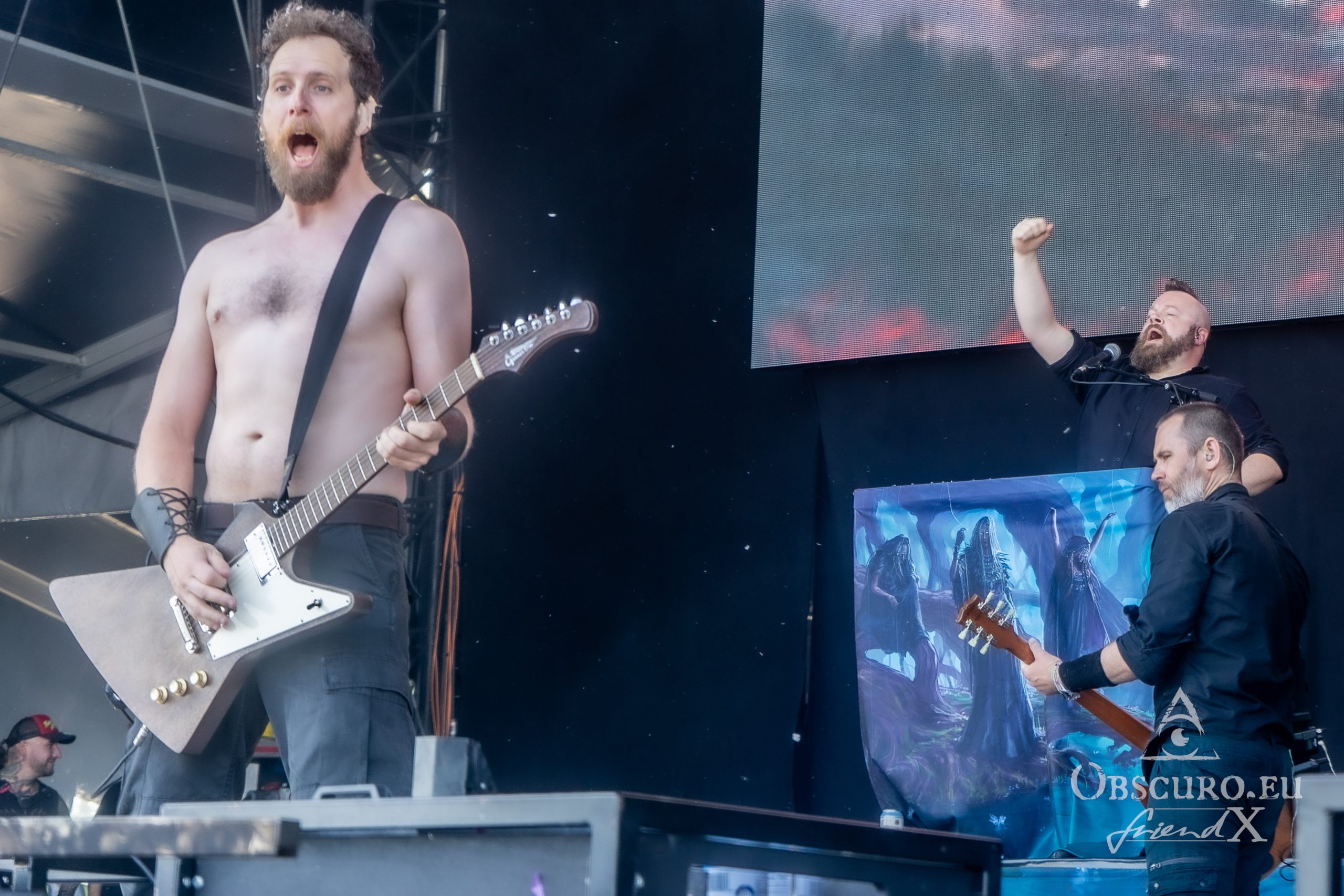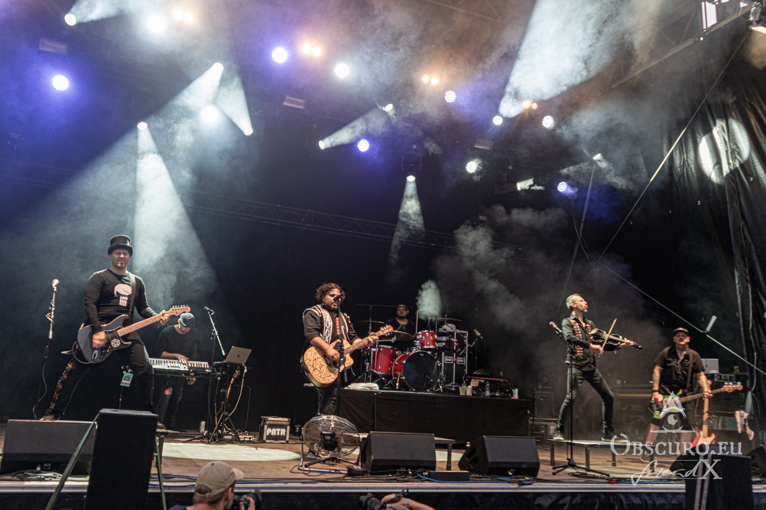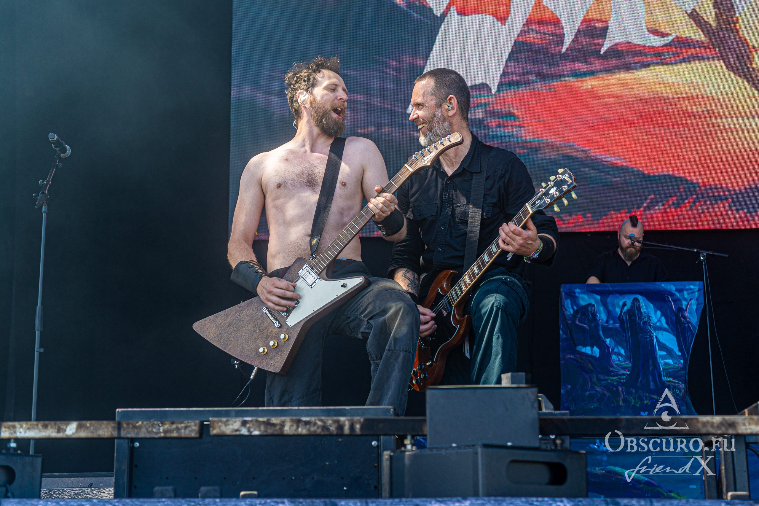 Around midday on Friday, we made our way to the main stage. It was time for Skálmölð, the Viking bards from Iceland. Unfortunately, some technical problems during their sound checkresulted in their setlist shortened by one song. Nevertheless, Skálmölð presented not only songs from their past albums, but also songs from their brand new release “Ydalir”. Brand new is literal as it was the release day and thus their release show at SBOA [read our review of Ydalir here]. The music was very tight, very intellectual and very challenging. The lyrics are in Icelandic though we never missed English hard. It was a great show by six great musicians with a great audience, many more people than the band expected this early the day! Skálmölð will be headlining in October, stay tuned for the full show and for our interview with guitarist Þráinn Árni Baldvinsson.
