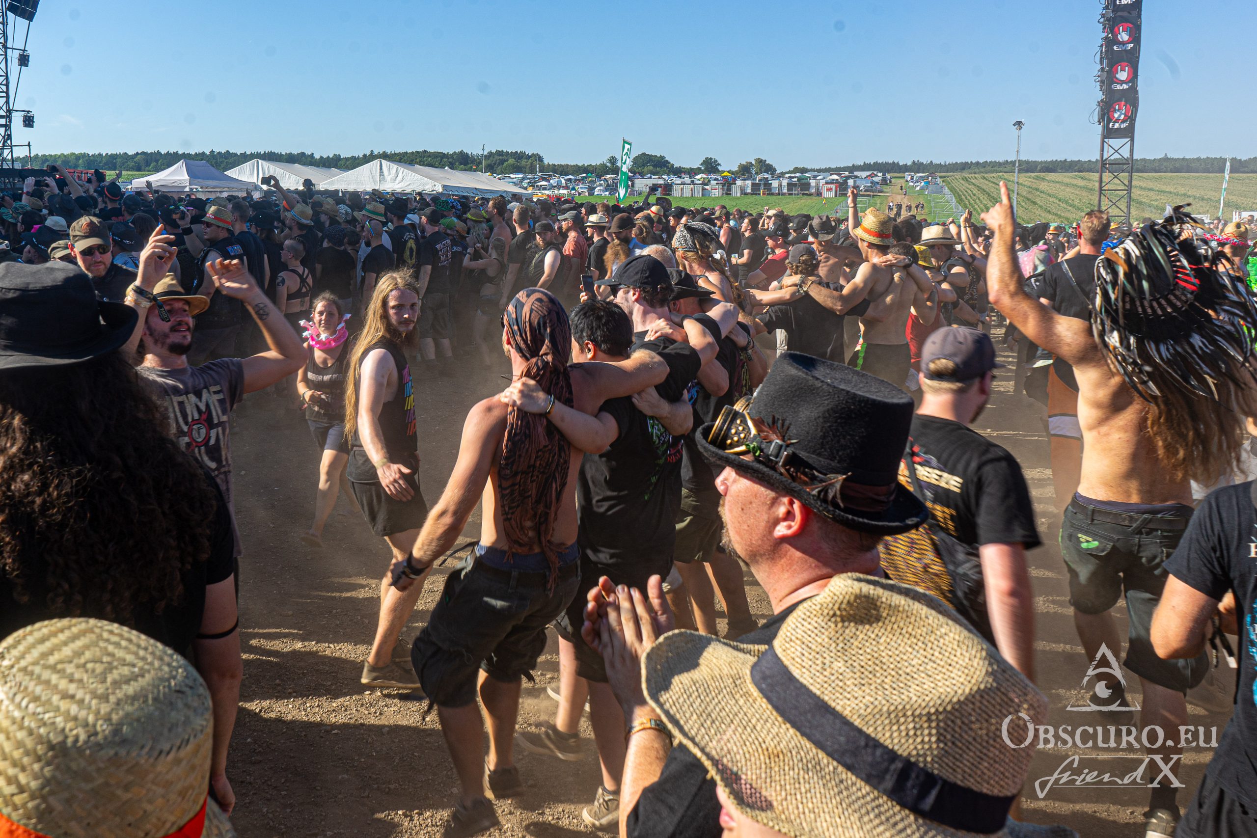 SBOA infield consists of three stages, the Ficken Stage as the fourth one is outside and surrounded by the campsite, while the slightly larger Wera-Tool Stage is placed right after the infield entrance on the T-Square. This is the only area with shade due to the roof over the spectator area. These two are the smaller stages for newcomers and smaller bands. The medium sized T-Stage is located about 200m to the left of the Wera-Tool-Stage. Bands would play either one or the other without overlap. Main Stage, located on the so called Battlefield is unsurprisingly the largest stage. In pre-Corona years, it used to be a turntable stage so that there were only a few minutes break between bands. Back in the day, the Battlefield hosted two stages, Pain and Main, with an even shorter break. But it seems that these days are over and the waiting time can be half an hour or more. In general, there is an alternative of longer breaks so basic needs can be taken care without missing the shows at least in parts which on the other hand’s side means: longer schedule or fewer bands. Tricky thing to balance that.