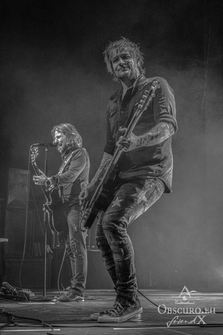 Soon it is time to dim the hall light, tonight’s support Losing Gravity enter the stage. They are “half local” from Frankfurt and Texas, at least their vocalist and guitarist Chase Wilborn. It is their second tour with The New Roses and their attitude and music fit like a glove. The other members are Florian Hain on lead-guitar, Lucas Urner on keyboards, Lars Palenzatis on bass and the newbie Max Friedrich on drums.