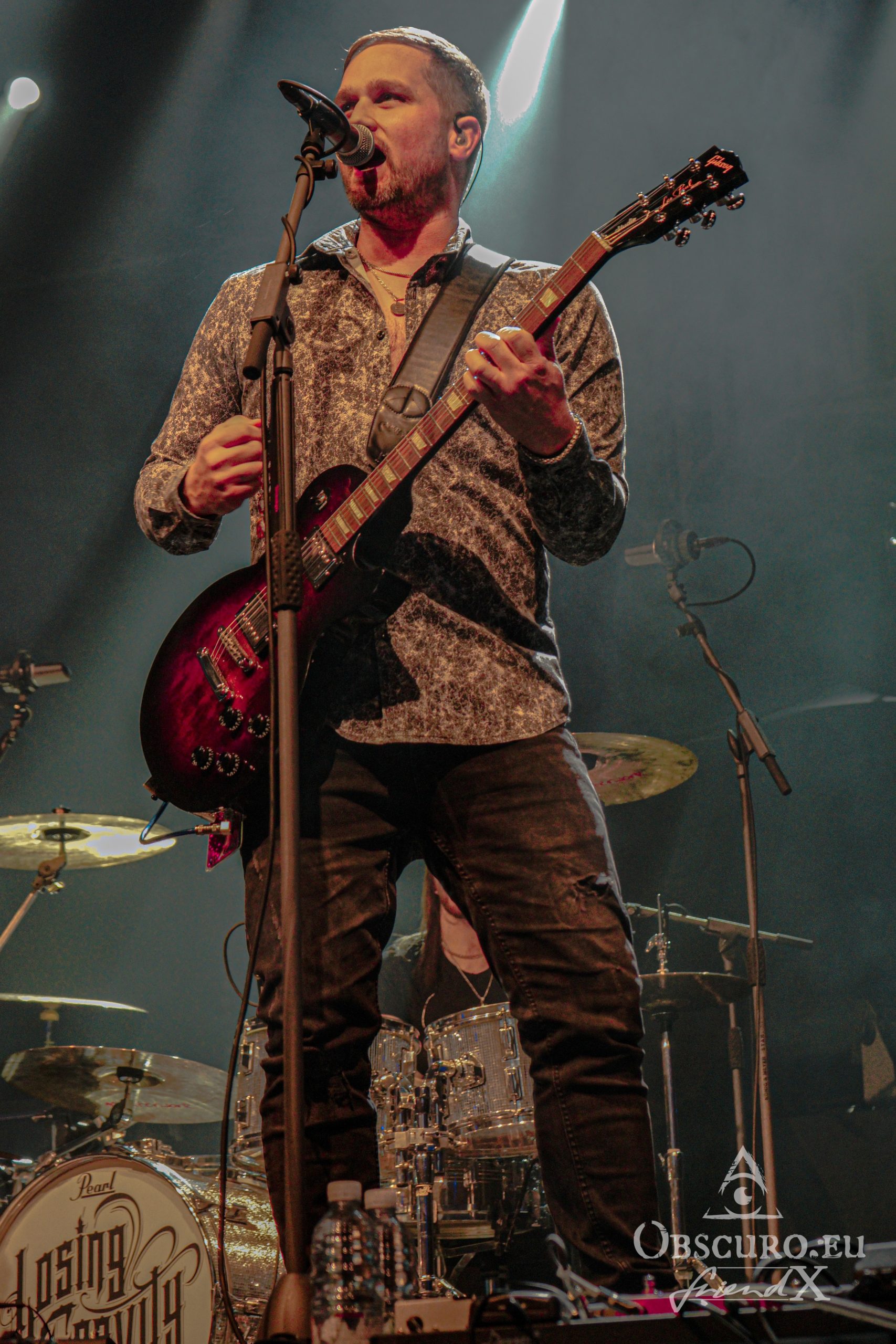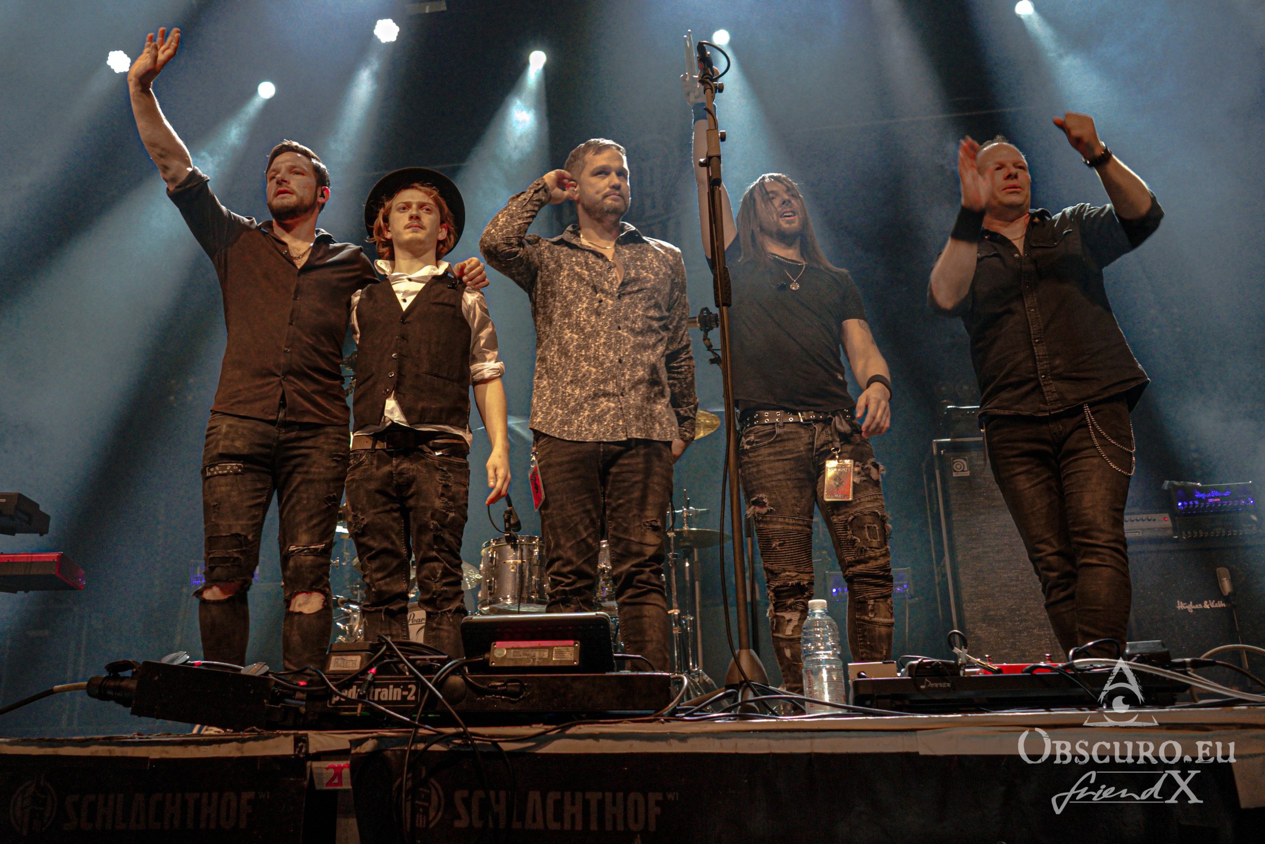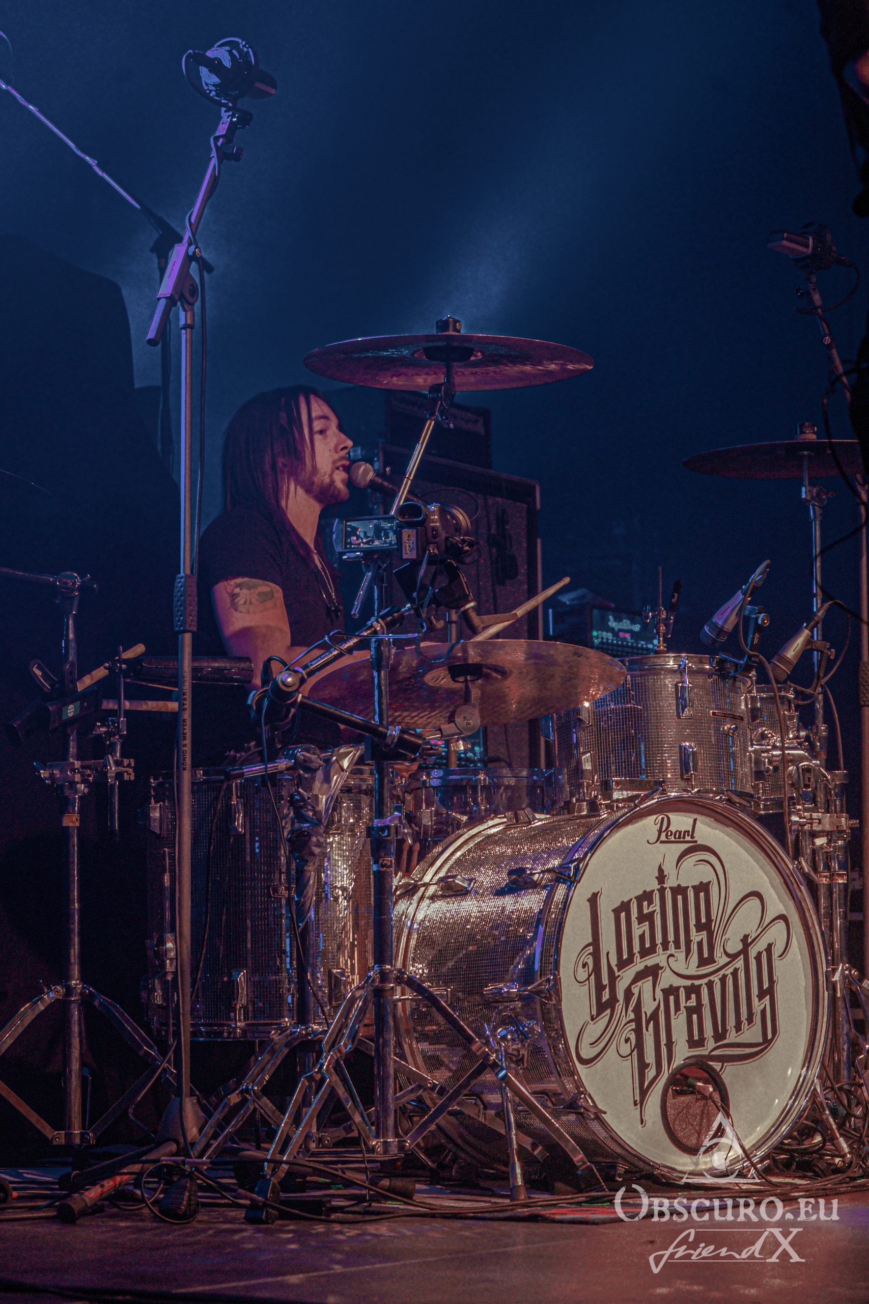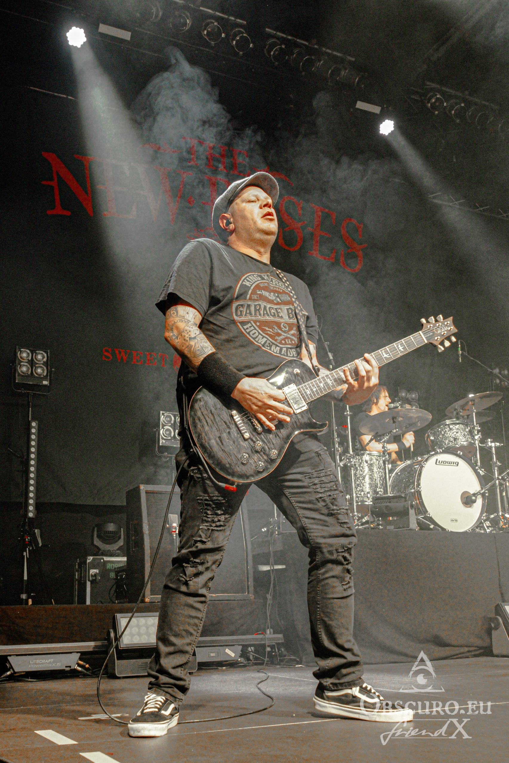 Soon it is time to dim the hall light, tonight’s support Losing Gravity enter the stage. They are “half local” from Frankfurt and Texas, at least their vocalist and guitarist Chase Wilborn. It is their second tour with The New Roses and their attitude and music fit like a glove. The other members are Florian Hain on lead-guitar, Lucas Urner on keyboards, Lars Palenzatis on bass and the newbie Max Friedrich on drums.