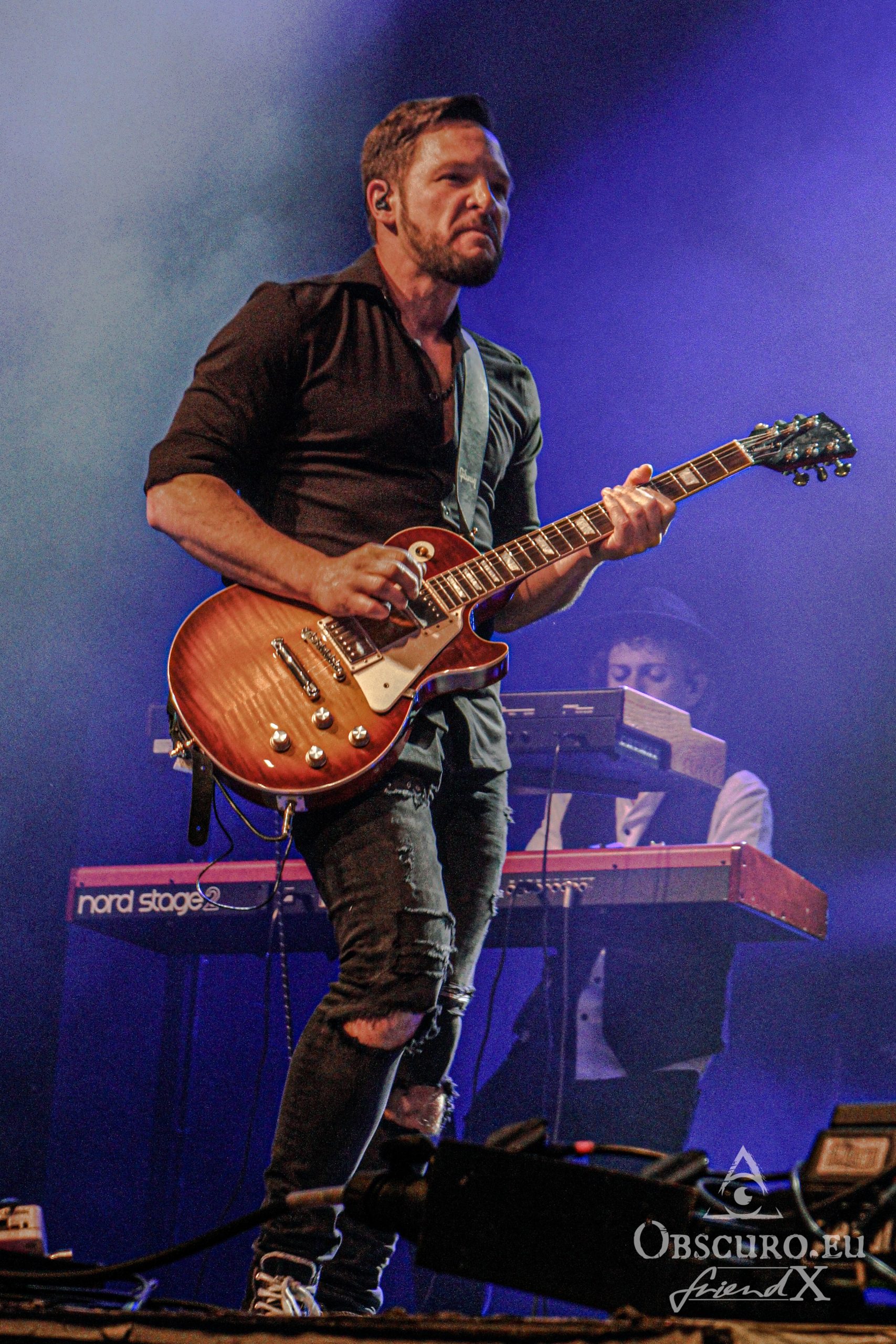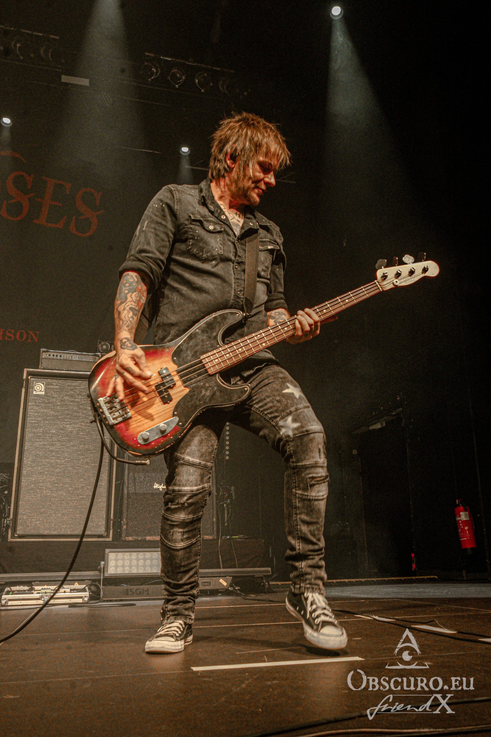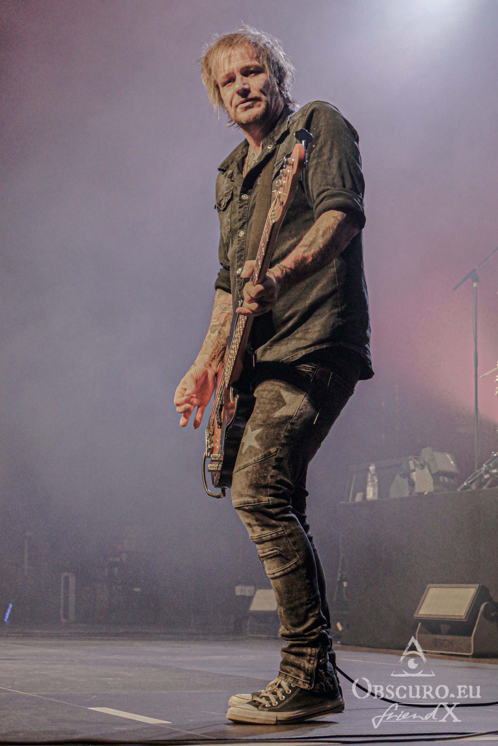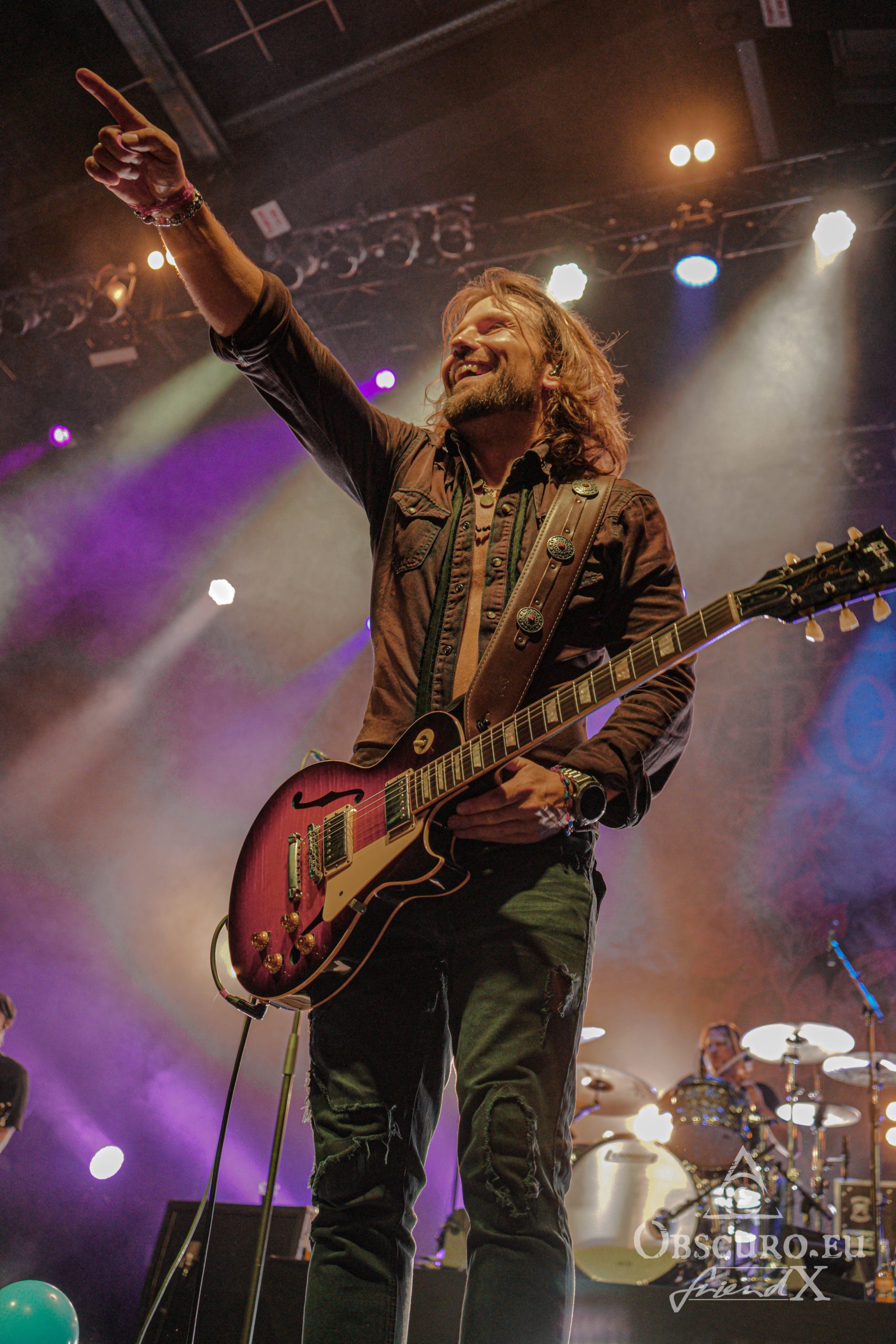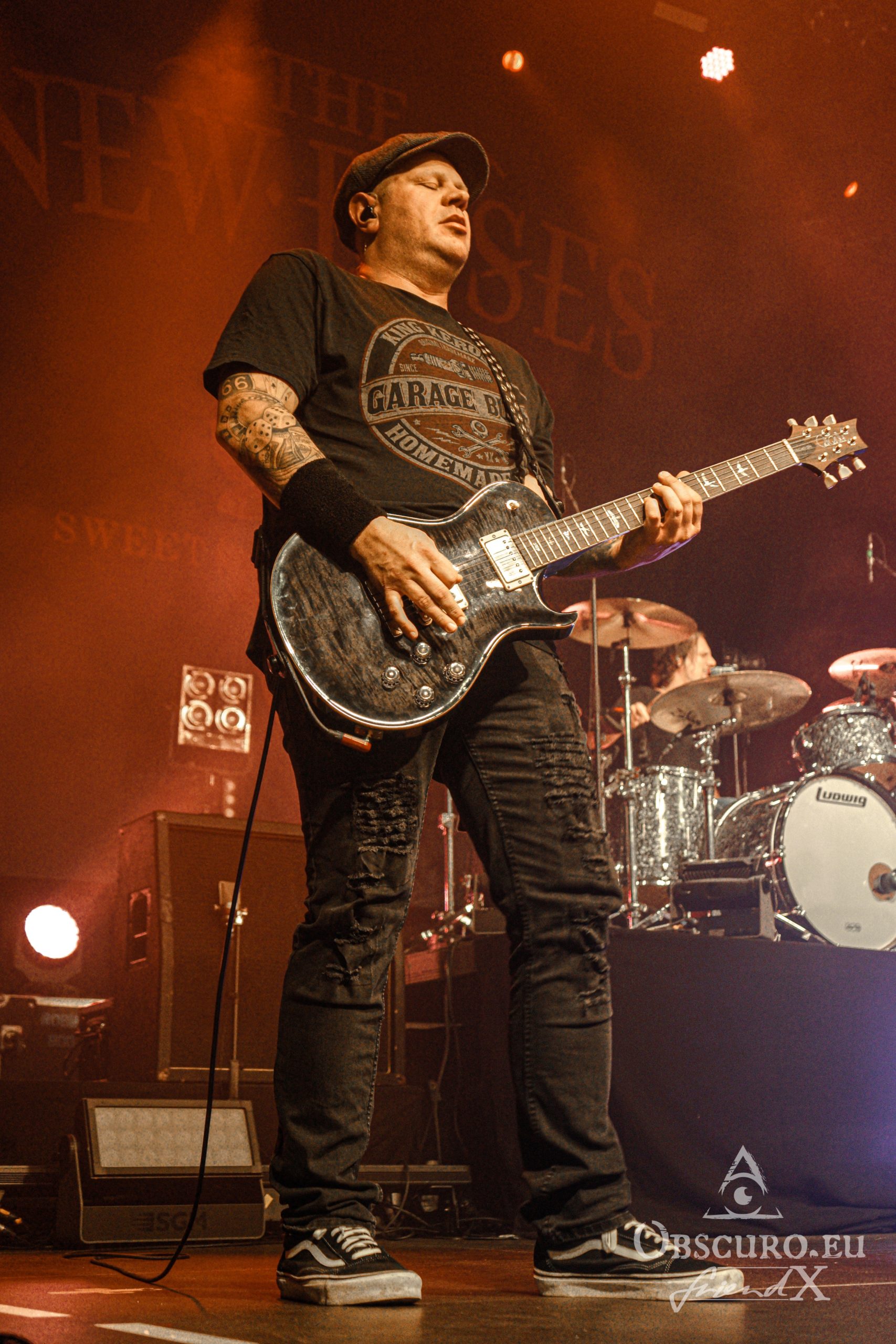 Soon it is time to dim the hall light, tonight’s support Losing Gravity enter the stage. They are “half local” from Frankfurt and Texas, at least their vocalist and guitarist Chase Wilborn. It is their second tour with The New Roses and their attitude and music fit like a glove. The other members are Florian Hain on lead-guitar, Lucas Urner on keyboards, Lars Palenzatis on bass and the newbie Max Friedrich on drums.