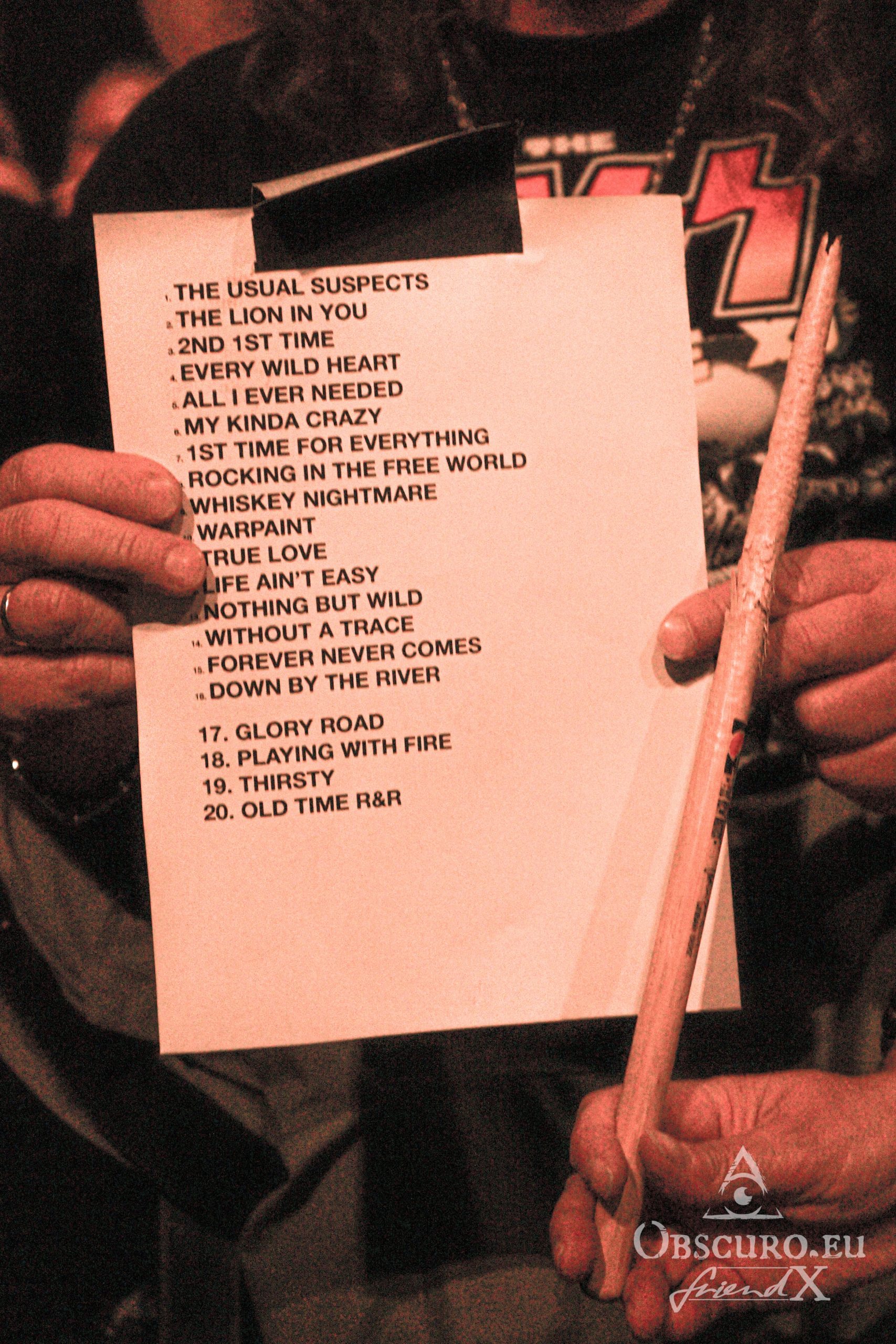 We all know the band will come back, the band knows we will shout for more, that’s the usual and traditional ritual before the encore. So here they are, back on a “Glory Road”. And they are back “Playing With Fire” until the flames get higher, don’t worry, no pyros were used during the show. But flames are hot and the hotter it gets, the more “Thirsty” you become, I might need a beverage after show, so will many of the audience too. “Old Time Rock and Roll” in its extended sing-along version finally closes the set. The New Roses promise to share a pint with everybody who wants at the merch stall afterwards but first they have a ton of gifts in form of dozens of plectrums and drumsticks which they throw into the crowd. Some lucky guys even catch one of the set lists!