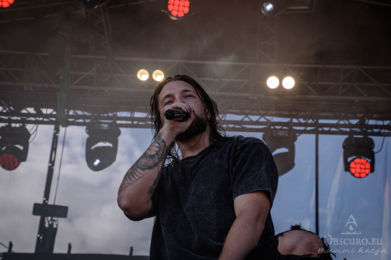 The Honkala ski stadium is the o n e place where the entire Dark River Festival community gathers. It is located some kilometres north of Kotka in the woods and fields, which is a significant feature of the event. The venue provides most of the space, but apart from that only few basic infrastructure – at least not in scales as required for a three-day metal festival with several thousand visitors. Iida explains: “Well, we’re in the middle of a forest, it makes it a bit hard sometimes, like when you have to bring stuff here. And as you can see the backstage floor is like,… yeah, it’s not like easy environment but it’s not something that can be really changed. So yeah, I really wouldn’t change anything.“
