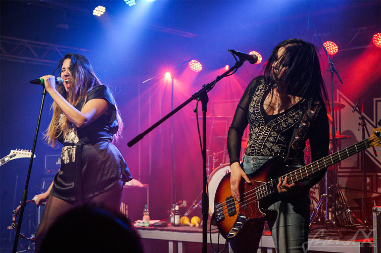The venue refills again and soon history of the evening repeats itself, fog, flashing lights, ready for…? Ready foooor? Ready for some Swedish music! No, we are not talking about Abba, we are talking about Thundermother!!! It is a band which suffered a lot from changing musicians in 2017 when four members left, the only constant member is guitar wizard Filippa Nässil. Thundermother are completed by Guernica Mancini on vocals who fully recovered from cancer, Mona „Demona“ Lindgren on bass guitar and the mighty Emlee Johansson on single bass drums. With this line-up Thundermother are more steady and heavier than ever before.