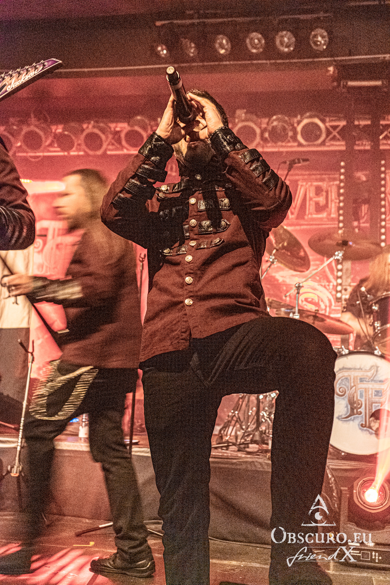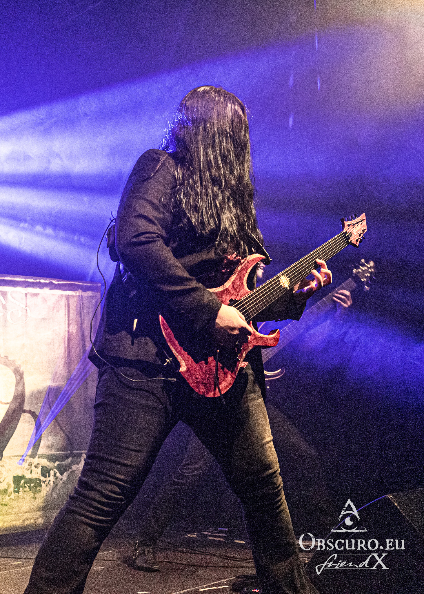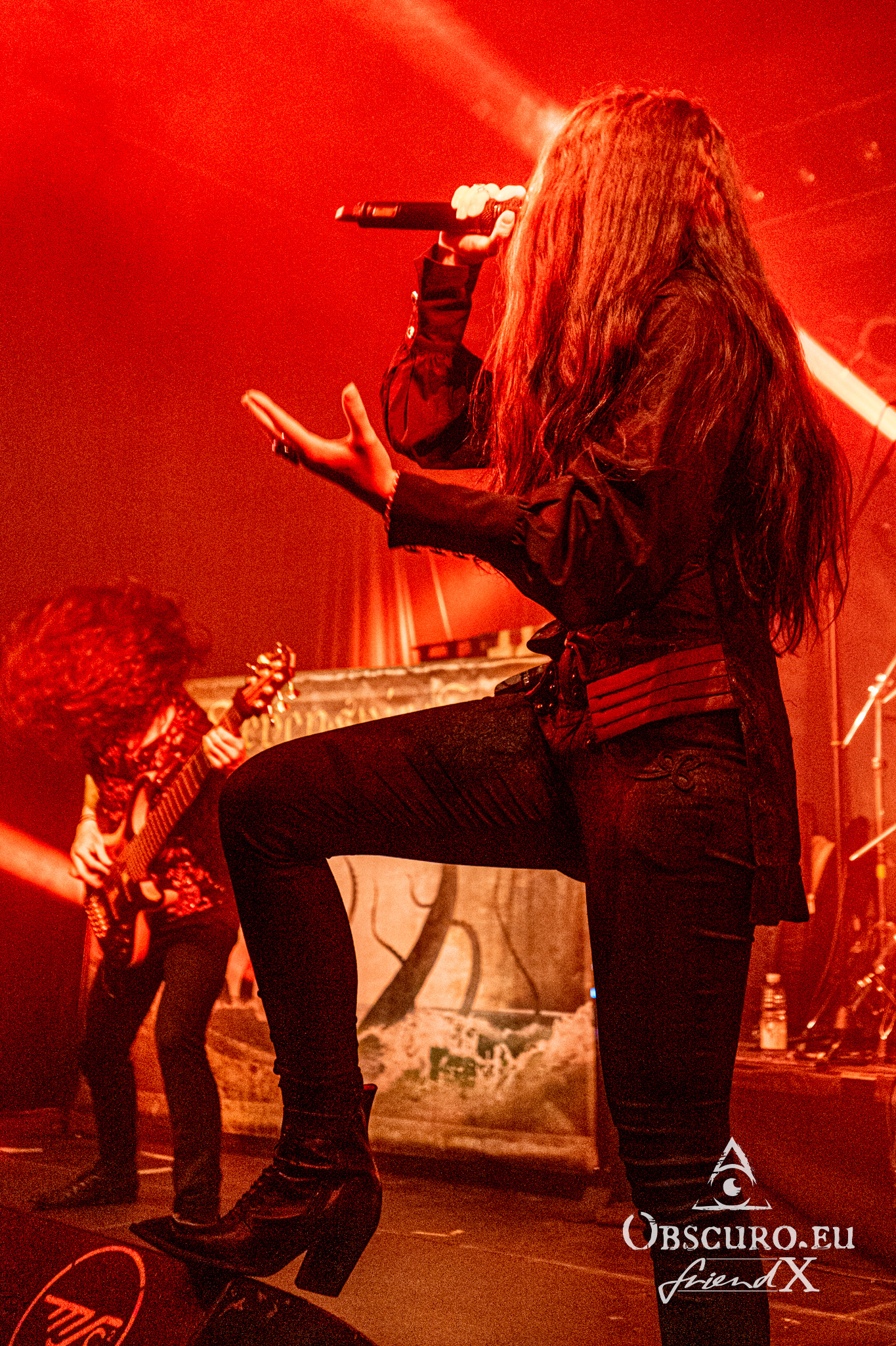 Twilight Force only released their brand new album “At the heart of Wintervale” on January 20th and of course they present it on this tour. The six Swedes are Alessandro Conti „Allyon“ – vocals, Philip Lindh „Lynd“ – lead guitar, Jocke Leandro Johansson „Aerendir“ – rhythm guitar, Dunder Björn Lundqvist „Born“ – bass, Daniel Beckman „Blackwald“ – keyboards and Isak Olsson „De’Azsh“ – drums. They are accompanied by guest musician Christine as background and female vocalist. Her outfit reminds me of Maleficent or Lindsay Schoolcraft during her Cradle Of Filth days.