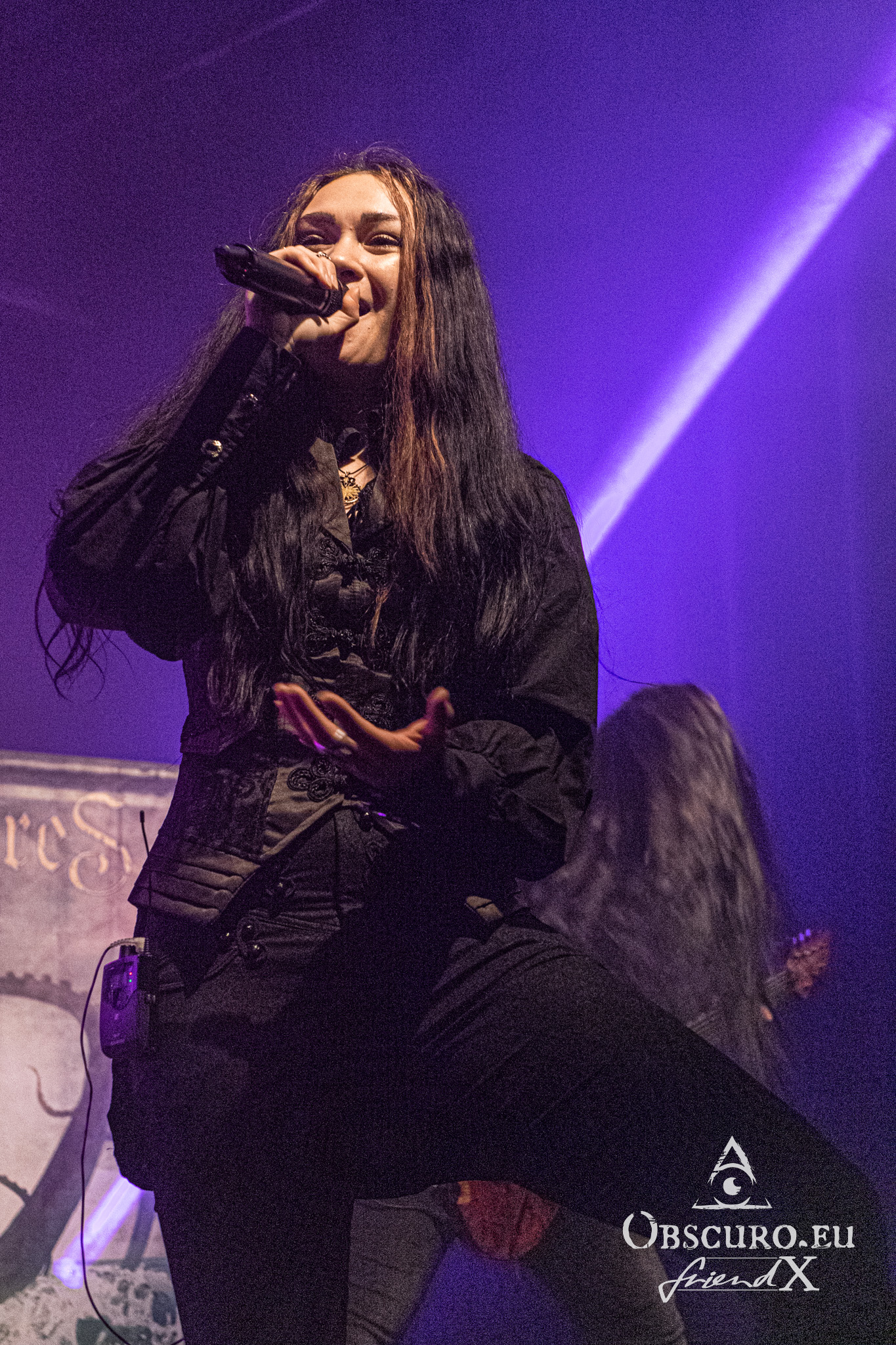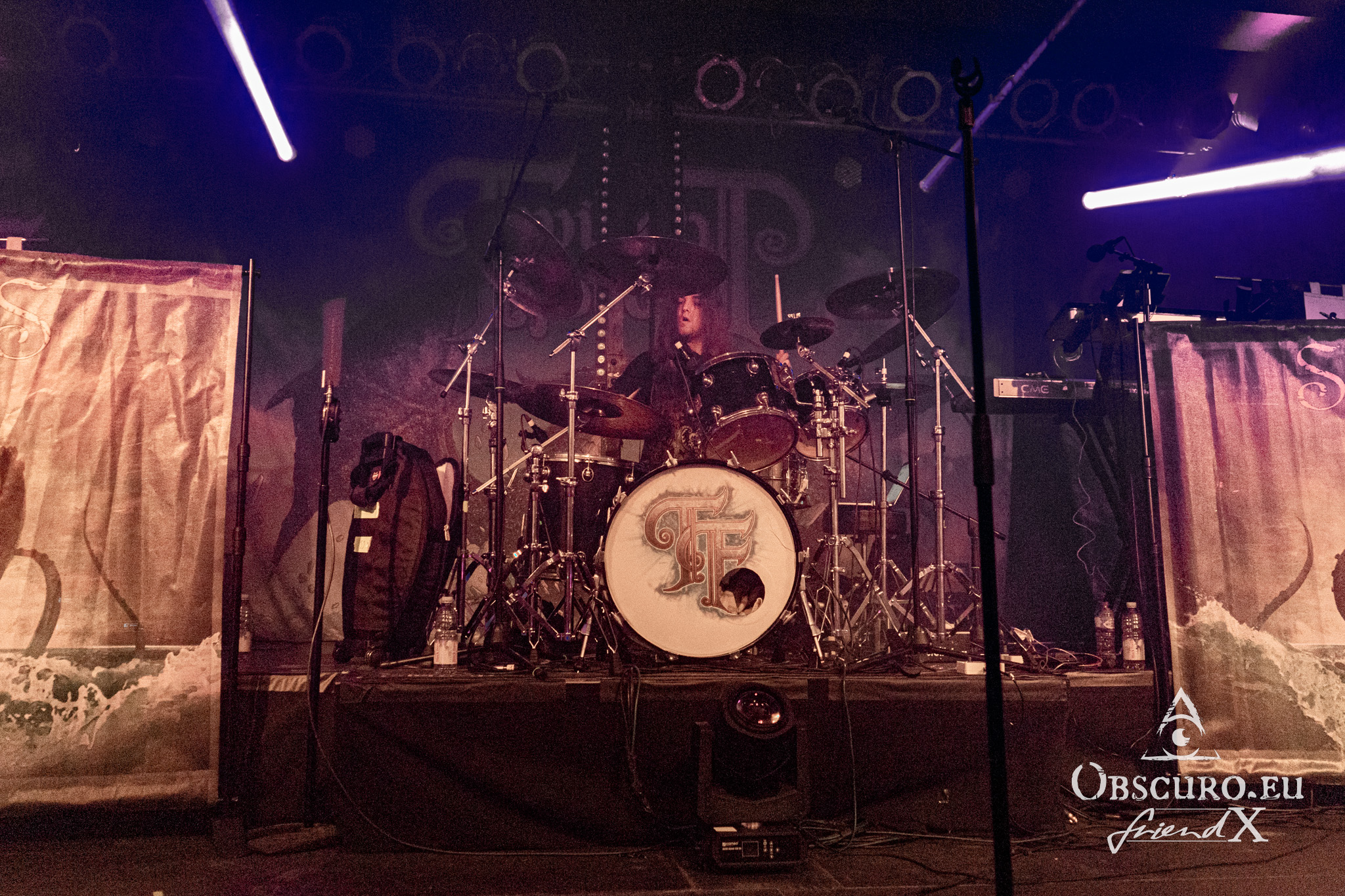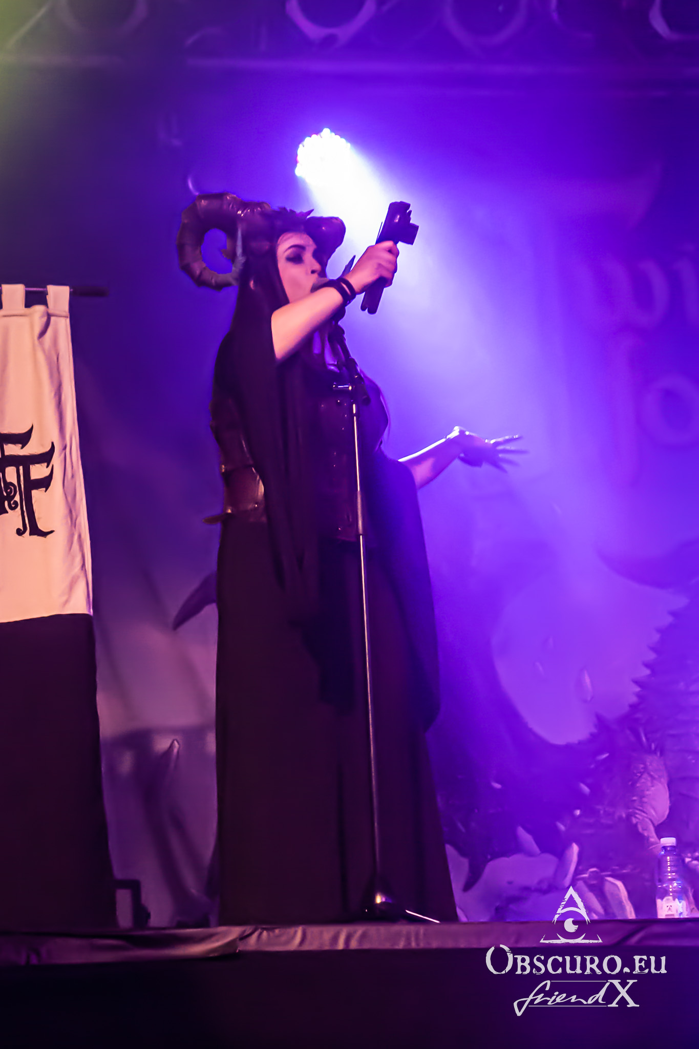 In between we see a rubber dragon flying around, it keeps the audience busy for one or two songs until it returns to the cave behind the stage. There is a chosen one from the audience, she is knighted live on stage by Allyon and receives her certificate under her tears of happiness. The jokes made by Blackwald are priceless. He looks and acts like a crazy wizard behind his keyboards.