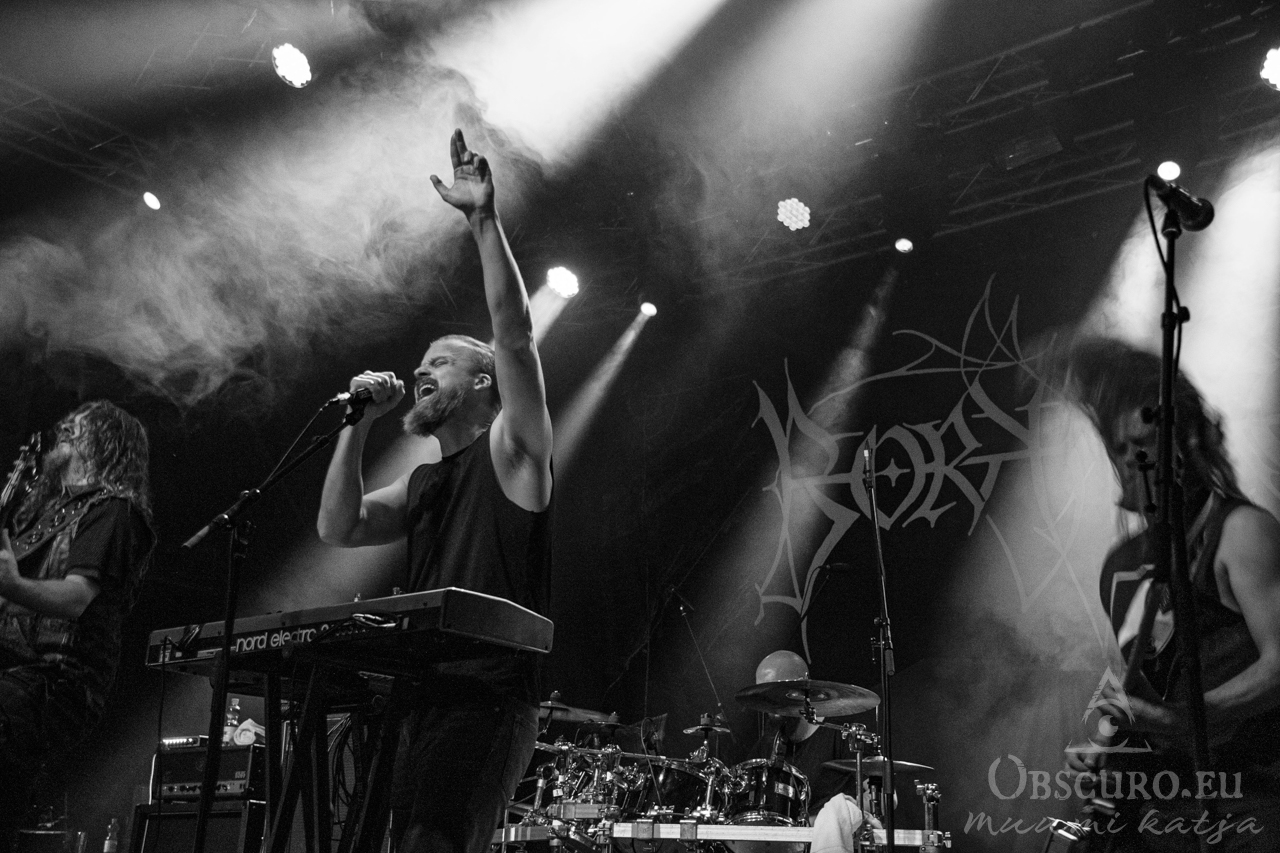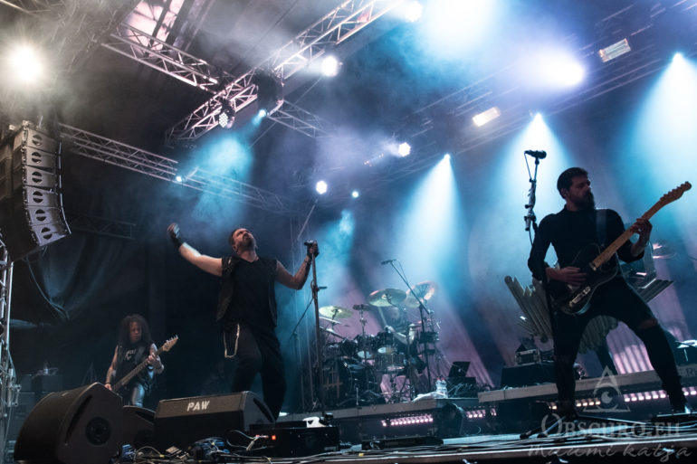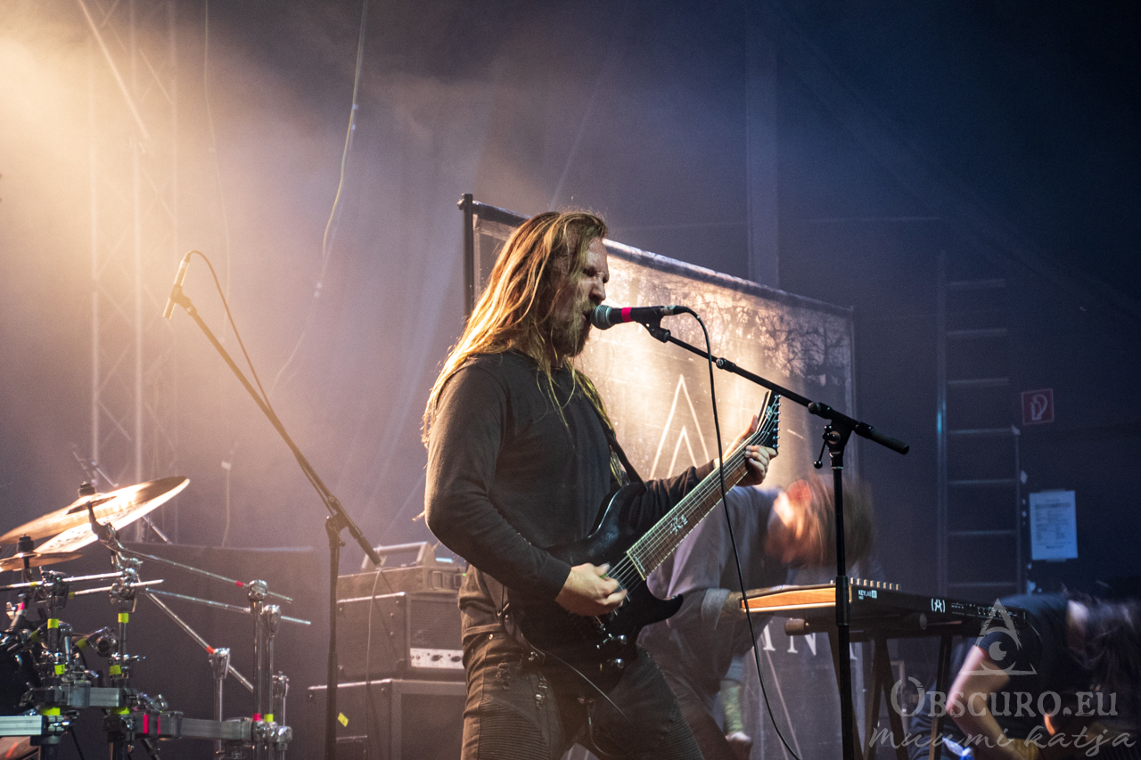 As Hinayana kick off to deliver their atmospheric yet too short set, the sun still shines outside. When little later Wolfheart take over, the numbers rise. The wolves face some sound and light difficulties right in the middle of their set and take this most professionally. With Borknagar the numbers rise again and some traces of enthusiasm among the crowd cannot be denied anymore. Insomnium then play a set of roughly one hour, as do Moonspell as the final act tonight.