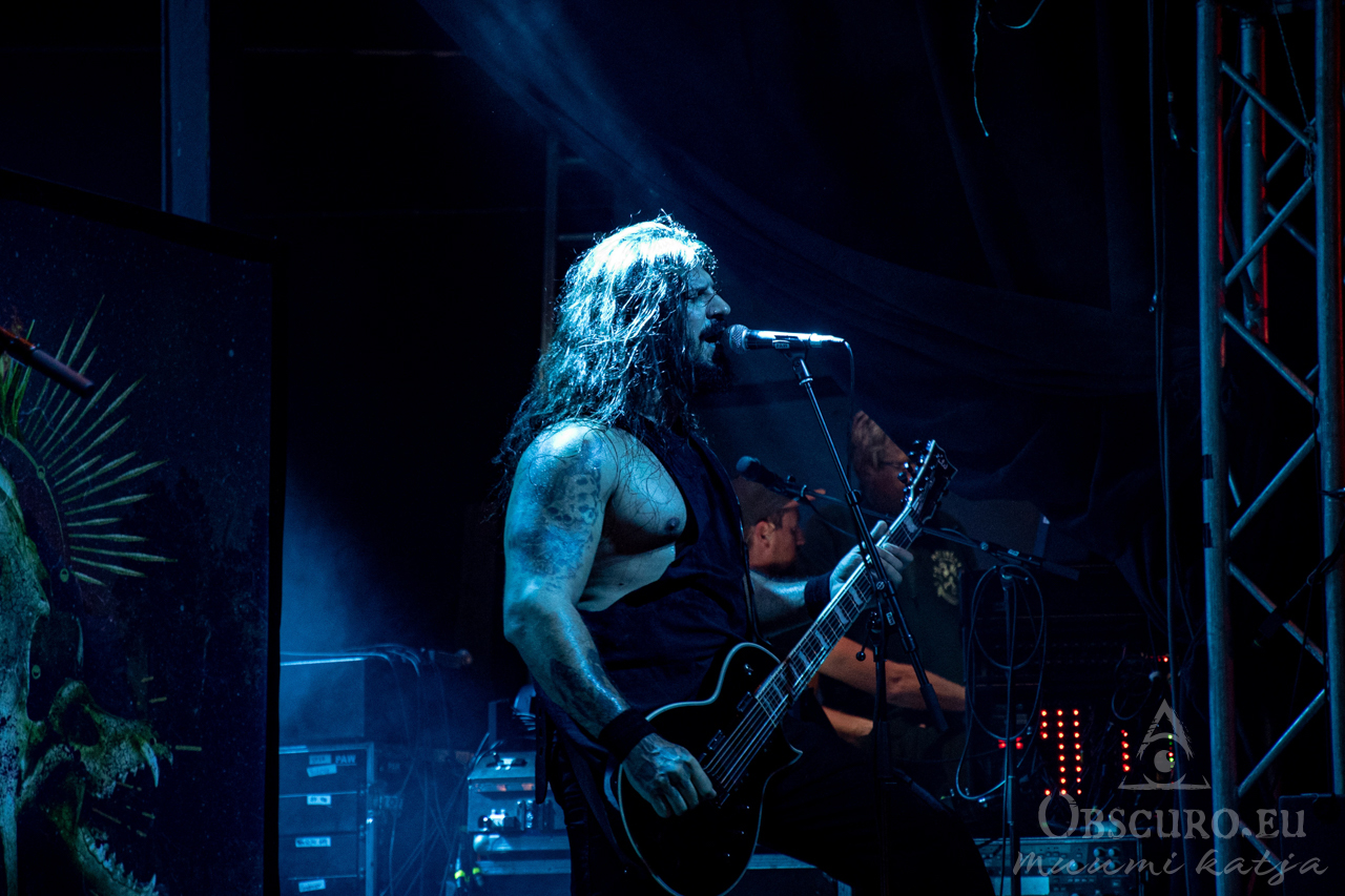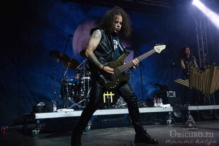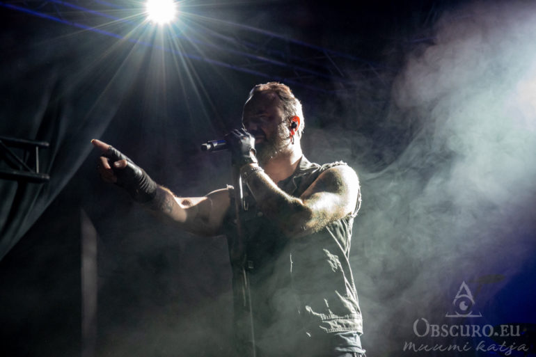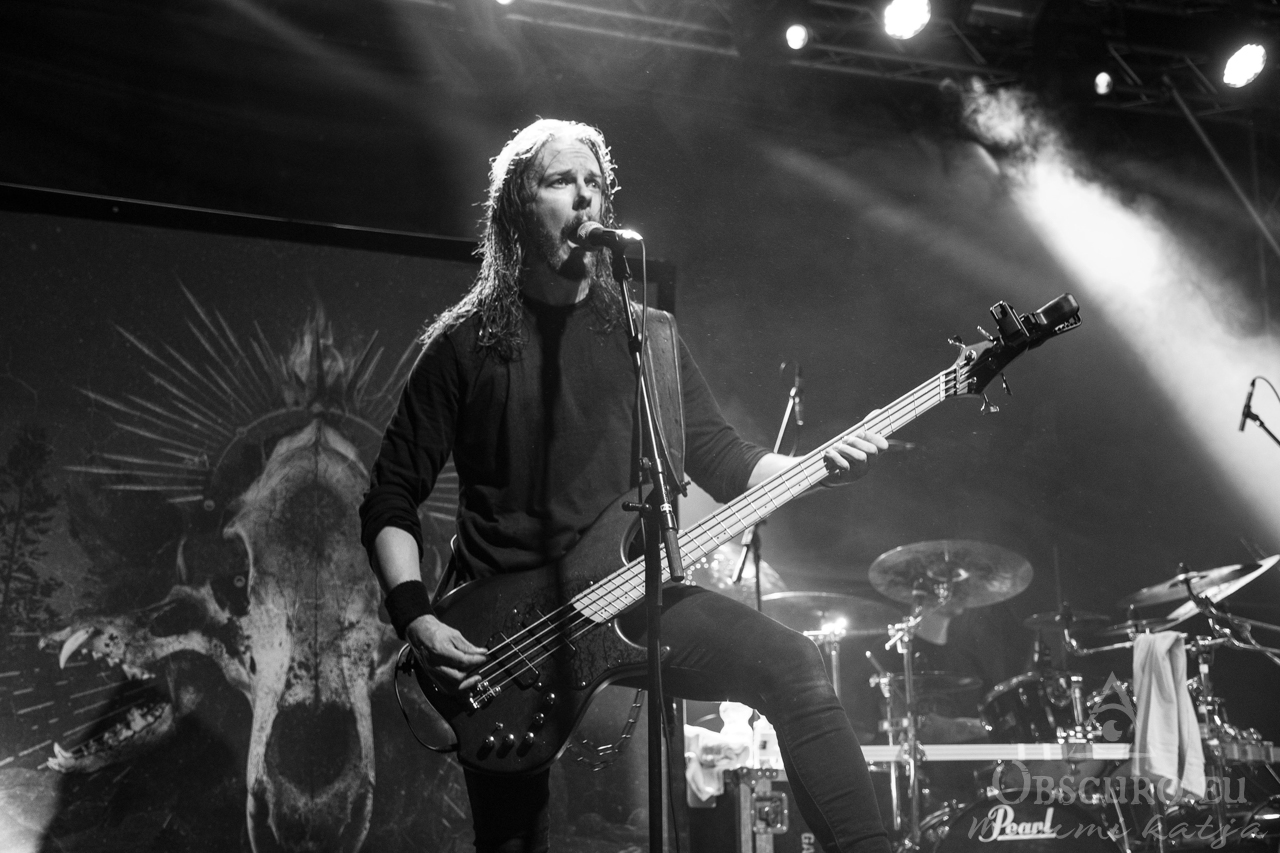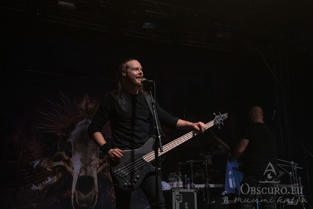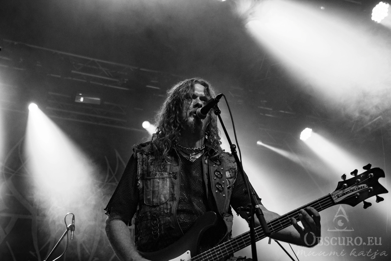 During the change-over breaks the musicians who have already played show up at the merch. It provides an opportunity to speak of recent releases, for example. Wolfheart’s Lauri Silvonen tells me a bit about how the only recently released new album “King Of The North” came to be. First time ever they met in a traditional Finnish cabin to really jam the new songs and by that develop the songs. Previously and due to difficult logistics, the ‘Wolves of Karelia’ needed to record each his part independently of the others.