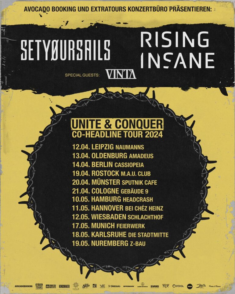 But now let’s come to the concert, the double headliner Unite & Conquer tour by SETYØURSAILS and Rising Insane, supported by Vinta, which even surprises us with a fourth band as first opener, Friends Don’t Lie from Frankfurt.The trio consists of Markus Ziesch on vocals and guitar, drummer Jens-Ole Emser and bassist Stefan Suchoroschenko. Their style can best be described as modern pop punk rock. Although their name is in English, most of their lyrics are in German. Most of them have a clear statement against the abuses of the present. During their half an hour lasting set, Friends Don’t Lie give every drop of sweat and blood. It is a very energetic show, which makes the audience in the small club boil.
