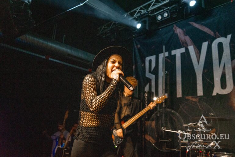During the crazy show, Jules calls for circle pits, mosh pits and a wall of death. She commands, the audience obeys and becomes a wild crowd with bassist Nicolai in between. And we can enjoy a drum-solo for a surprise because they are quite uncommon in modern metal but it gives Henrik “his” five minutes of full attention. His drumming deserves it more than enough. Unfortunately everything has to come to an end and so does SETYØURSAILS‘ set with their kind of trademark song “F*ck Off”, two minutes long on the album. Two metal-heads join the band on stage and it turns into a singalong that never ends. Oh how much I enjoy it, along with 350 other metal maniacs who make it a completely sold out show, low tickets had already been announced before!