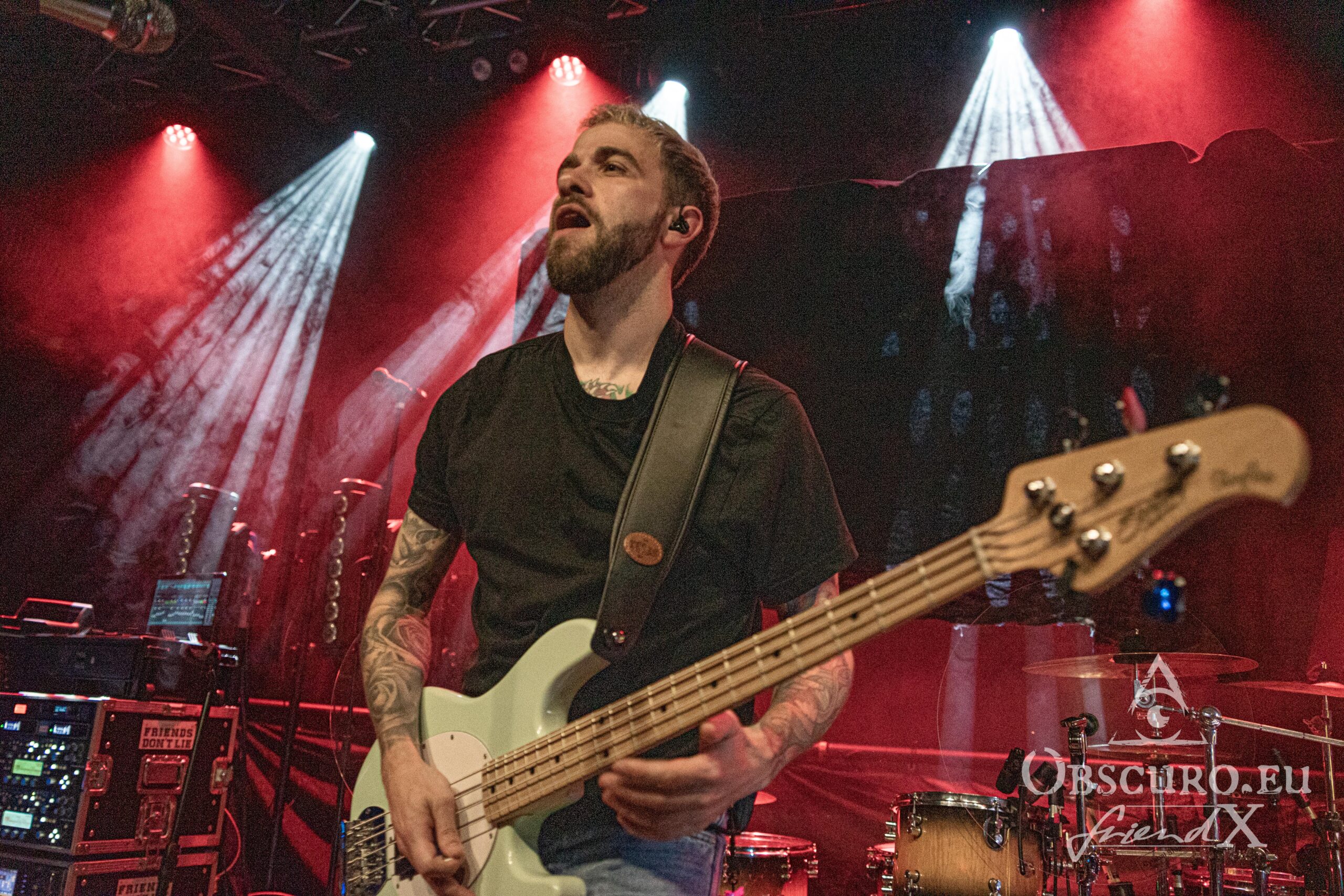 But now let’s come to the concert, the double headliner Unite & Conquer tour by SETYØURSAILS and Rising Insane, supported by Vinta, which even surprises us with a fourth band as first opener, Friends Don’t Lie from Frankfurt.The trio consists of Markus Ziesch on vocals and guitar, drummer Jens-Ole Emser and bassist Stefan Suchoroschenko. Their style can best be described as modern pop punk rock. Although their name is in English, most of their lyrics are in German. Most of them have a clear statement against the abuses of the present. During their half an hour lasting set, Friends Don’t Lie give every drop of sweat and blood. It is a very energetic show, which makes the audience in the small club boil.