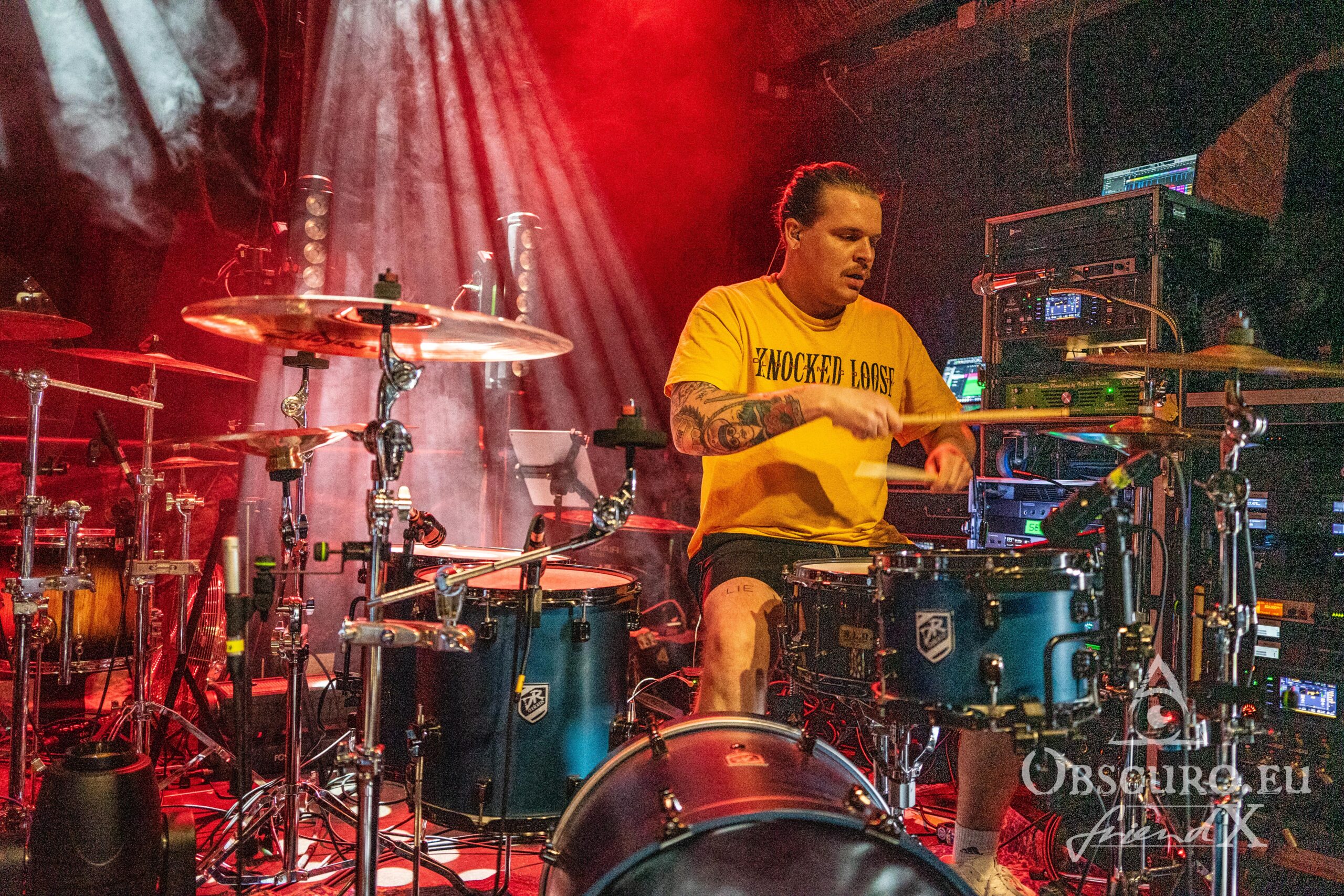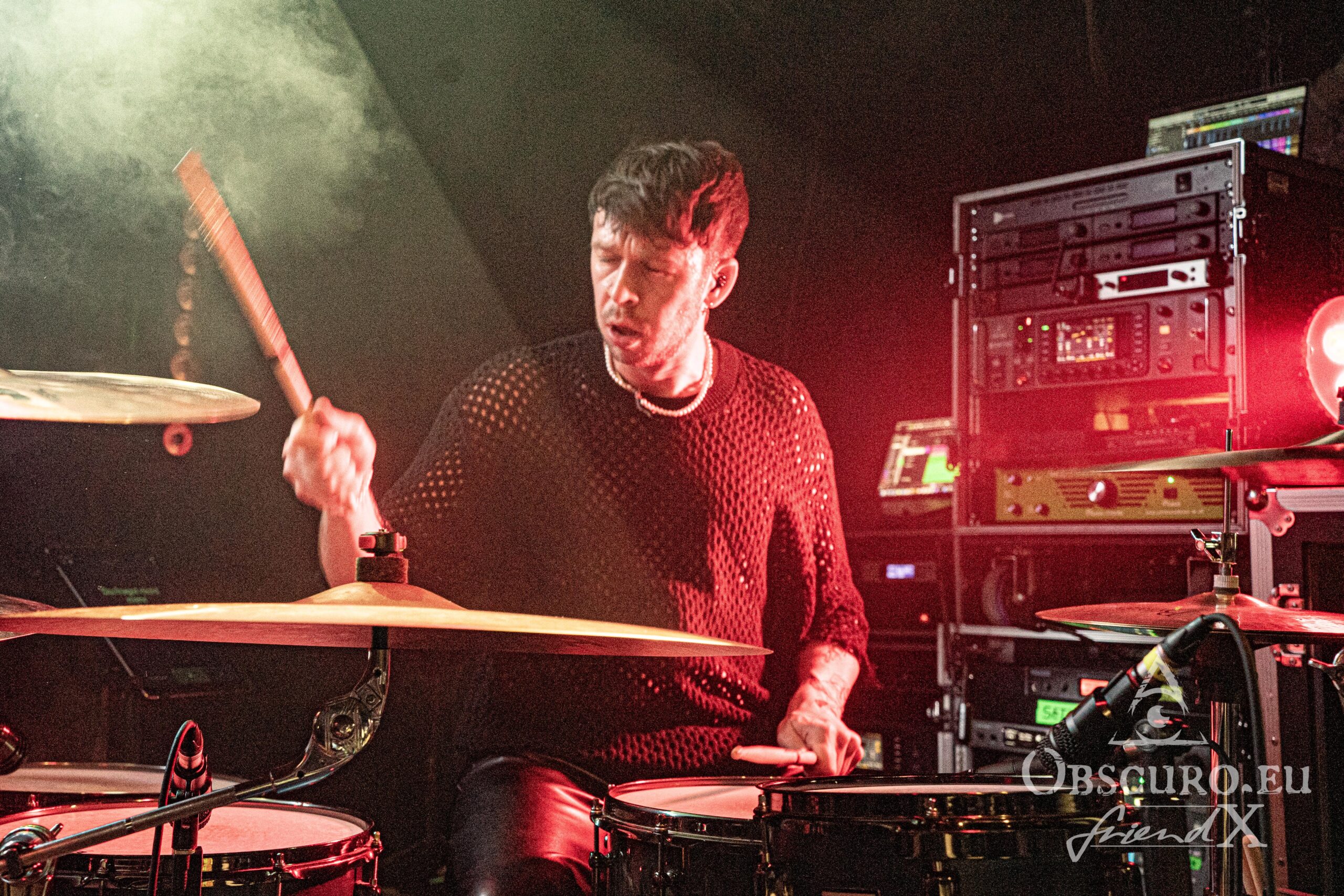 During the crazy show, Jules calls for circle pits, mosh pits and a wall of death. She commands, the audience obeys and becomes a wild crowd with bassist Nicolai in between. And we can enjoy a drum-solo for a surprise because they are quite uncommon in modern metal but it gives Henrik “his” five minutes of full attention. His drumming deserves it more than enough. Unfortunately everything has to come to an end and so does SETYØURSAILS‘ set with their kind of trademark song “F*ck Off”, two minutes long on the album. Two metal-heads join the band on stage and it turns into a singalong that never ends. Oh how much I enjoy it, along with 350 other metal maniacs who make it a completely sold out show, low tickets had already been announced before!
