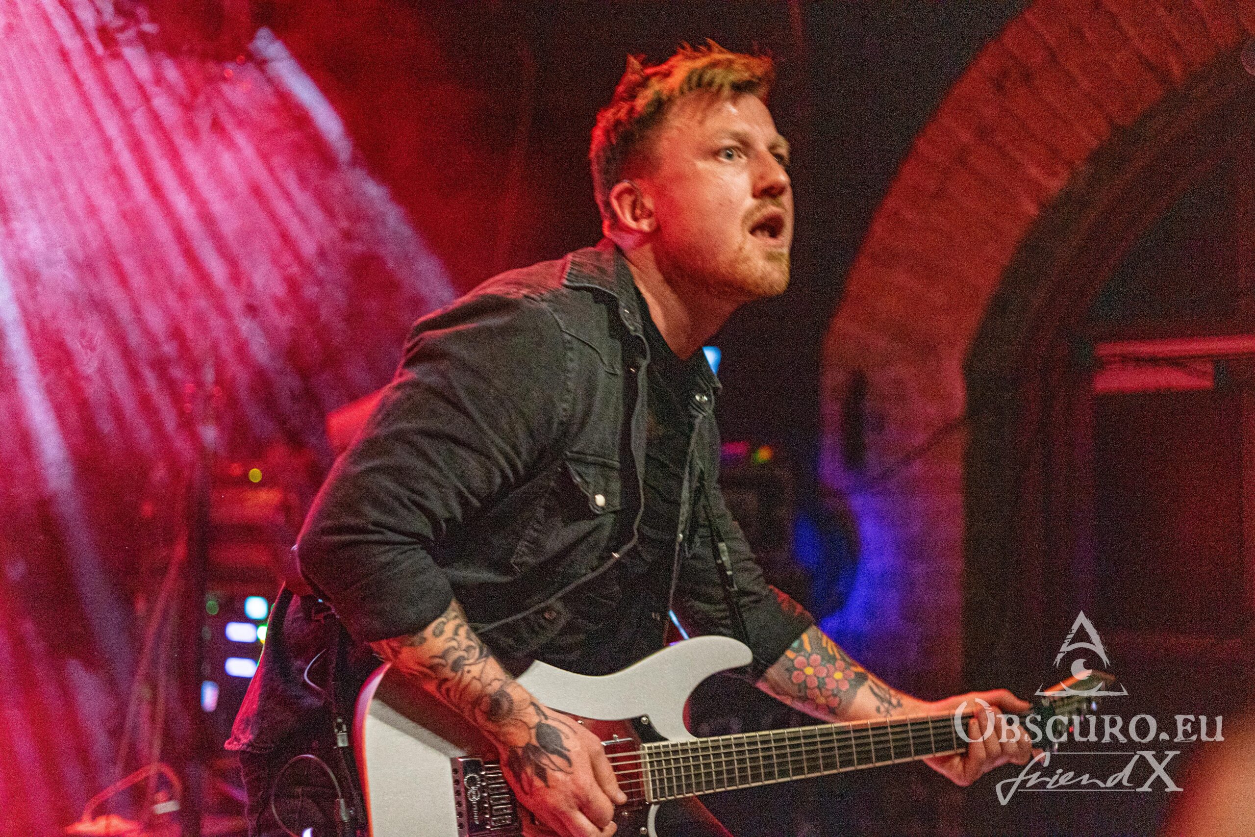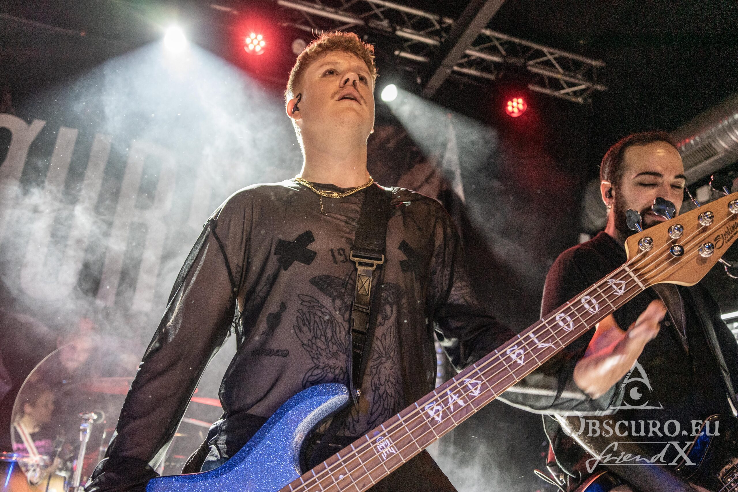 The last band of the night, after another change of stage setup, is Rising Insane from Oldenburger Land. Rising Insane consists of singer Aaron Steineker, Florian Köchy and Sven Polizuk on guitars, bassist Ulf Hedenkamp and drummer Robert Kühling. Their style can best be described as post-hardcore metalcore with English lyrics.