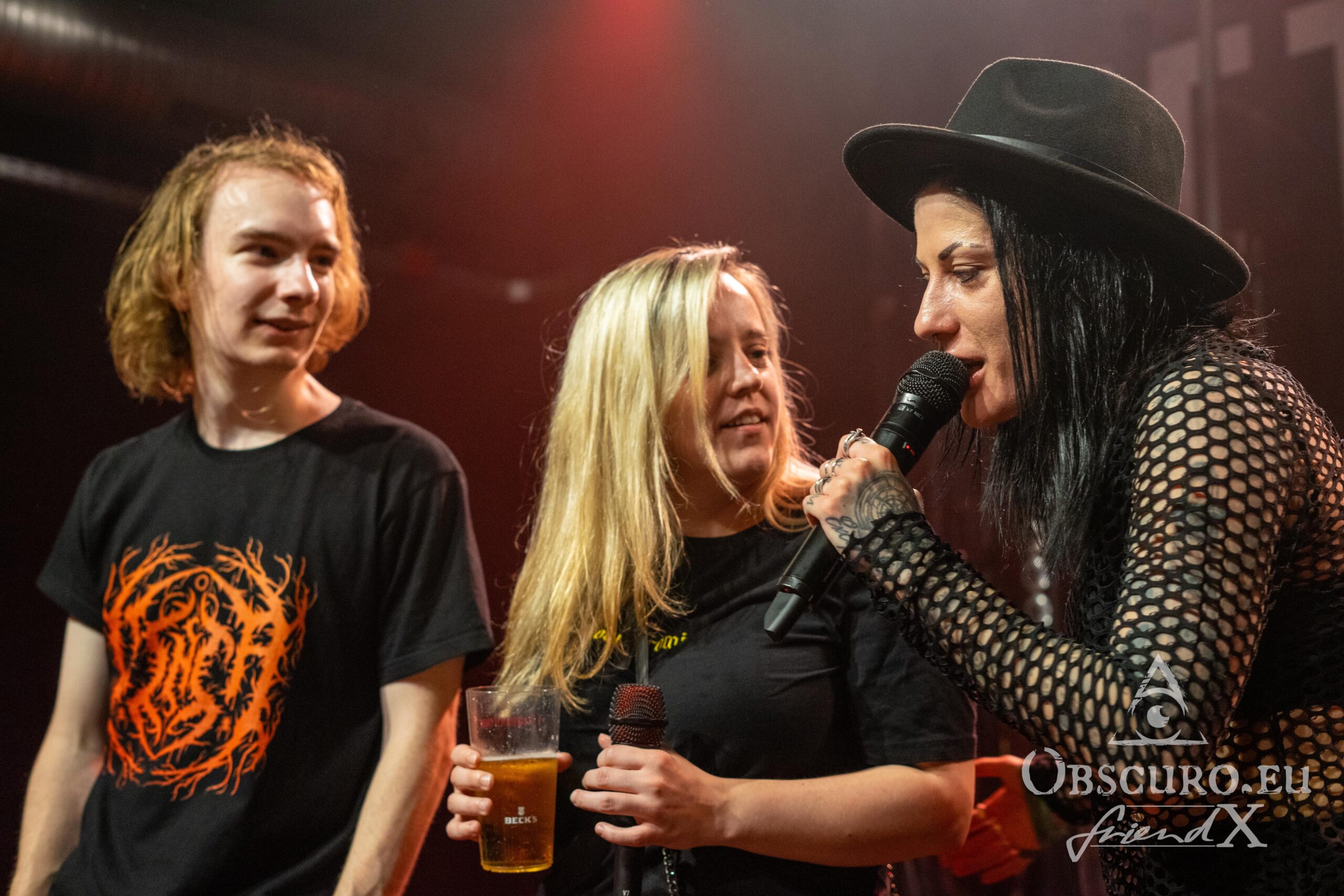 I first saw them supporting Lord Of The Lost last year and they surprised me with their fresh modern metalcore and impressive vocals. Their lyrics are in English and sometimes not for the faint hearted, as songwriter Jules doesn’t hold back her thoughts in the slightest. The music is aggressive in the most positive way, but that is exactly what the audience expects and deserves. There are some sentimental moments though, as Jules’ parents are guests on the show. Today is Mother’s Day, and like a good daughter, Jules has arranged a bouquet of flowers for her mum, which she presents to her in the middle of the show. What a lovely moment! And because on Thursday was, internationally known as Ascension Day, but in Germany better known as, Father’s Day, she hands him a bottle of beer over. Well, it is a traditional drinking day in Germany, but it is non-alcoholic beer.