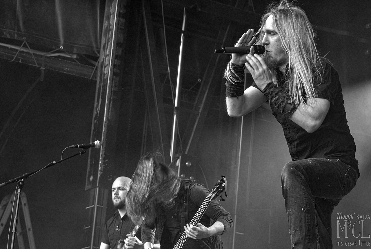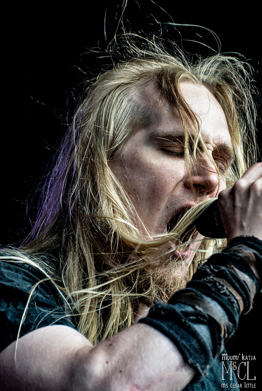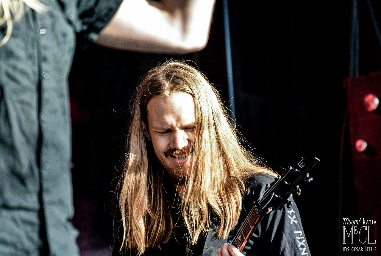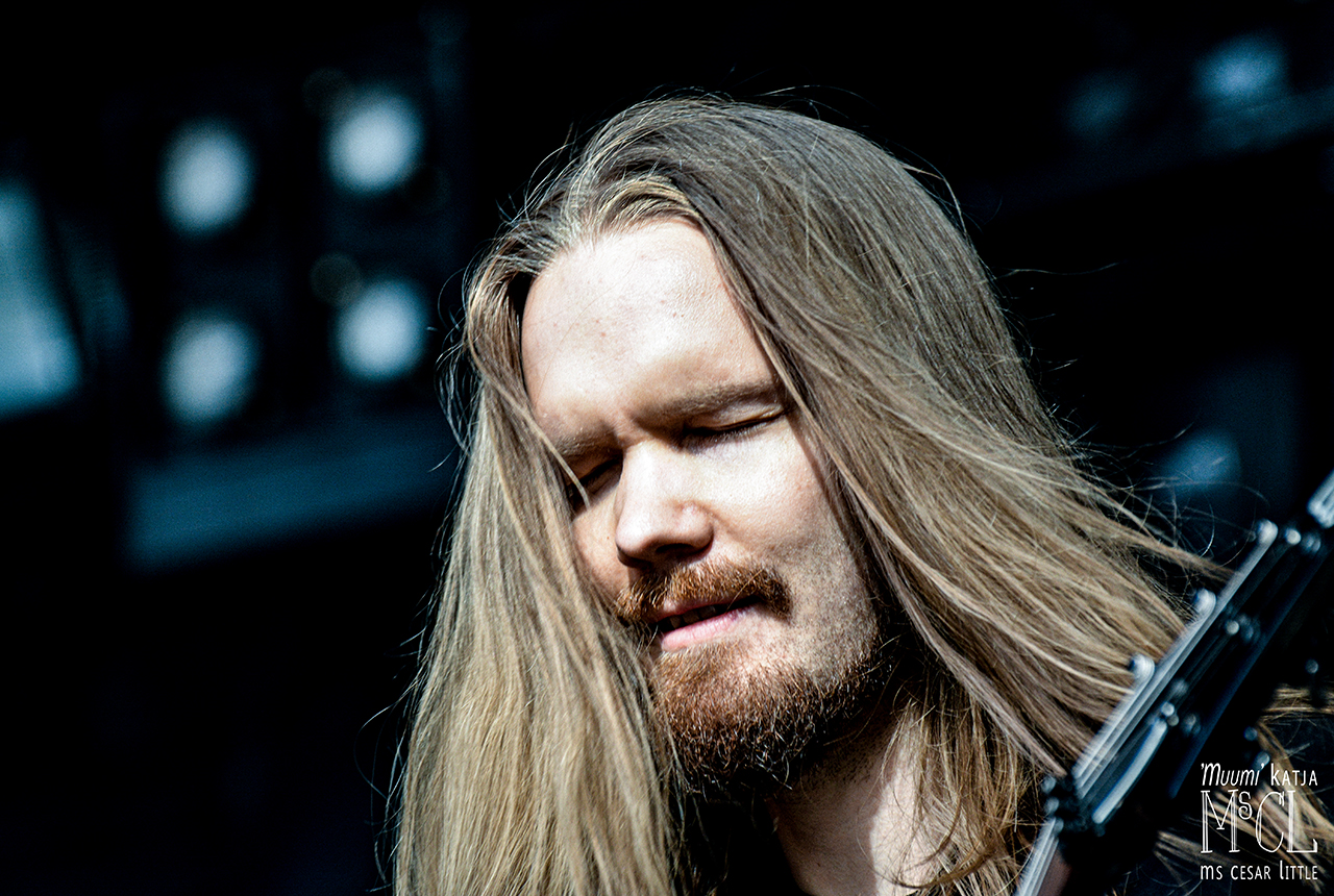 I would like to know if “They are more story-like lyrics or are there lyrics describing moods, are they more poem-like dealing with a situation or a mood you’re in?” Vesa considers a few seconds and then decides: “Maybe the latter nowadays. When we had more folk influences in the music, there were also some songs telling basically the story of old Finnish myths or something. But nowadays it is kind of more universal approach. Mostly some kind of either struggles of human mind or something. You tell me” he says looking at Saku. “Yeah”. The band nods and after a moment Saku adds: “And I think some of the newer songs are even optimistic in some way.” — “Yeah“, confirms Vesa. “I think so, too.“